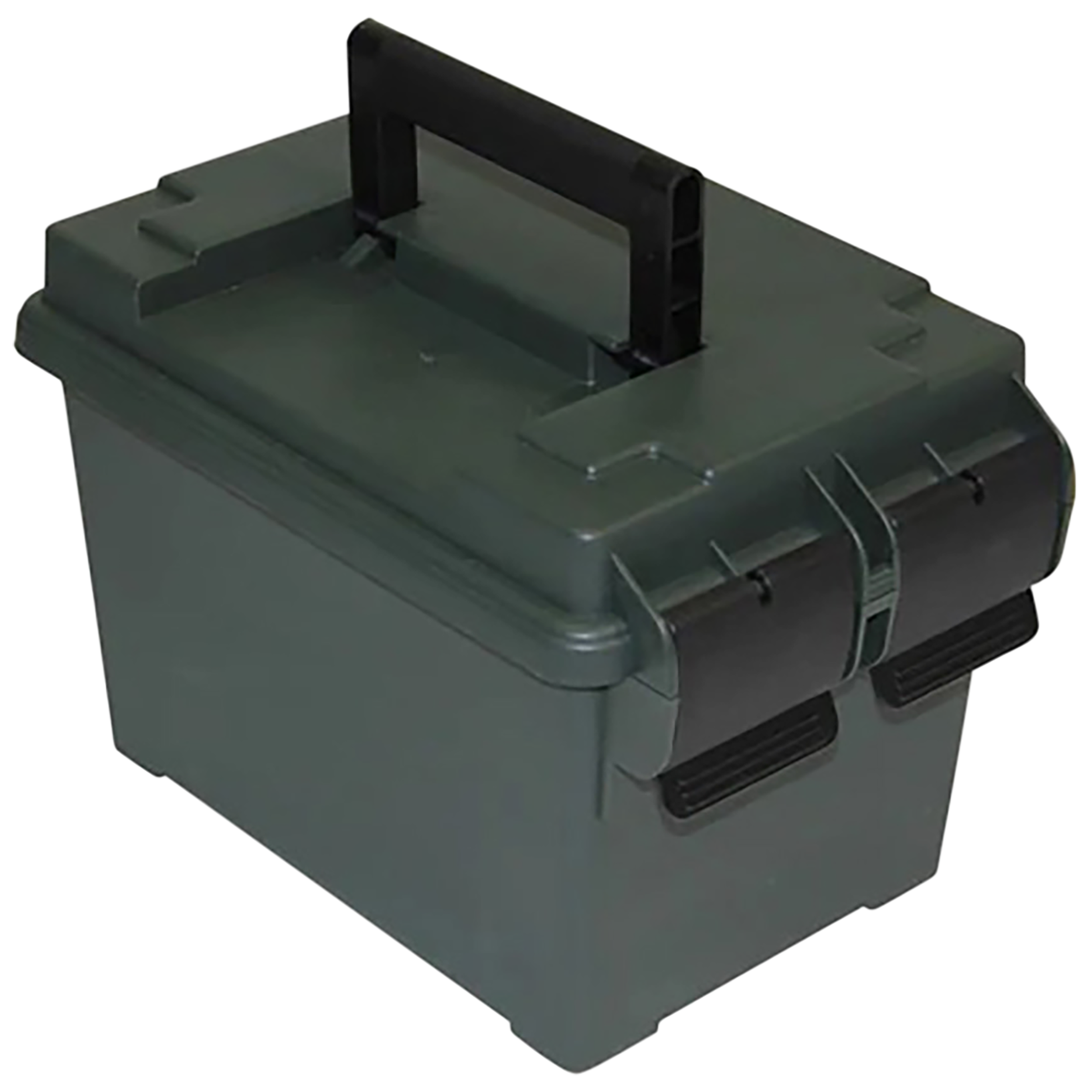 MTM's 45 Caliber Ammo Can is molded out of rugged polypropylene plastic, and this comfortably handled ammo can will hold up to some pretty harsh treatment. It is lighter in weight than a military surplus can. The 45 Caliber Ammo Can is designed to hold a 500 round case of 45 ACP or 4 boxes of 3 12 gauge shot shells and shooting glasses. Utilizing MTM's tongue and groove O-Ring seal system for a water-resistant seal. A heavy-duty dual latching system makes for a better seal and less likely to open accidentally. Padlock tabs along with molded-in stacking ridges, make these solid containers the perfect solution to so many storage needs. (No Handle)