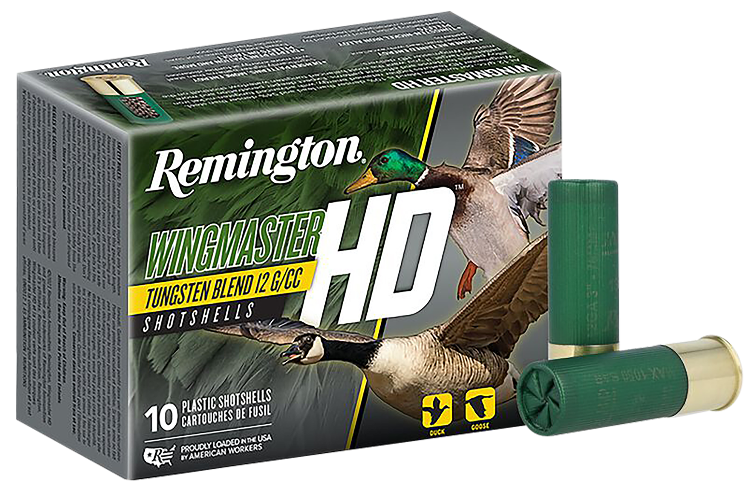 Remington's Wingmaster HD is the one-stop shop in duck and goose high-density shotshell rounds. Testing proves Wingmaster HD delivers the best combination of pellet energy and pattern density resulting in high pattern energy on target. At 12 g/cc, Remington's tungsten blend is 6% denser than lead and nearly 50% denser than steel. It also features higher retained energy, with uniform, smooth, round pellets for dense and efficient patterns. Expect deeper penetration and more pellets on target.