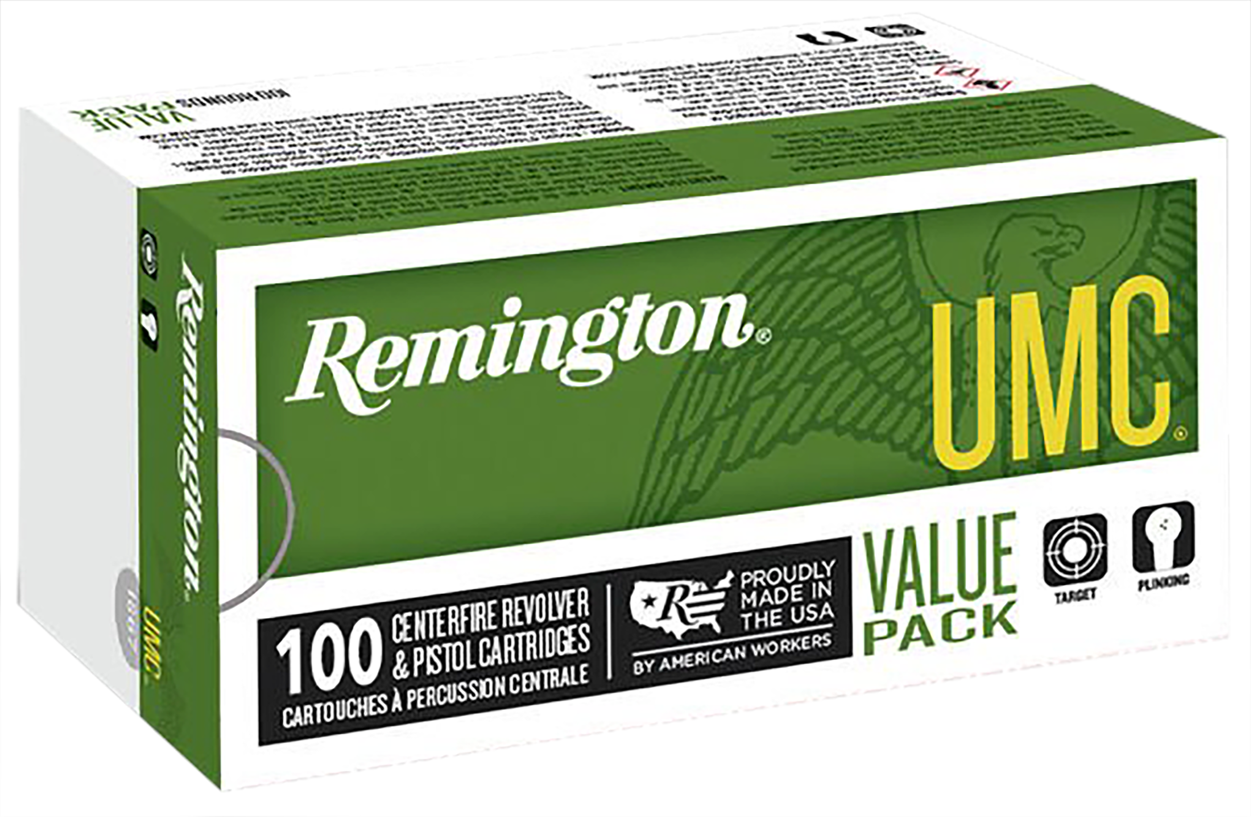 All UMC handgun ammunition is American-made, using first-quality, factory-fresh brass, and clean-shooting Kleanbore primers to provide the best value for practice, personal defense, and hunting.