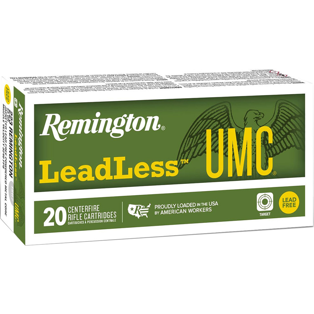 Remington's UMC Leadless ammunition offers innovative lead-free range performance. This re-engineered line features non-lead bullets and new Catalyst clean priming technology, reducing lead exposure at the firing line. With copper-jacketed compressed core projectiles, these rounds minimize splashback from steel targets. They exceed the ballistics of conventional core ammunition. Environmentally conscious and reliable, Remington UMC Leadless is an excellent choice for anyone preferring a lead-free option.