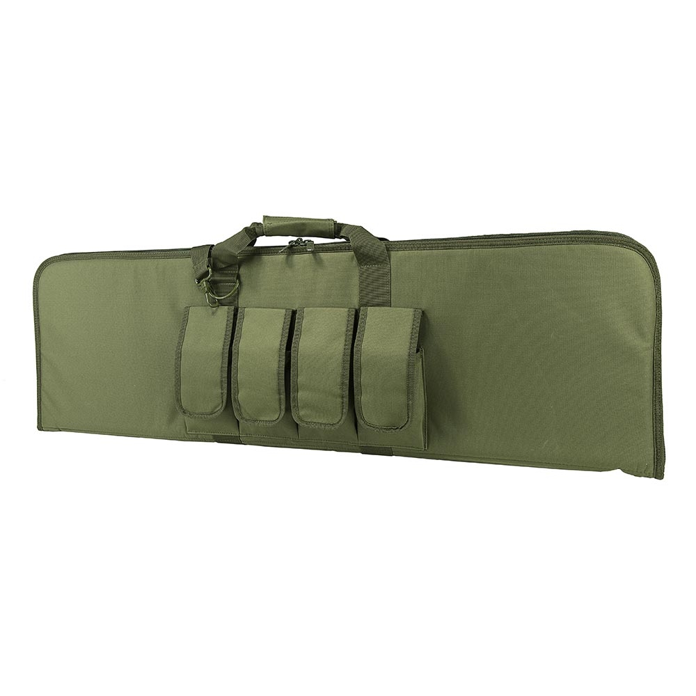 VISM rectangular 2960 series Gun Case is designed for rifles that are less than 42'' in overall length. This gun case has many popular features like heavy duty zippers that are lockable, four external magazine pouches, padded carry handle, and adjustable shoulder straps. This is a great case for protecting and transporting rifles to the range.