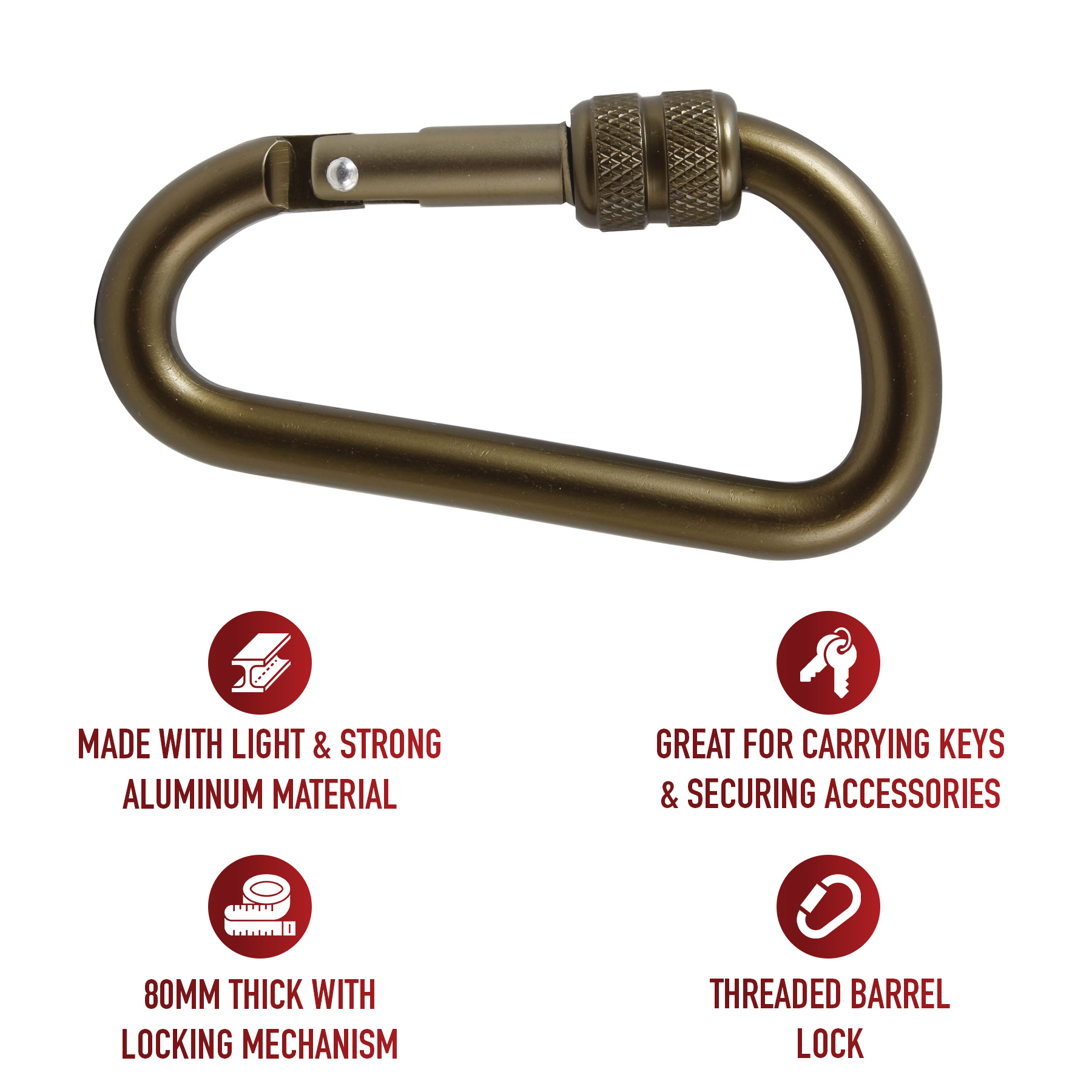 Rothco's 80MM Locking Carabiner is a versatile and reliable tool for securing your outdoor essentials. Made from high-strength aluminum, this carabiner is designed to withstand heavy loads while remaining lightweight and easy to carry. The secure threaded barrel lock ensures that your items stay safely attached, making it ideal for carrying keys, securing accessories, and adding to your camping gear. The durable aluminum construction offers long-lasting performance, resisting wear and tear even in harsh outdoor conditions. Whether you're hiking, camping, or just organizing your gear, this carabiner provides a dependable solution for all your needs. Its compact size makes it easy to attach to belts, bags, or other equipment, ensuring that your items are always within reach. Rothco's 80MM Locking Carabiner is the perfect addition to any outdoor enthusiast's kit, combining strength, convenience, and security in one handy tool. Enhance your outdoor experience with a carabiner you can trust to keep your gear secure and accessible.