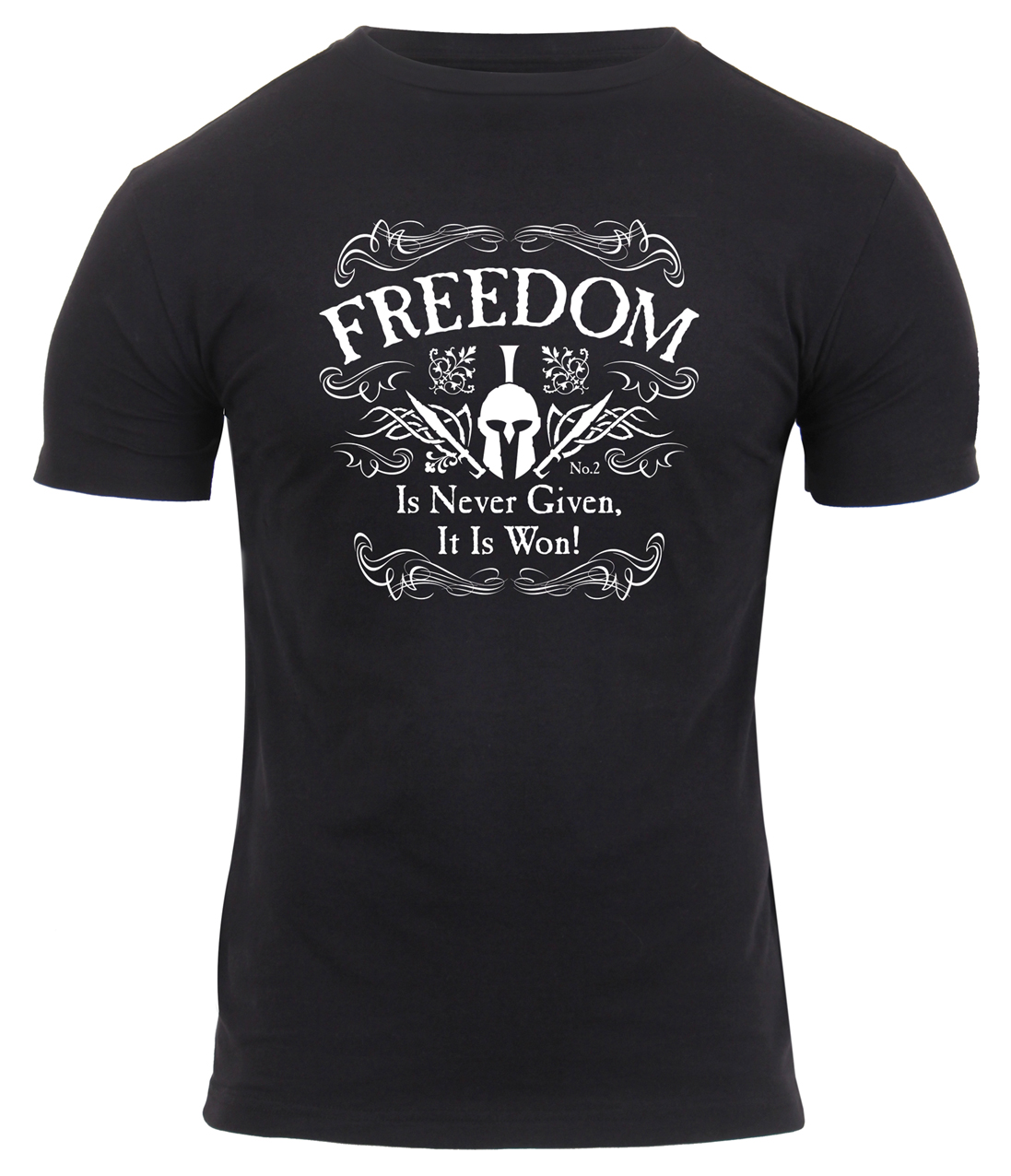 Rothco’s Athletic Fit Freedom T-Shirt combines comfort, style, and a patriotic design for those who want a versatile shirt with an athletic fit. Made from a soft cotton / polyester ring-spun blend, this t-shirt feels great against the skin and is durable enough for everyday wear. The "Freedom" graphic is proudly printed on the center chest, serving as a bold statement. Its updated fit includes an insert collar, wider chest, and smaller sleeves, creating a more streamlined and athletic appearance. The tag-less label ensures that you stay comfortable all day long without the irritation of a traditional tag. Whether you’re heading to the gym, out for a casual day, or just relaxing, Rothco’s Athletic Fit Freedom T-Shirt is designed for maximum comfort and mobility.