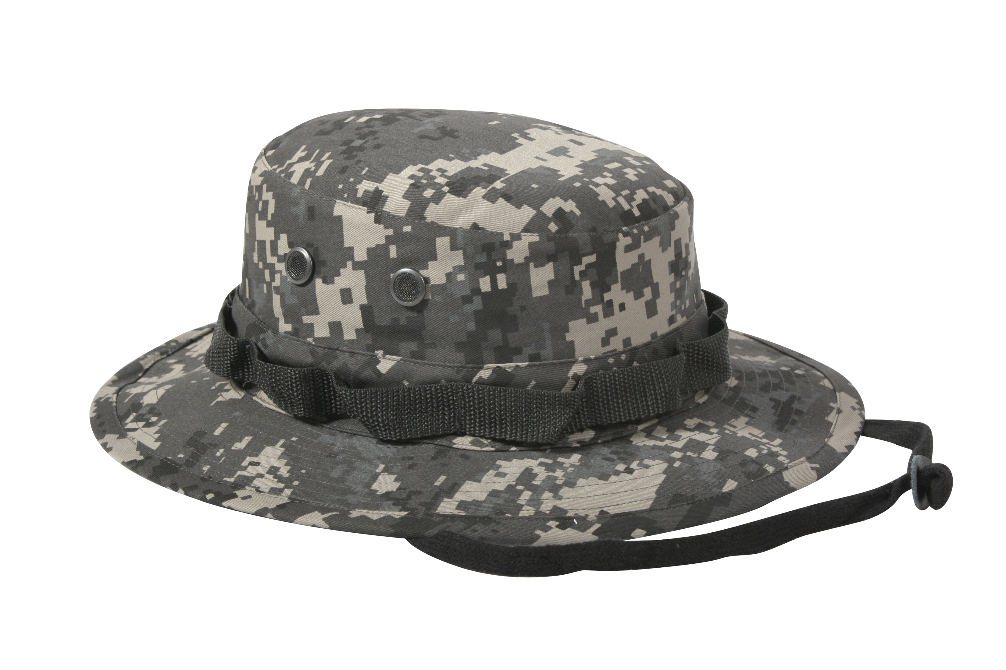 - These military hats also feature 4 screened side vents that cool you down by circulating hot or humid air away from your head. The adjustable chin strap ensures the camouflage bucket hat stays in place during a windy day or when you’re in motion.