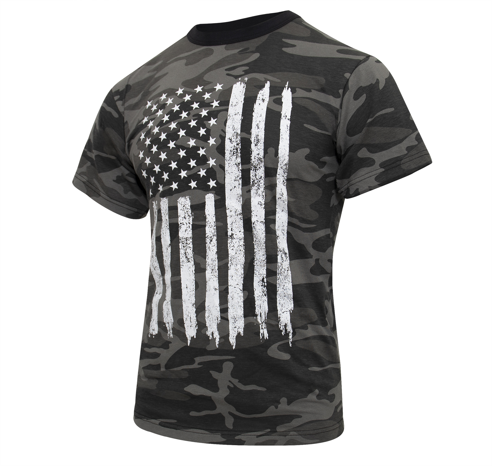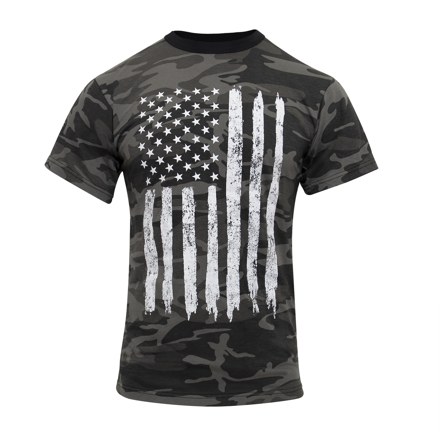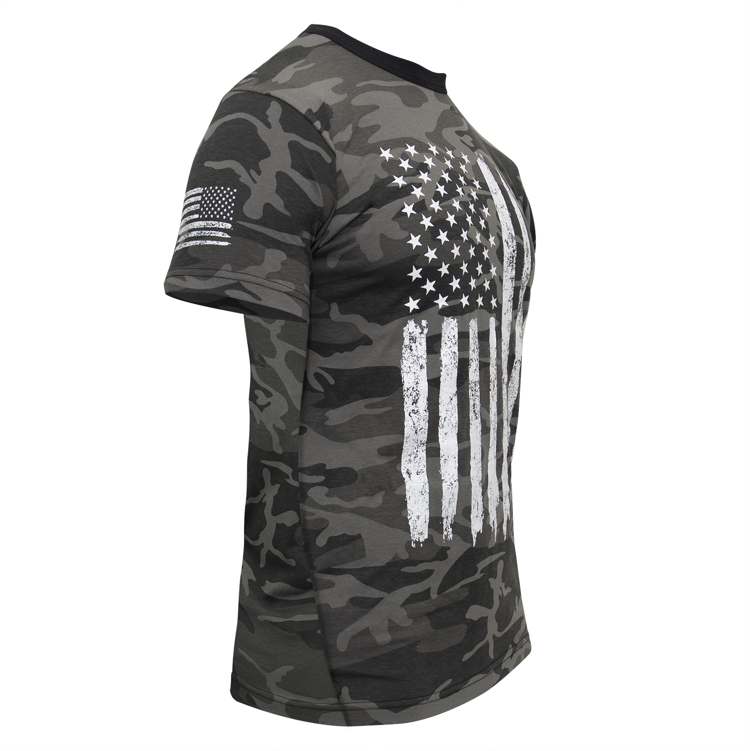 Rothco’s Camo US Flag T-Shirt is the perfect way to showcase your patriotic spirit. This graphic shirt features prominently displayed distressed USA flags on both the chest and sleeve, making a bold statement wherever you go. Constructed from a comfortable and durable 60% cotton / 40% polyester blend, this camo t-shirt is designed to last for years. The tag-less label ensures added comfort, preventing irritation during wear. Ideal for a variety of activities including exercise, outdoor sports, and casual wear, this American flag t-shirt combines style, comfort, and functionality. Whether you're hitting the gym, engaging in a team sport, or just enjoying a casual day out, Rothco's Camo US Flag T-Shirt is your go-to choice for expressing your love for the USA.