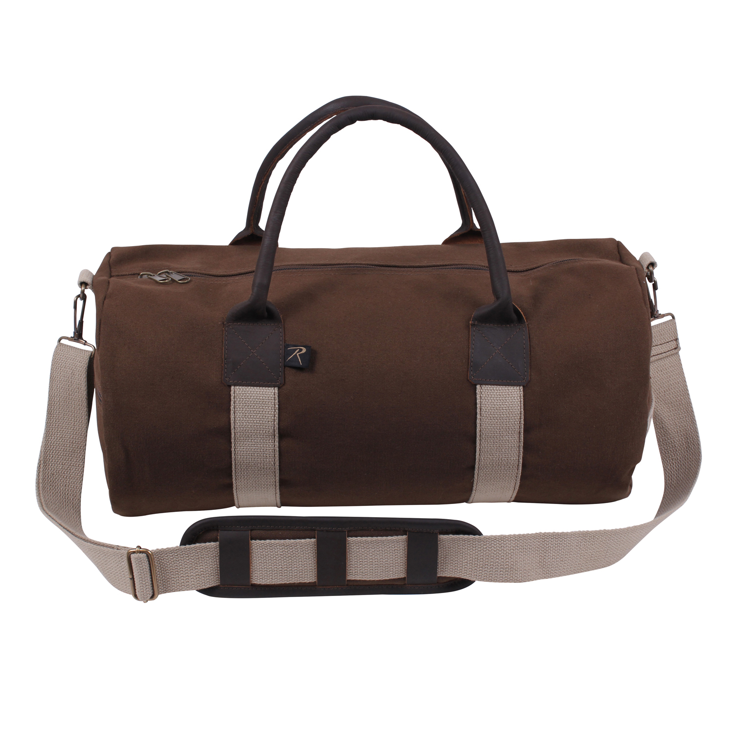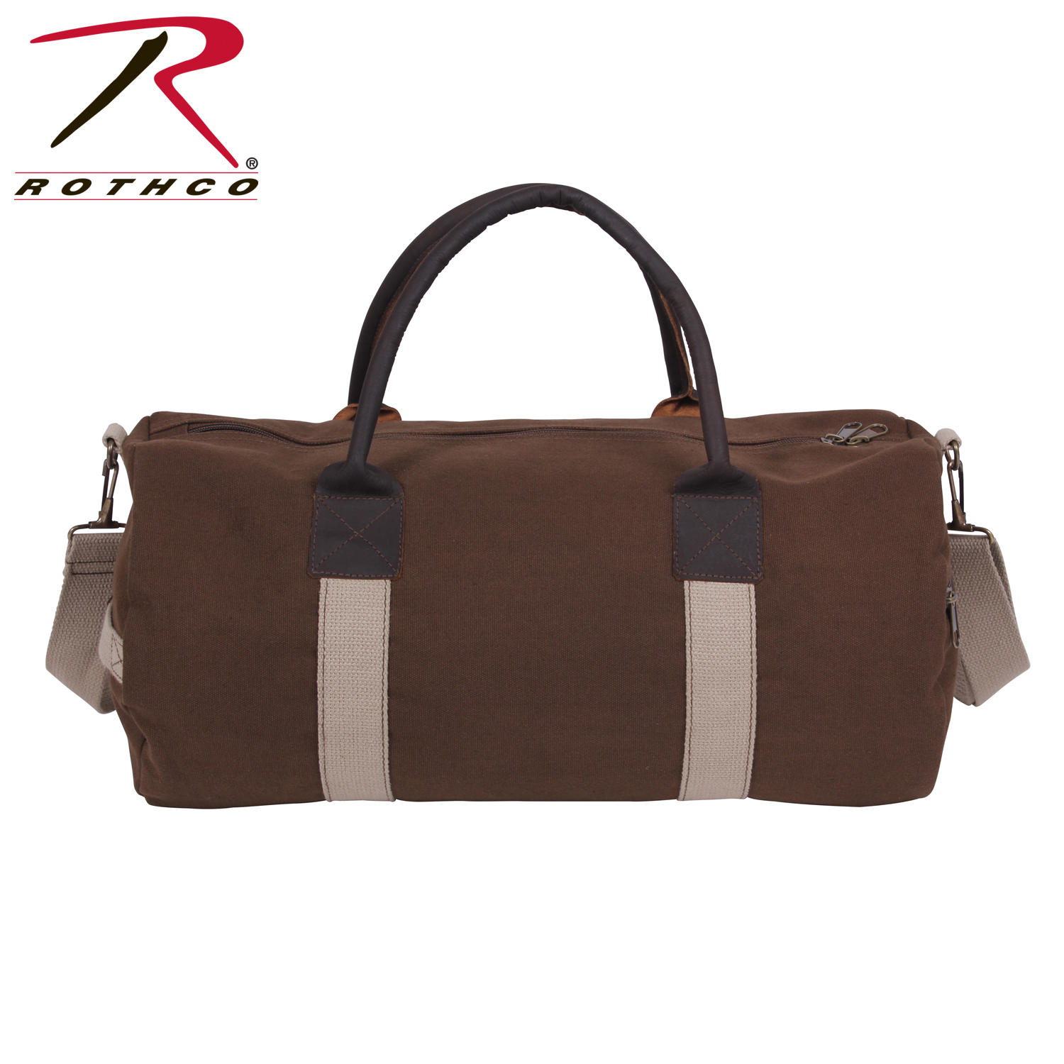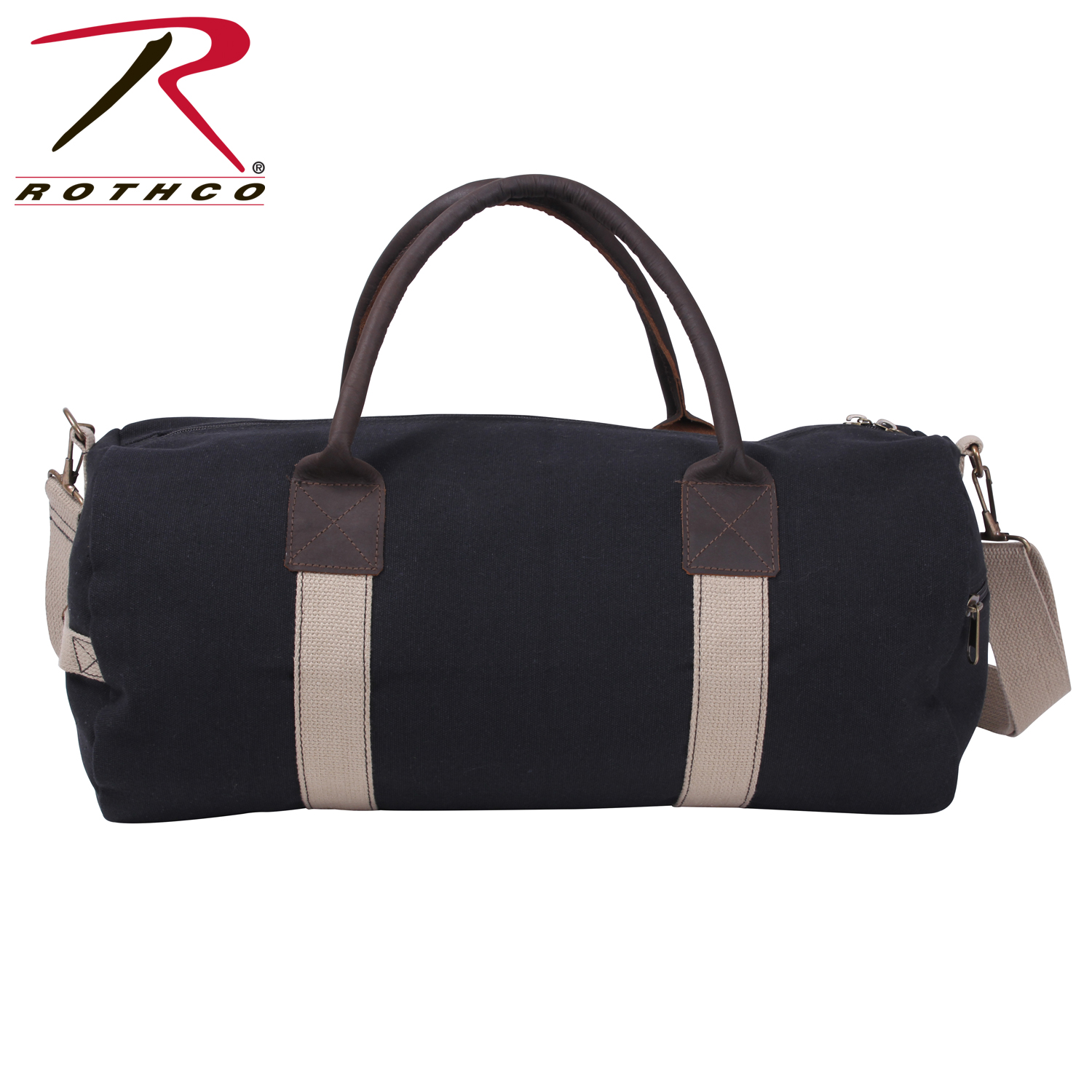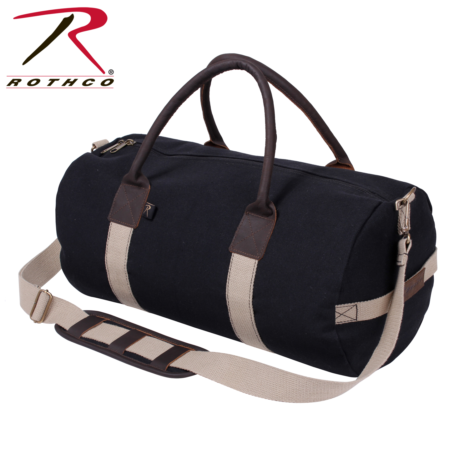 This heavy weight, two-tone canvas & leather bag is perfect for travelling or just heading to the gym. Rothco's Canvas & Leather Gym Bag features leather handles and accents, one large main compartment, an end pocket, and an adjustable & detachable shoulder strap.