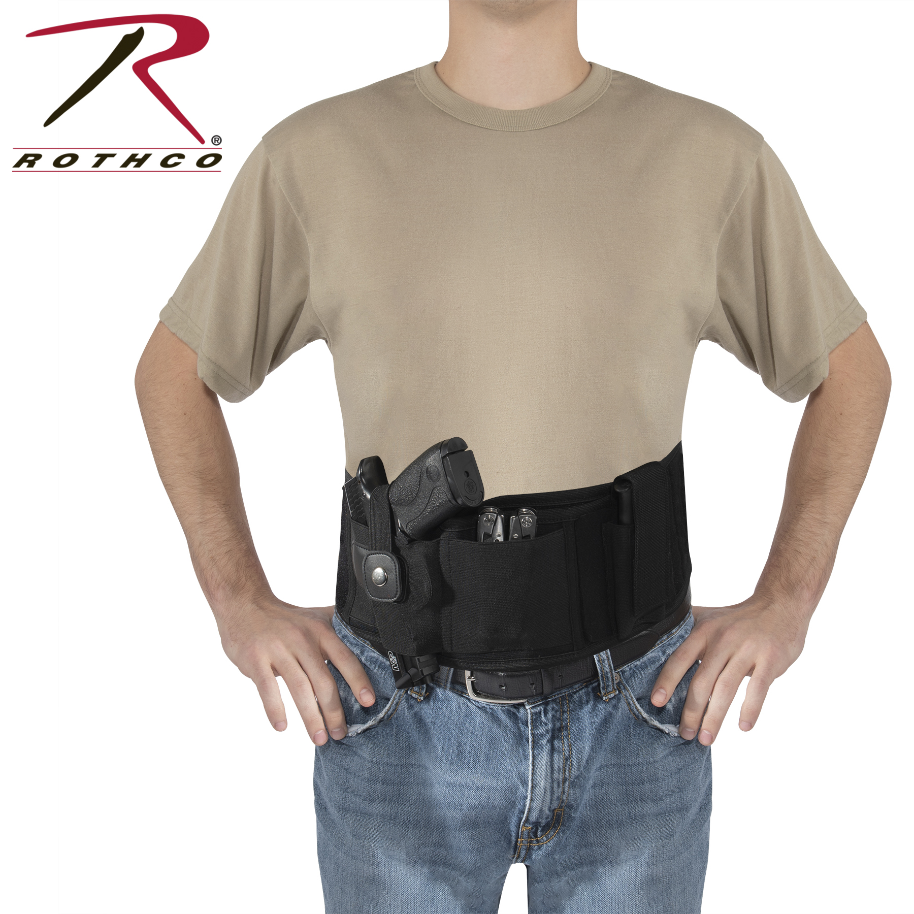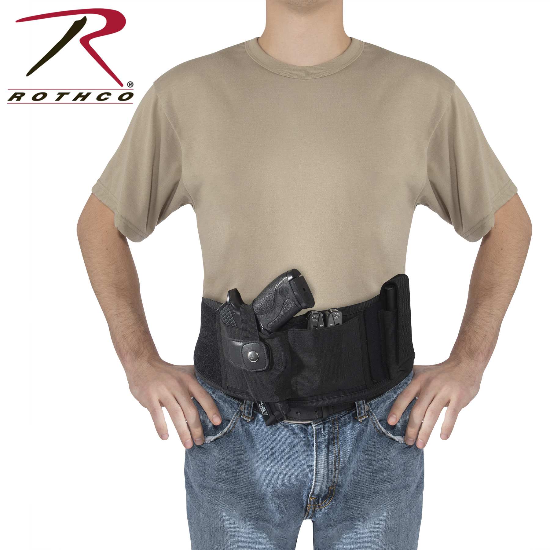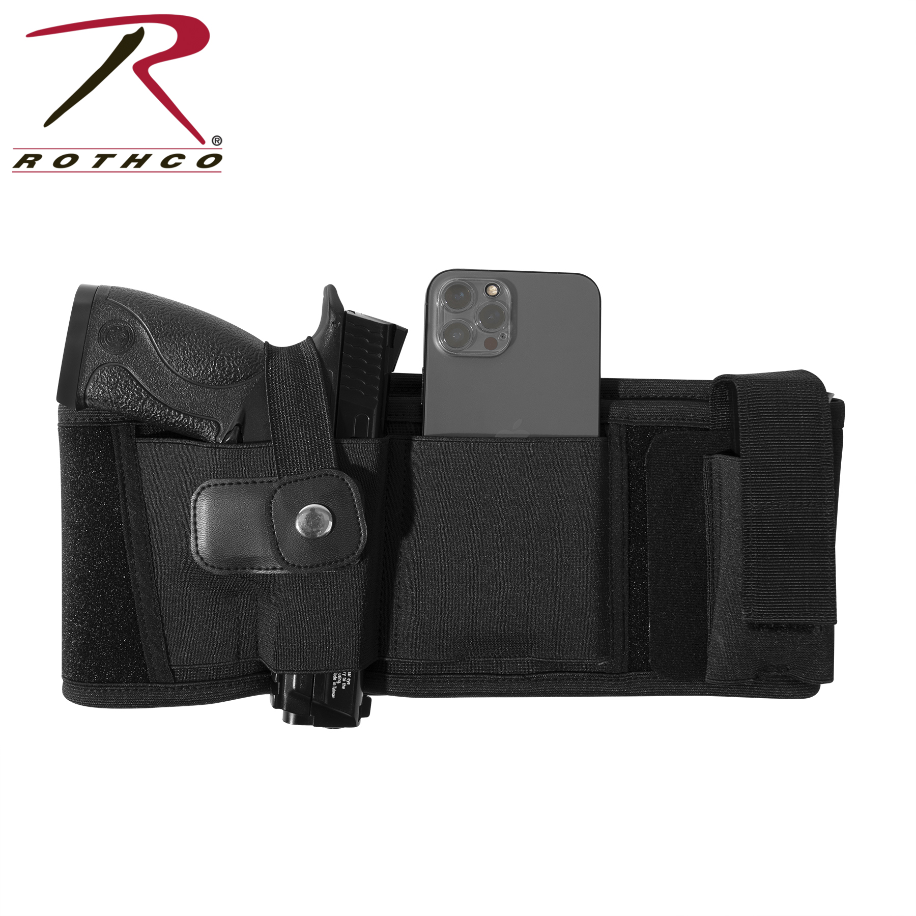 Comfortably conceal and carry with Rothco’s Concealed Carry Neoprene Belly Band Holster. This customizable ambidextrous holster features a mag pouch, an elastic storage slit, and a soft neoprene backing that you can wear all day long. The pistol holster is designed to fit most standard sized sidearms including Glock 19, Ruger LCP, Sig Sauer P365, and more. The removable ambidextrous (right and left) pistol holster and adjustable mag pouch enable full customization. An elastic on the concealed carry holster is great for holding your cell phone, multitool, or other EDC (everyday carry) essentials (Pocket measures 3.5 inches x 3.75 inches). The belly holster fastens around your body with strong hook and loop closure and is adaptable for multiple methods of carrying, including: inside the waistband (IWB), outside the waistband (OWB), cross draw, appendix (AIWB), 5 O’clock, and much more. The holster secures your CCW (concealed carry weapon) with a metal snap closure.