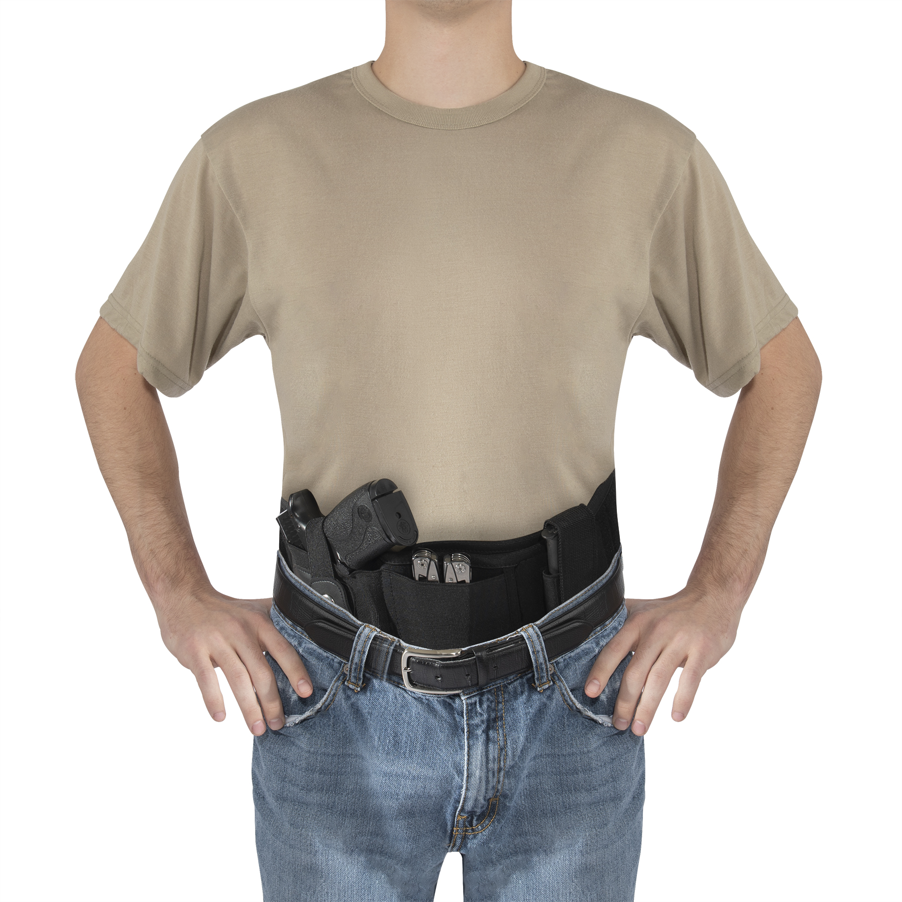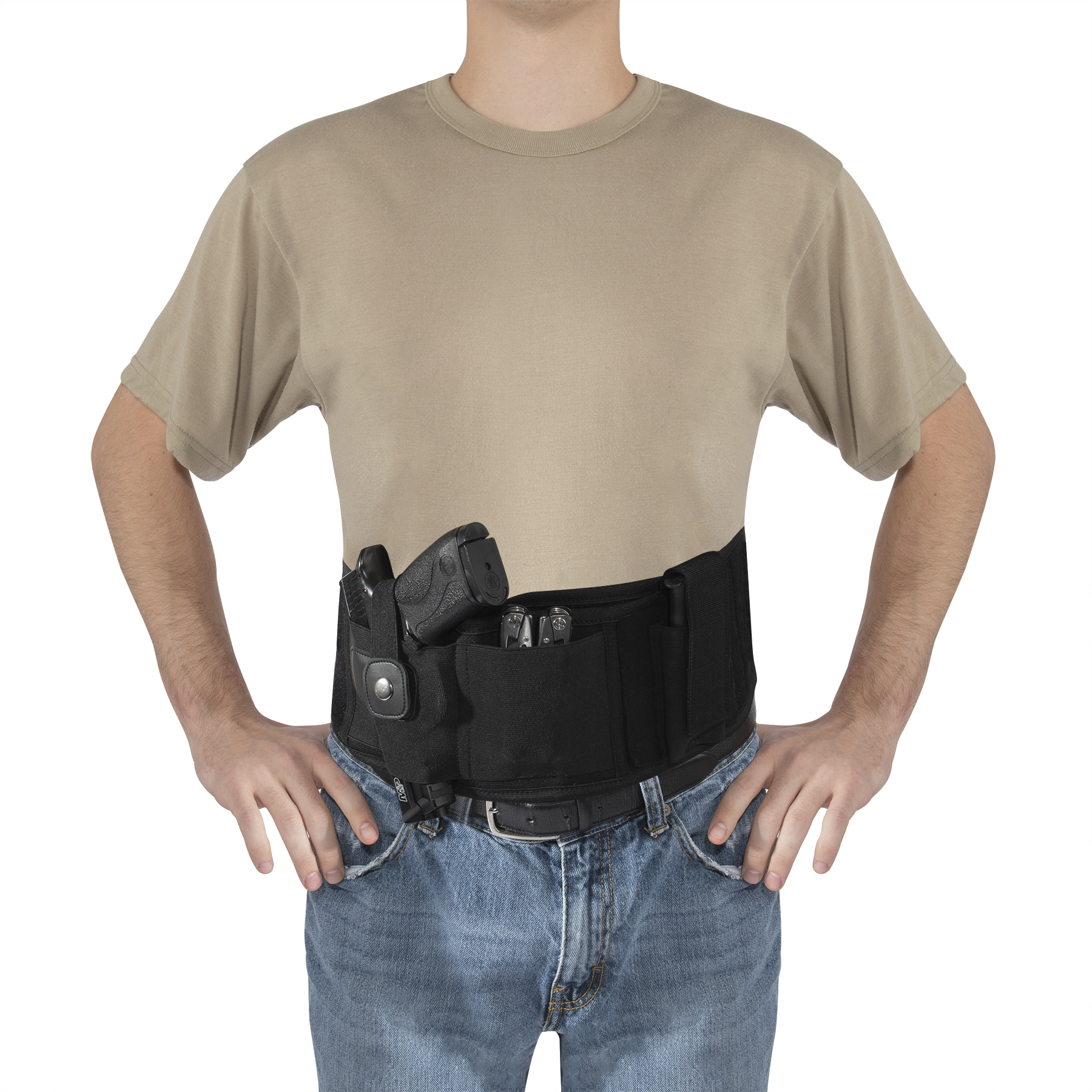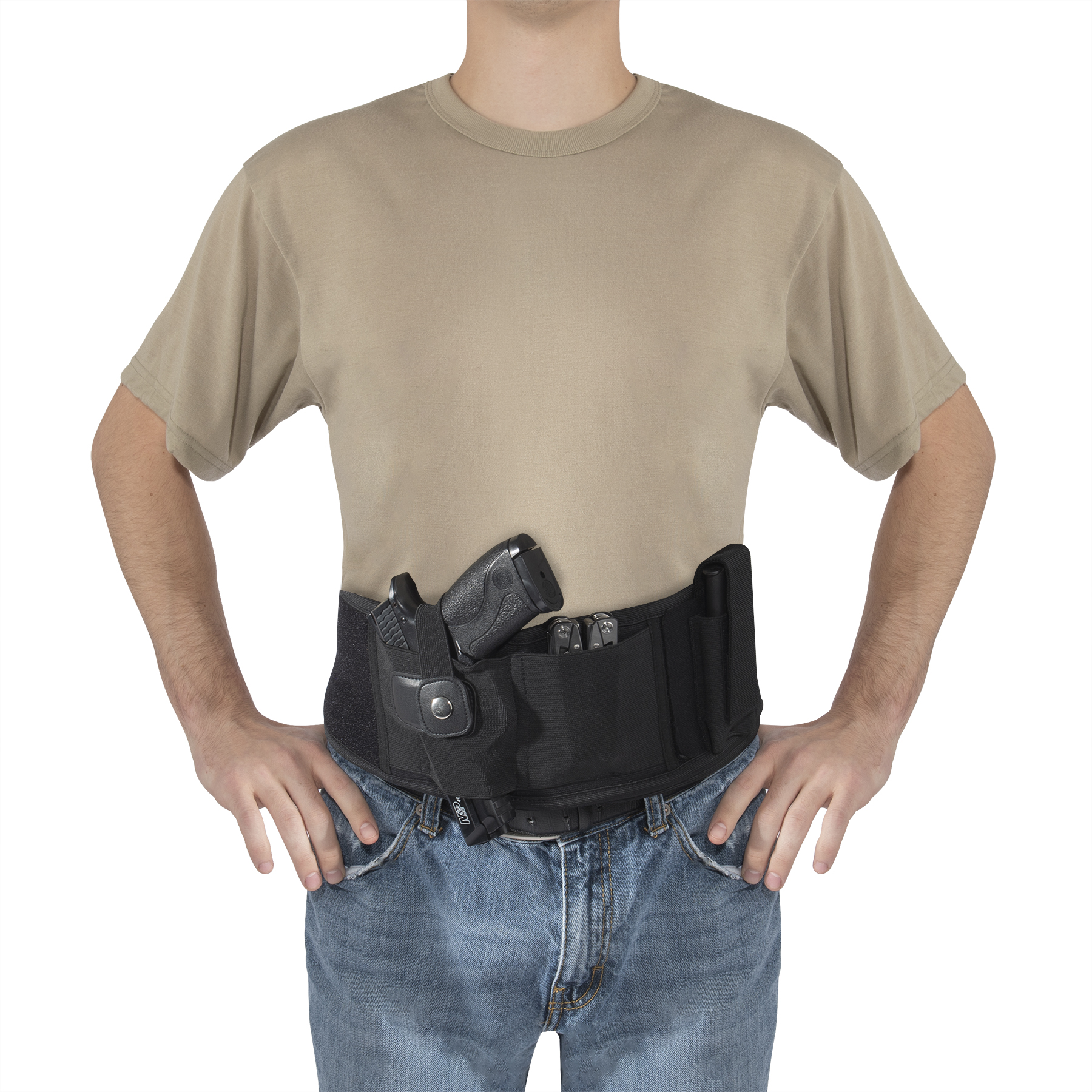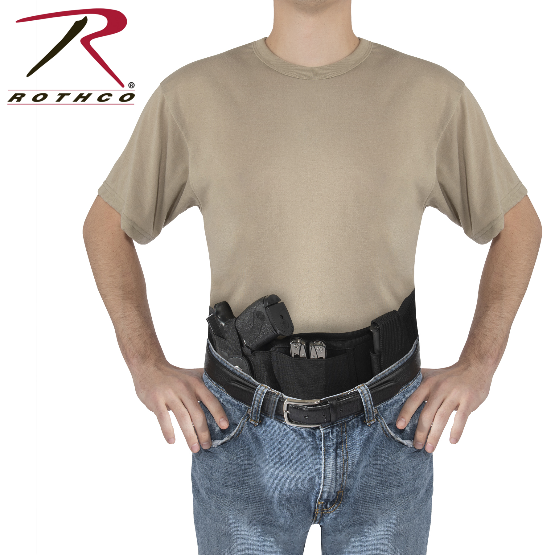 Comfortably conceal and carry with Rothco’s Concealed Carry Neoprene Belly Band Holster. This customizable ambidextrous holster features a mag pouch, an elastic storage slit, and a soft neoprene backing that you can wear all day long. The pistol holster is designed to fit most standard sized sidearms including Glock 19, Ruger LCP, Sig Sauer P365, and more. The removable ambidextrous (right and left) pistol holster and adjustable mag pouch enable full customization. An elastic on the concealed carry holster is great for holding your cell phone, multitool, or other EDC (everyday carry) essentials (Pocket measures 3.5 inches x 3.75 inches). The belly holster fastens around your body with strong hook and loop closure and is adaptable for multiple methods of carrying, including: inside the waistband (IWB), outside the waistband (OWB), cross draw, appendix (AIWB), 5 O’clock, and much more. The holster secures your CCW (concealed carry weapon) with a metal snap closure.