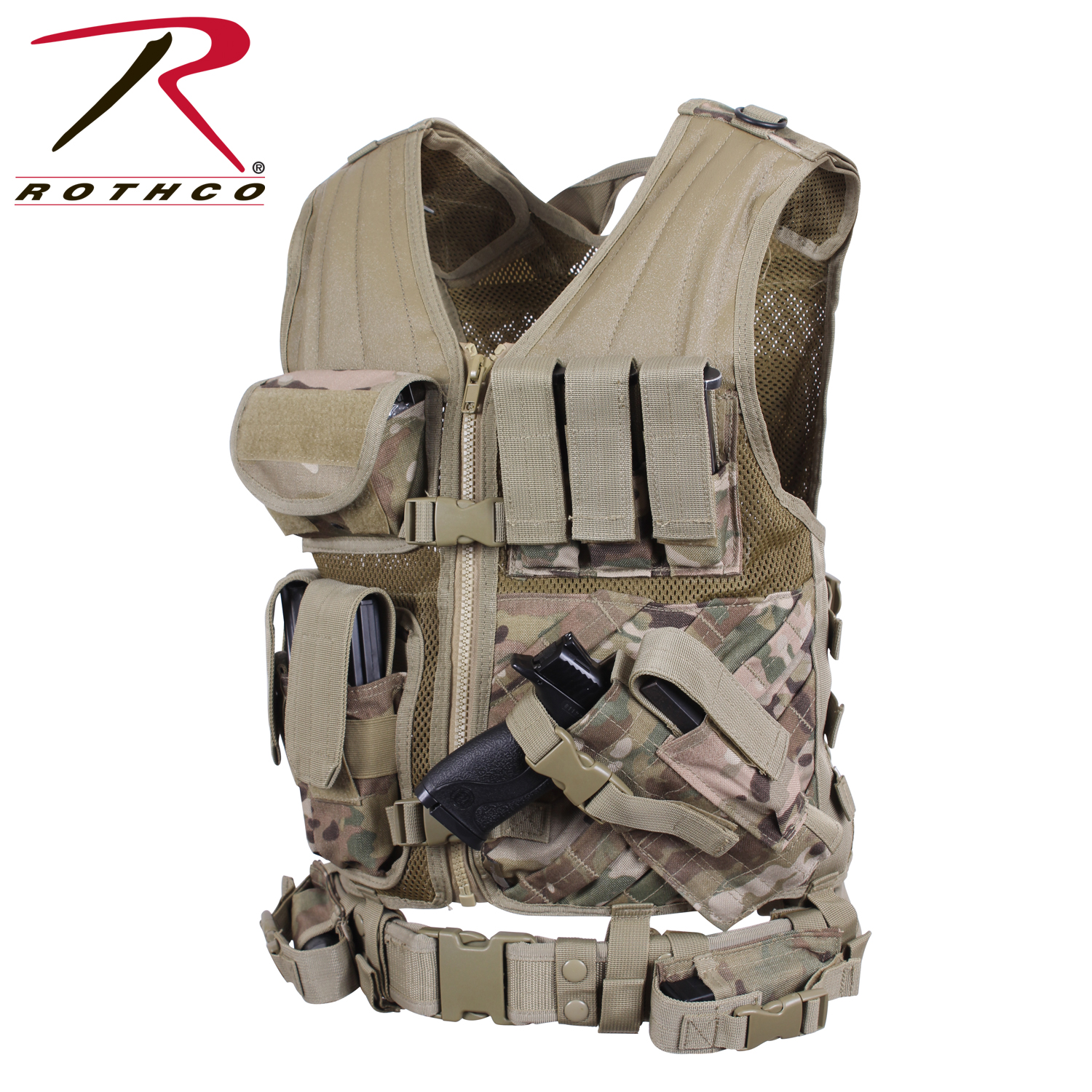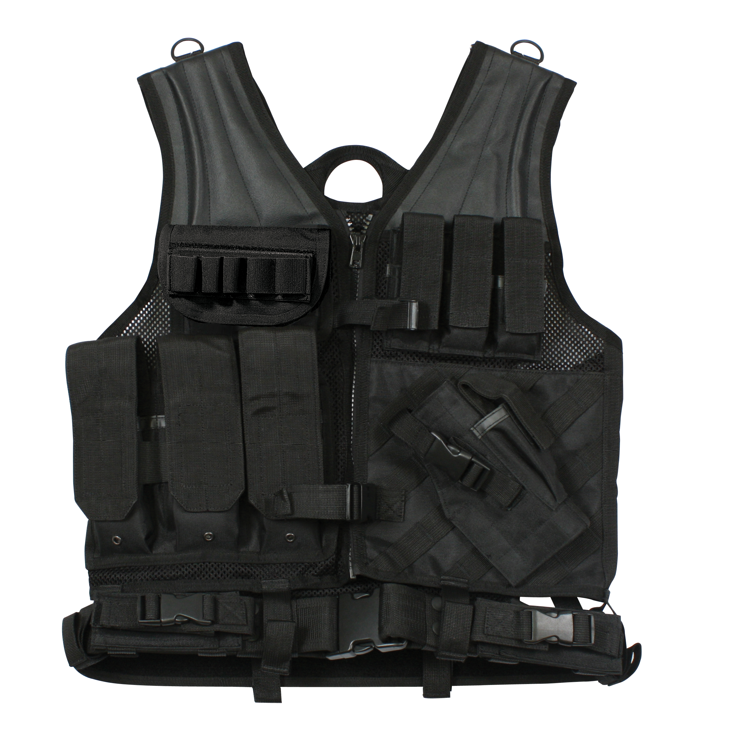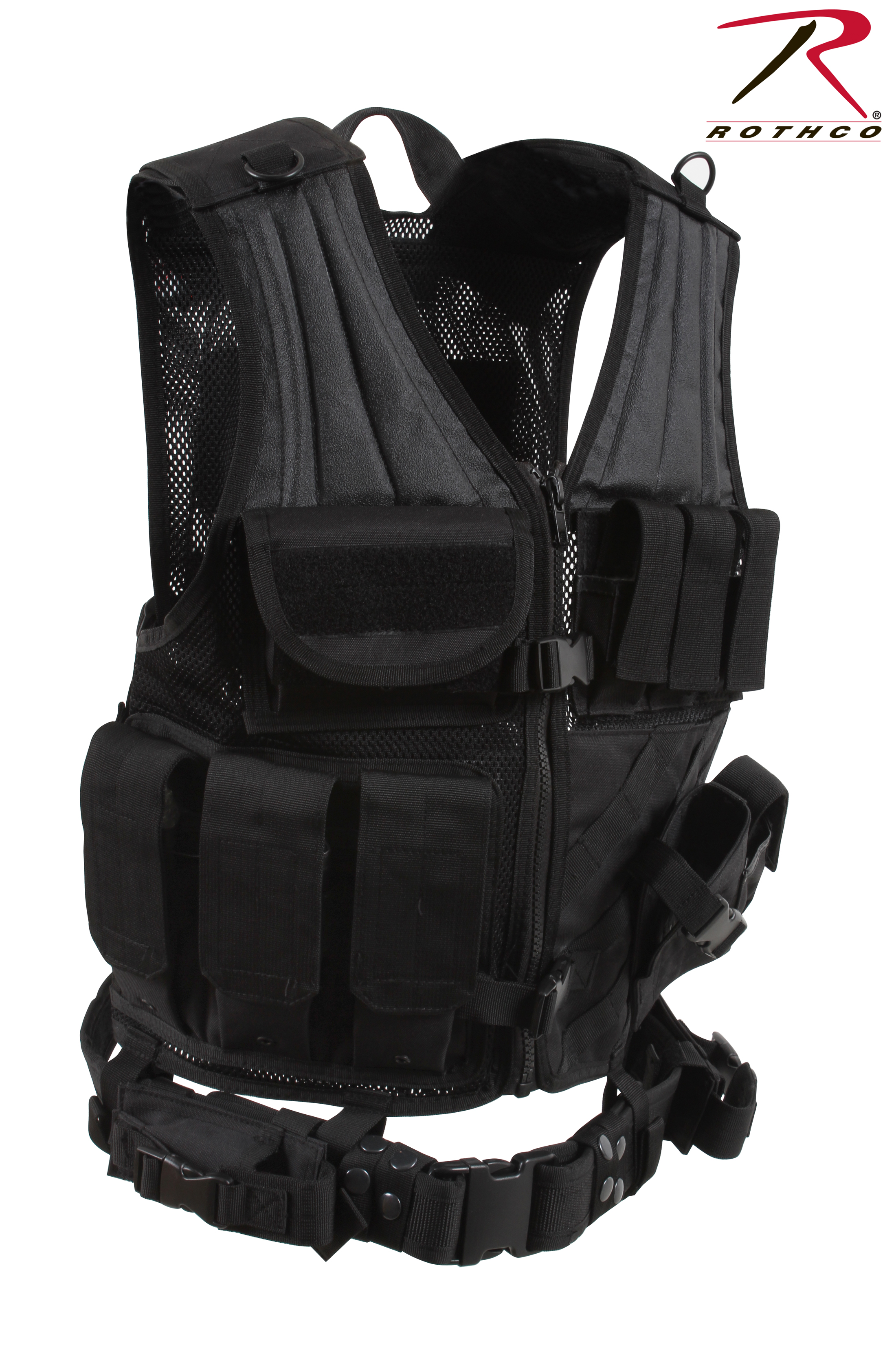 Upgrade your gear with Rothco's Tactical Cross Draw Vest. Crafted from heavyweight polyester mesh, this adjustable vest is MOLLE compatible, providing a customizable and practical solution for field activities. Featuring 3 gear pouches, 3 gear magazine pouches, and 2 document pouches, the MOLLE vest ensures you're well-equipped and organized. The adjustable shoulder straps and drawstring waist offer a perfect fit, while the zip-up front with an adjustable gear belt adds functionality. Stay prepared and efficient with Rothco's Cross Draw MOLLE Tactical Vest.