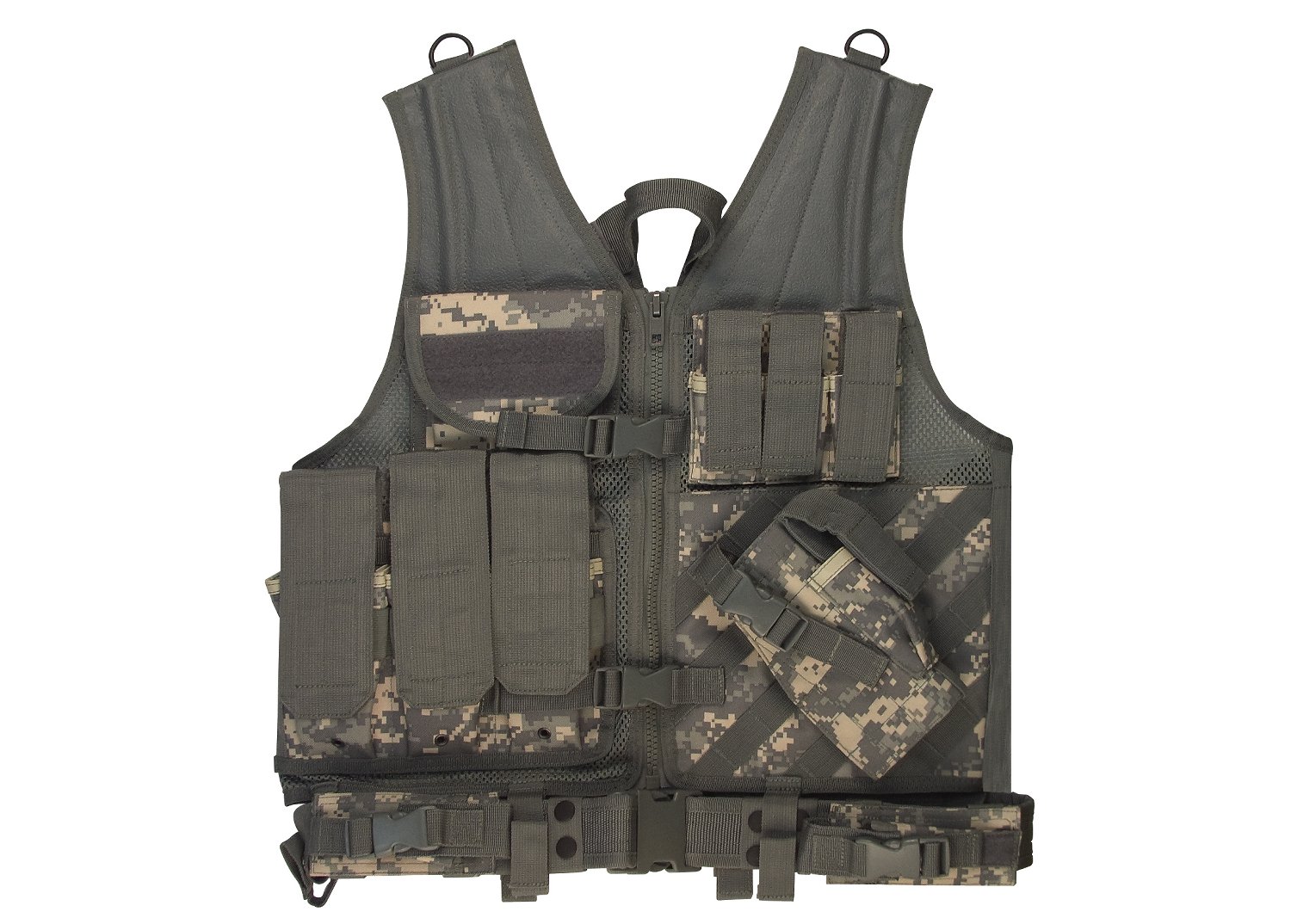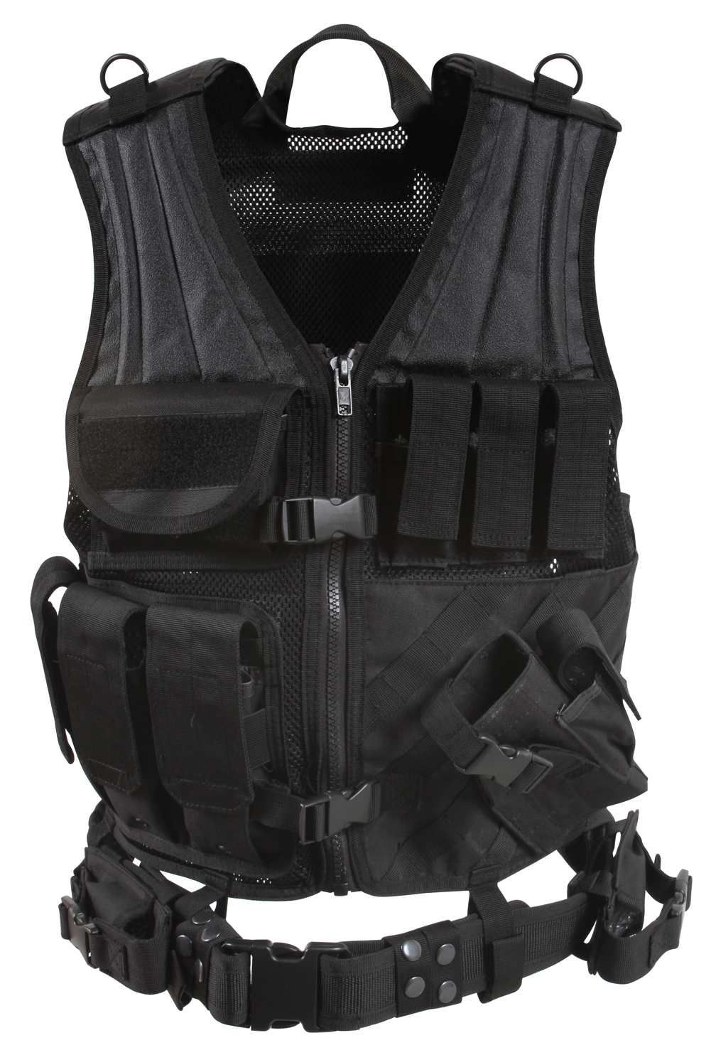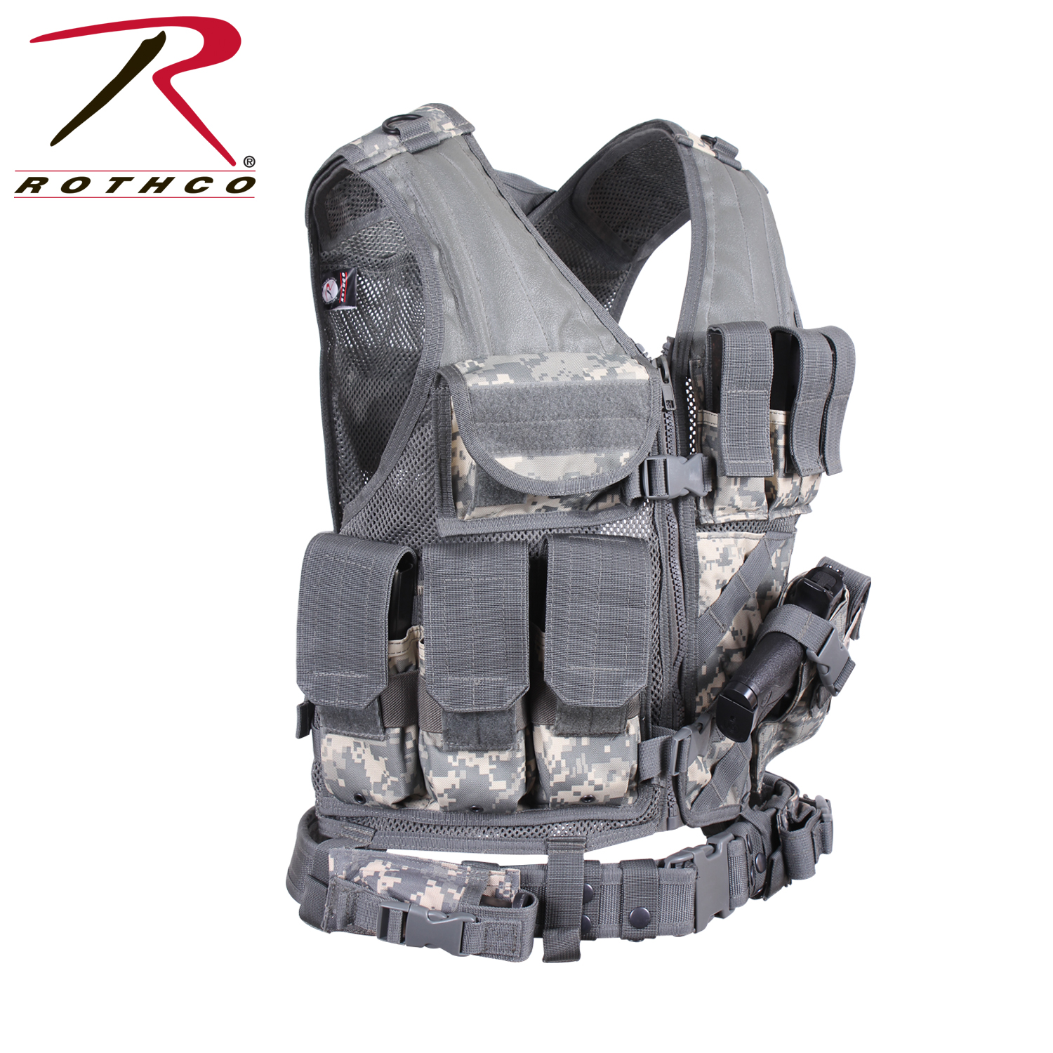 Upgrade your gear with Rothco's Tactical Cross Draw Vest. Crafted from heavyweight polyester mesh, this adjustable vest is MOLLE compatible, providing a customizable and practical solution for field activities. Featuring 3 gear pouches, 3 gear magazine pouches, and 2 document pouches, the MOLLE vest ensures you're well-equipped and organized. The adjustable shoulder straps and drawstring waist offer a perfect fit, while the zip-up front with an adjustable gear belt adds functionality. Stay prepared and efficient with Rothco's Cross Draw MOLLE Tactical Vest.