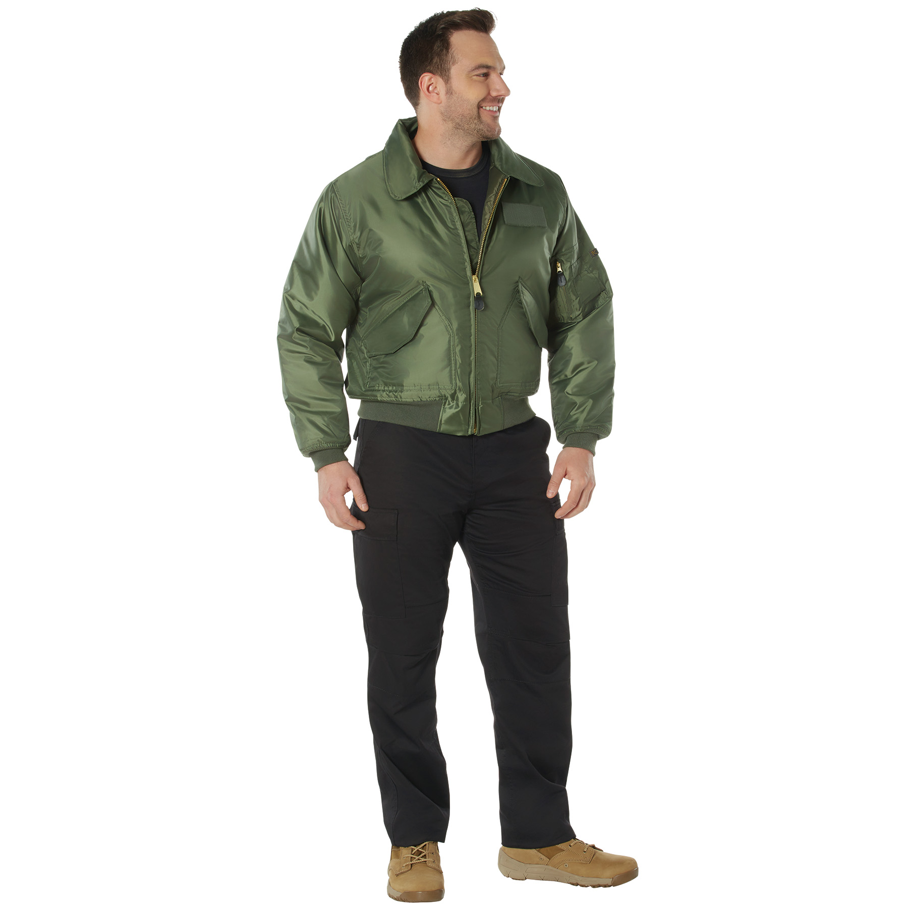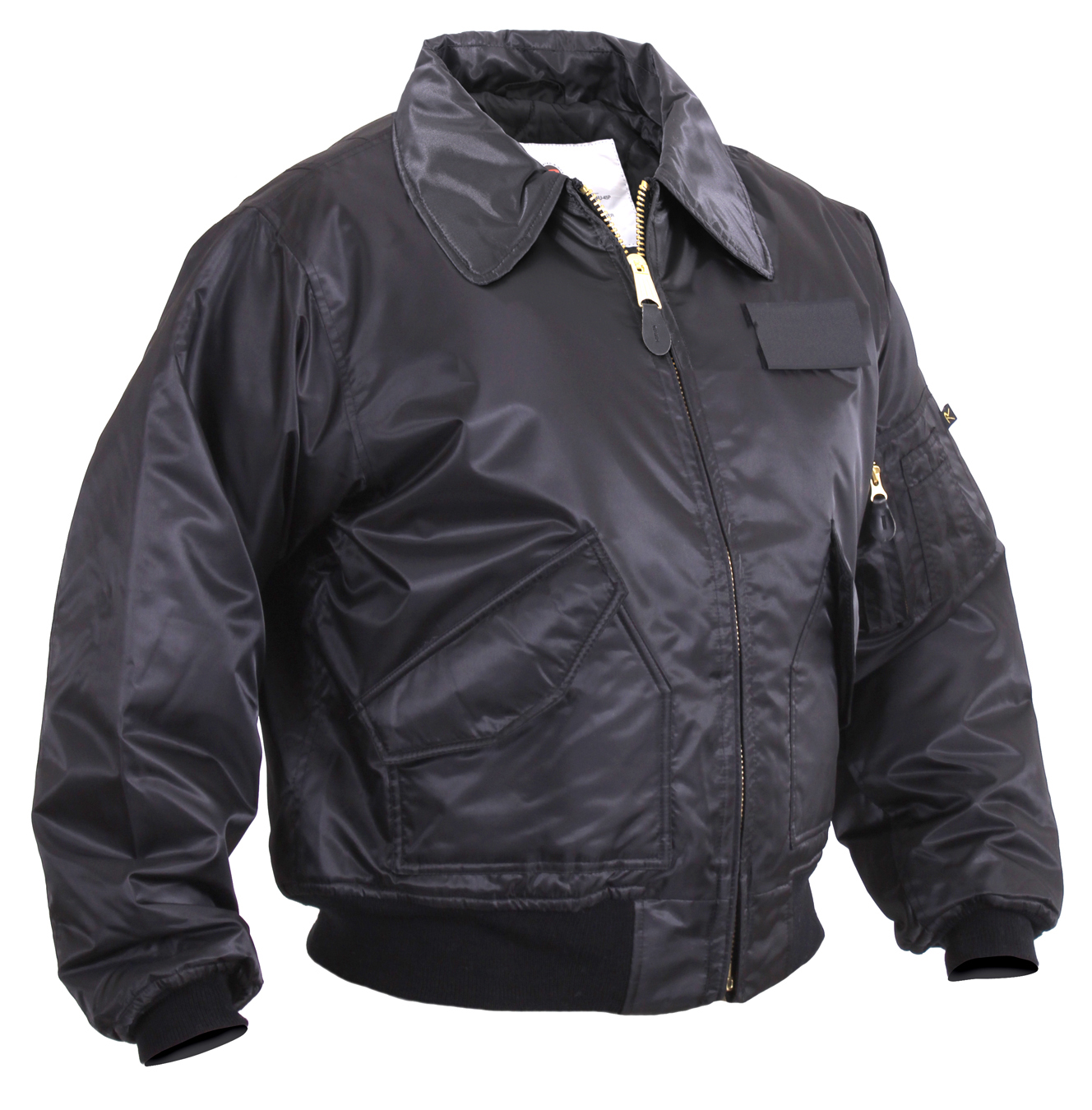 Get ready to battle the elements with our CWU-45P Flight Jacket. Originally created for combat pilots, the CWU-45P jacket is a great way to keep warm and dry. The cold weather uniform jacket features a 100% nylon water-repellent outer shell that protects you from light rain and snow. The bi-swing back enhances your upper body’s mobility while the poly fiberfill insulation keeps you warm, allowing you to focus on the task at hand. Insulating Protection: These aviator jackets come equipped with a warm quilted lining with poly fiberfill that keeps the cold out while retaining internal body heat. The soft ribbed knit fabric cuffs and waistband provide additional insulation. Full Range of Motion: The military bomber jacket features a comfort fit design with an extra full cut for a perfect fit, and a bi-swing back that allows your arms to move more freely for various cold weather activities. Utility Pockets: Our ruggedly durable flight jackets offer convenient storage options through 2 fully lined hand pockets with hook & loop closure flaps, and a zippered utility sleeve pocket on the left arm with exterior pen holders. Classic Styling: In addition to the hook & loop field and color-matched badge on the left chest, the CWU-45P jacket also features a zippered front closure with a storm flap, brass zippers, and leather pull tabs.