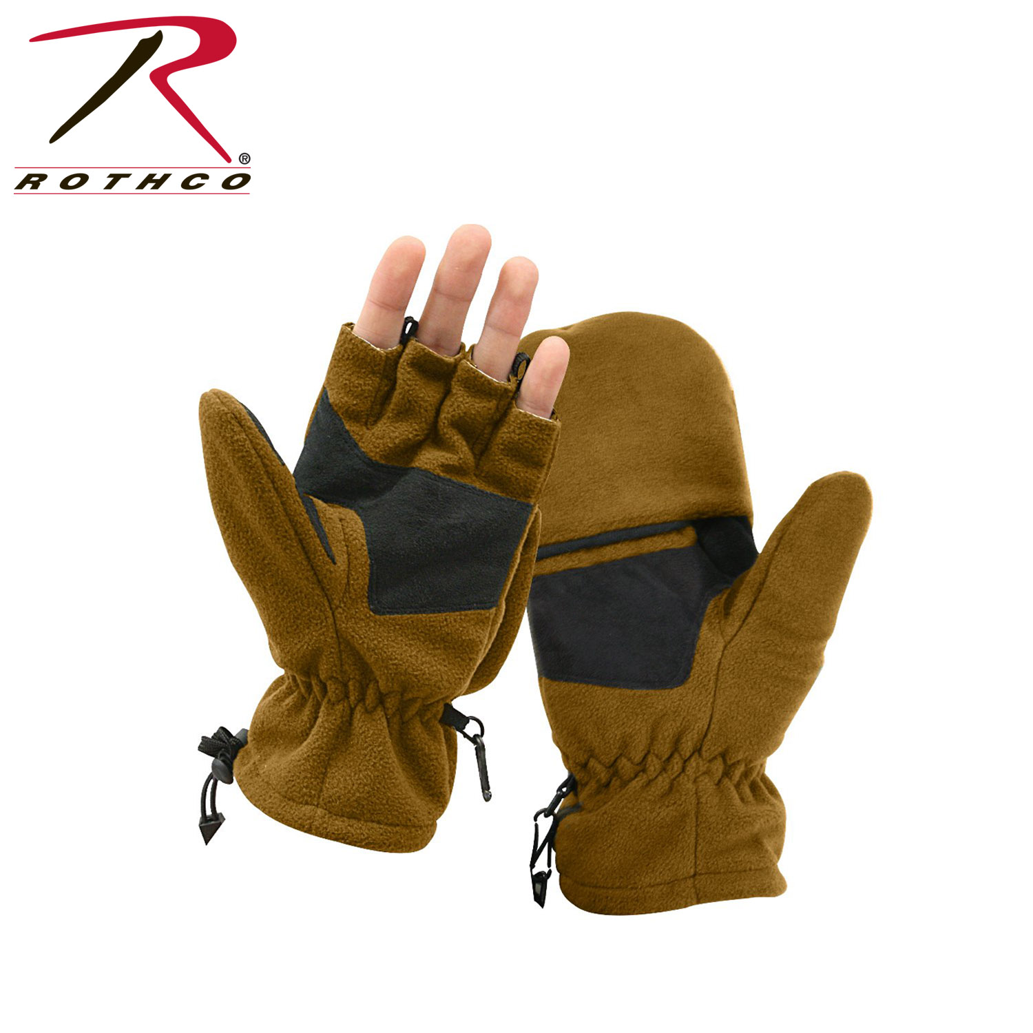 Rothco Fingerless Gloves / Mittens combine the versatility of fingerless gloves with the warmth of mittens. Featuring a windproof design with a retractable mitten top, these gloves provide flexibility for tasks requiring dexterity or warmth. The breathable polyester fleece shell ensures comfort in various conditions. An elastic wrist with a locking cinch cord offers a secure fit, while the hook & loop closure on the back allows for easy adjustment. Whether hiking, cycling, or working outdoors, these gloves are designed to keep hands protected and comfortable.