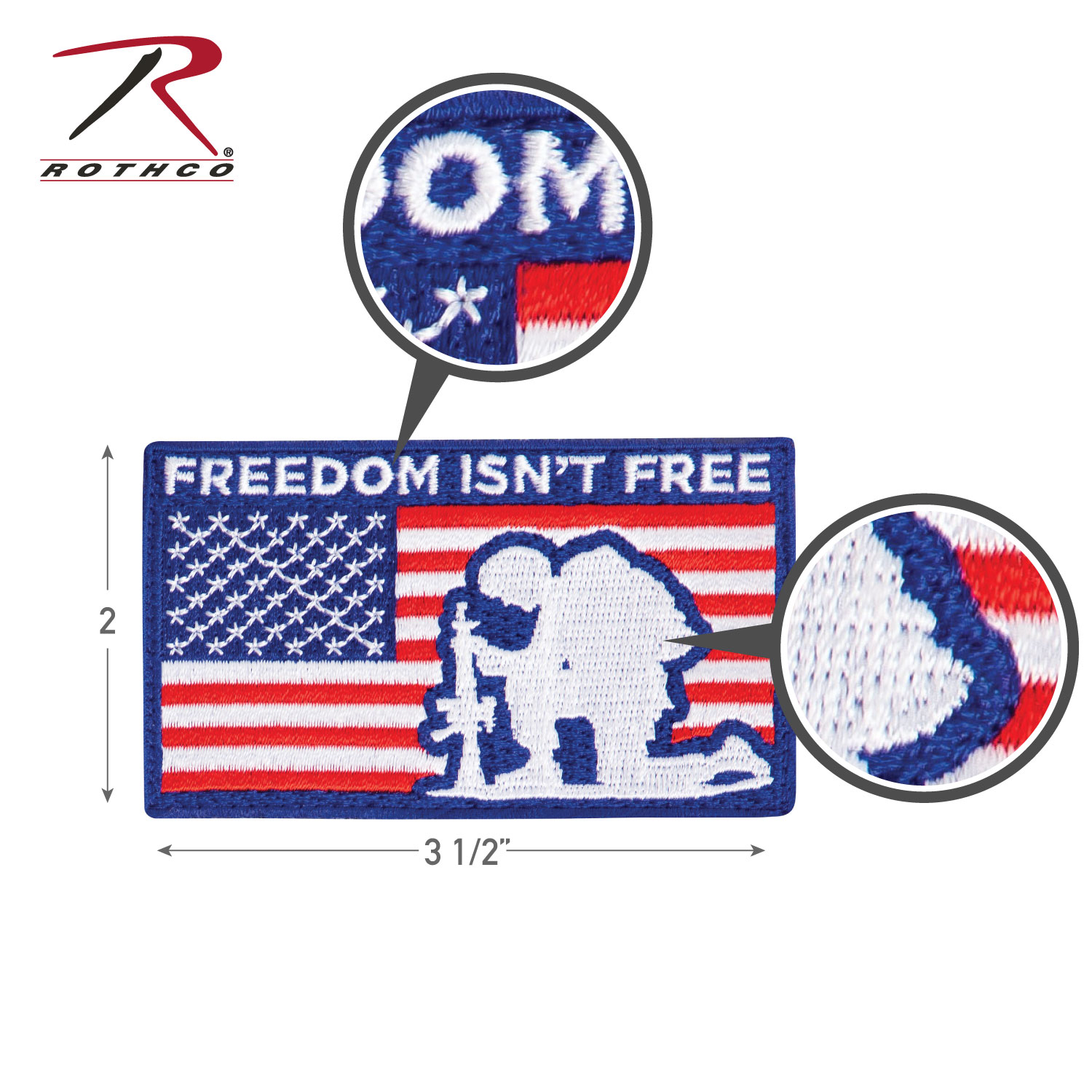 Rothco’s American Flag Patch features “Freedom Isn’t Free” lettering and a kneeling solider, and can be attached to a variety of tactical gear and apparel with a hook field on the back. Measuring 3.5” X 2”, the Freedom American Flag Patch displays a red, white and blue US flag, and white “Freedom Isn’t Free” lettering and a kneeling soldier.