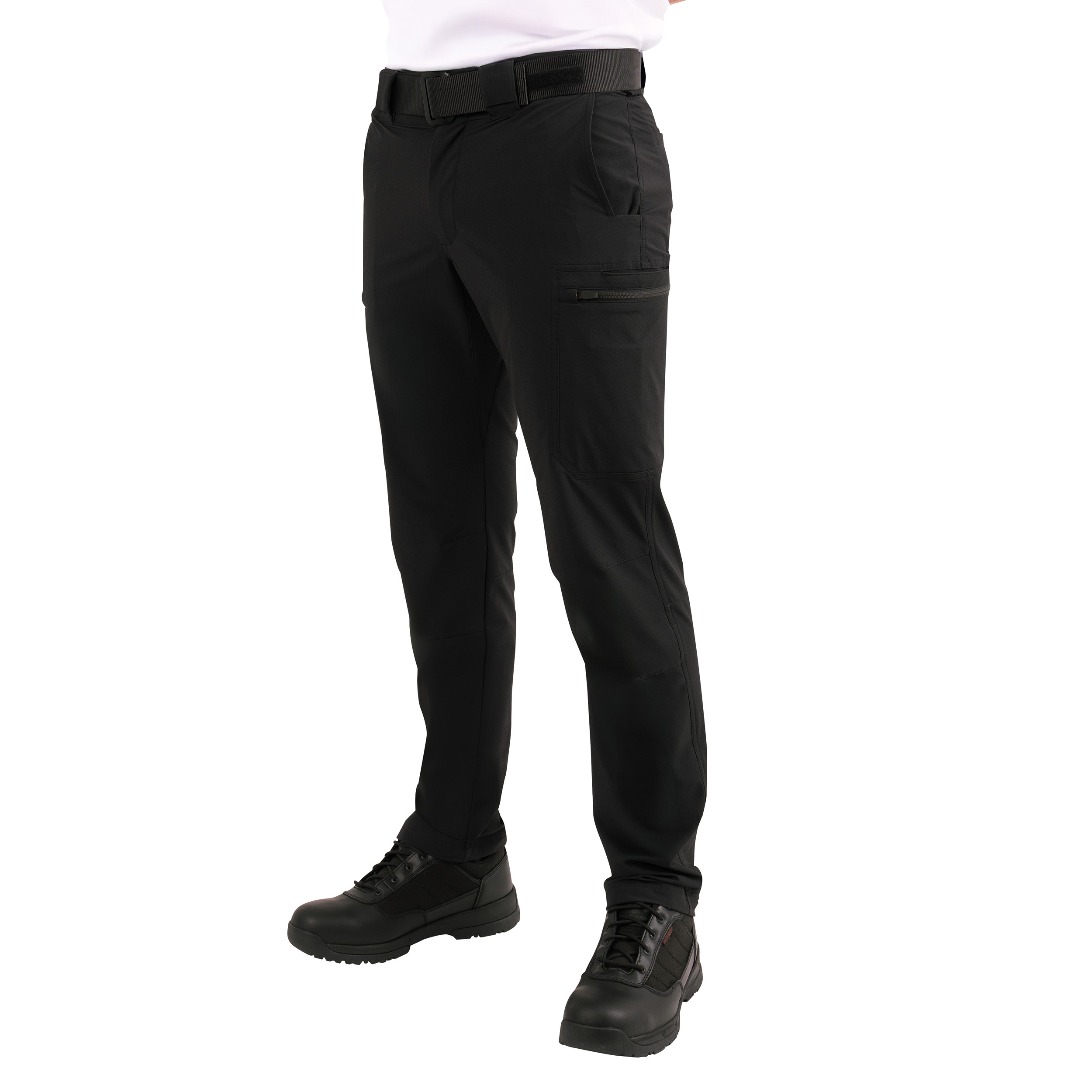 Rothco’s Frontline Series Edge Pants are built for operations where adaptability, durability, and performance matter most. As part of our Frontline Series, the Edge Pants are crafted with utility-focused features that include a DWR coated four-way stretch fabric, a “knee to knee” running crotch gusset for unrestricted mobility, and a low-profile strategic design that is perfect for on and off-duty. Water-Resistant Mobility: Our Edge Pants are engineered with a water-repellent nylon / elastane performance four-way stretch fabric for a comfortable fit that moves with you. The fabric features Durable Water Repellent (DWR) coating that shields against water and outdoor debris. Comfort That Keeps Up: The tactical stretch pants feature a flexible waistband for a perfect fit, every time and anywhere. The “knee to knee” running crotch gusset offers greater range of motion and reduced stress on the seams, allowing you to move comfortably during emergencies and demanding situations. Low-Profile Utility: The plainclothes duty pants come equipped with 12 utility pockets: dual zippered low-profile cargo pockets with 2 inner firearm mag pockets, dual drop-in cell phone pockets, dual vertical “L” style front pockets with reinforced knife dock edges, and dual drop-in back pockets for duty gear, tactical equipment, and EDC essentials. Uniform-Ready Design: These low-profile tactical cargo pants feature duty belt sized double-stitched 2.25-inch-wide belt loops, with dual badge holder tabs at the front for easy access and clear identification. These uniform pants come standard with Prym snaps, YKK zipper fly, and cargo pocket closures. The New Standard: As part of Rothco’s Frontline Series, the Edge Pants redefine tactical readiness with a premium build that meets the demands of real-world conditions experienced by police officers, first responders, public safety, security guards, outdoor operators, and explorers.