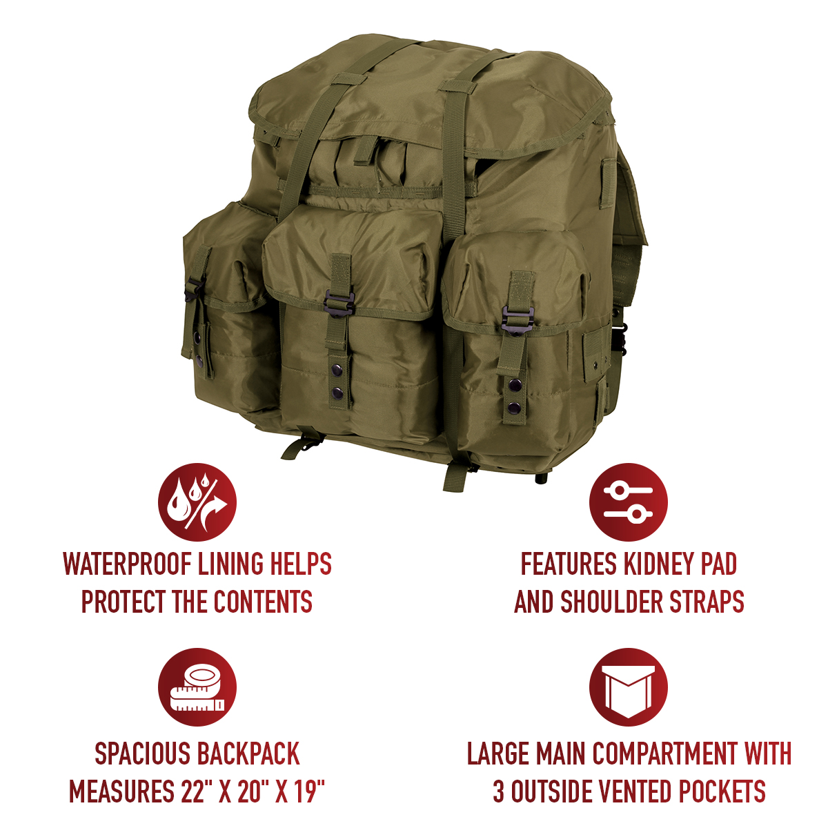 Inspired by the field-proven Alice backpack, Rothco’s Large Alice Pack is designed to active-duty specifications that are ideal for camping, hiking, or active-duty personnel. This heavy-duty rucksack offers high-capacity storage, waterproof lining, and enhanced comfort features. This is one backpack you’ll want to have alongside you every step of the way.
