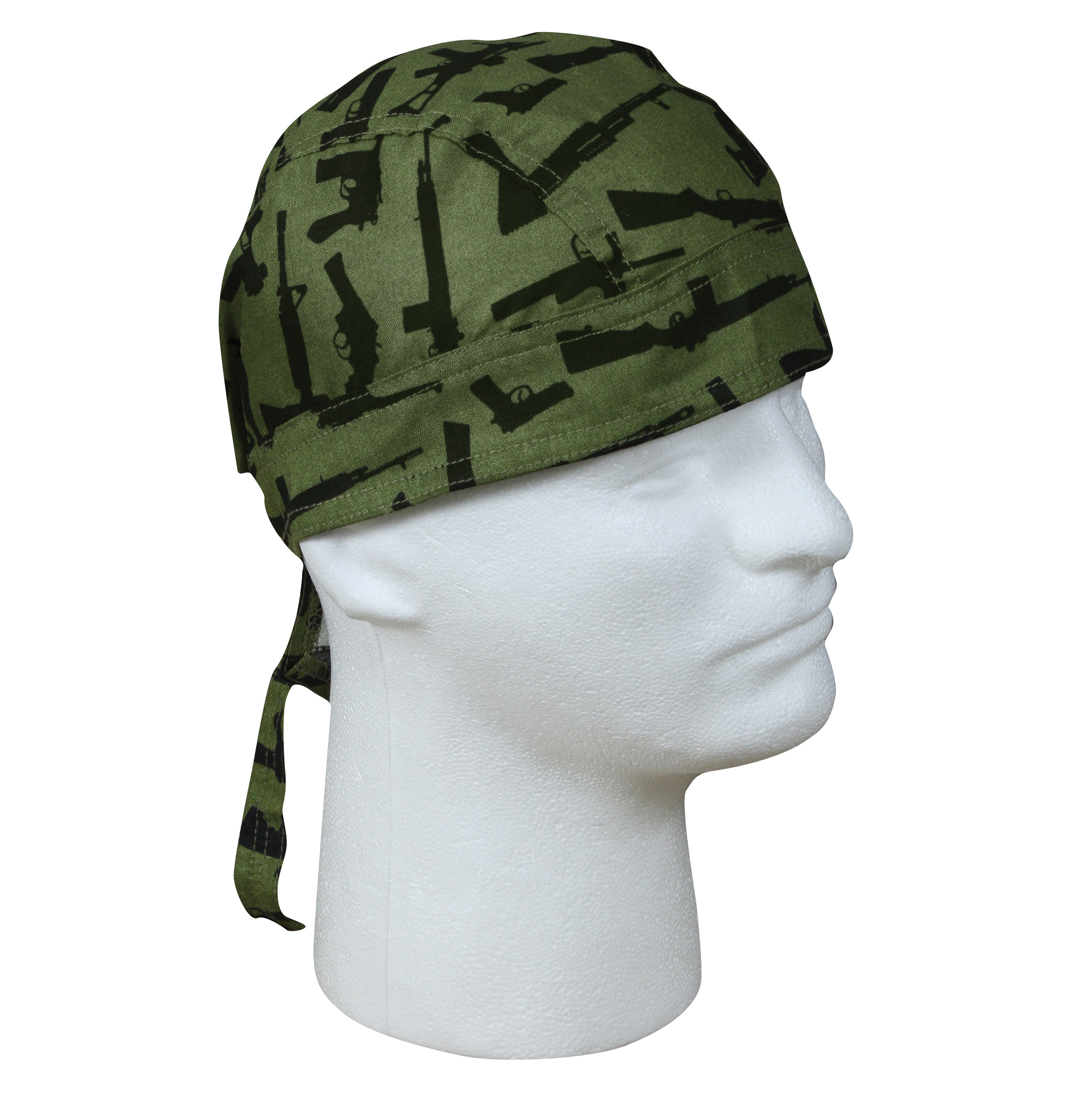 Rothco's Gun Pattern Headwrap tie in the back and cover the upper forehead and head. Great for wearing under a helmet or on its own. One size fits all & features a multi gun pattern.