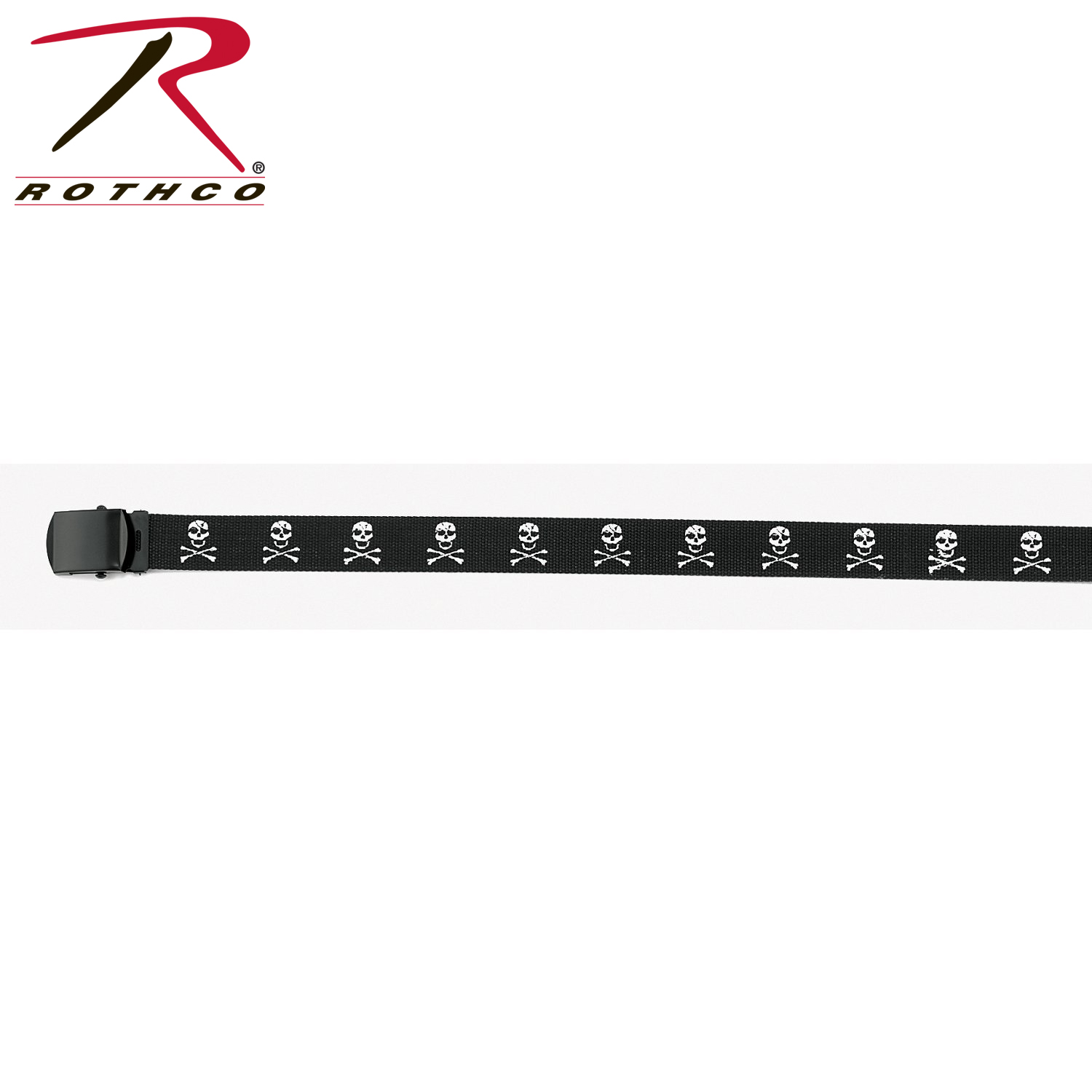 Rothco's Jolly Roger Web Belt takes the classic military web belt to the next level with a bold white skull and crossbones pattern that repeats around the entire belt. Crafted from durable, high-quality webbing, this belt is built for long-lasting use while offering a comfortable, adjustable fit. Whether you’re looking to add some style to your everyday outfits or complete a pirate costume, this belt provides the perfect combination of function and fashion.