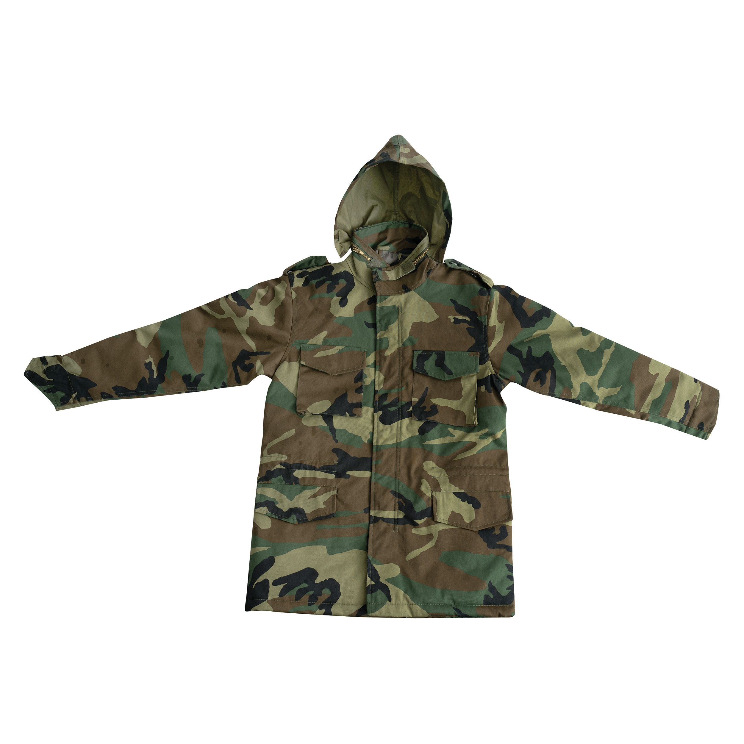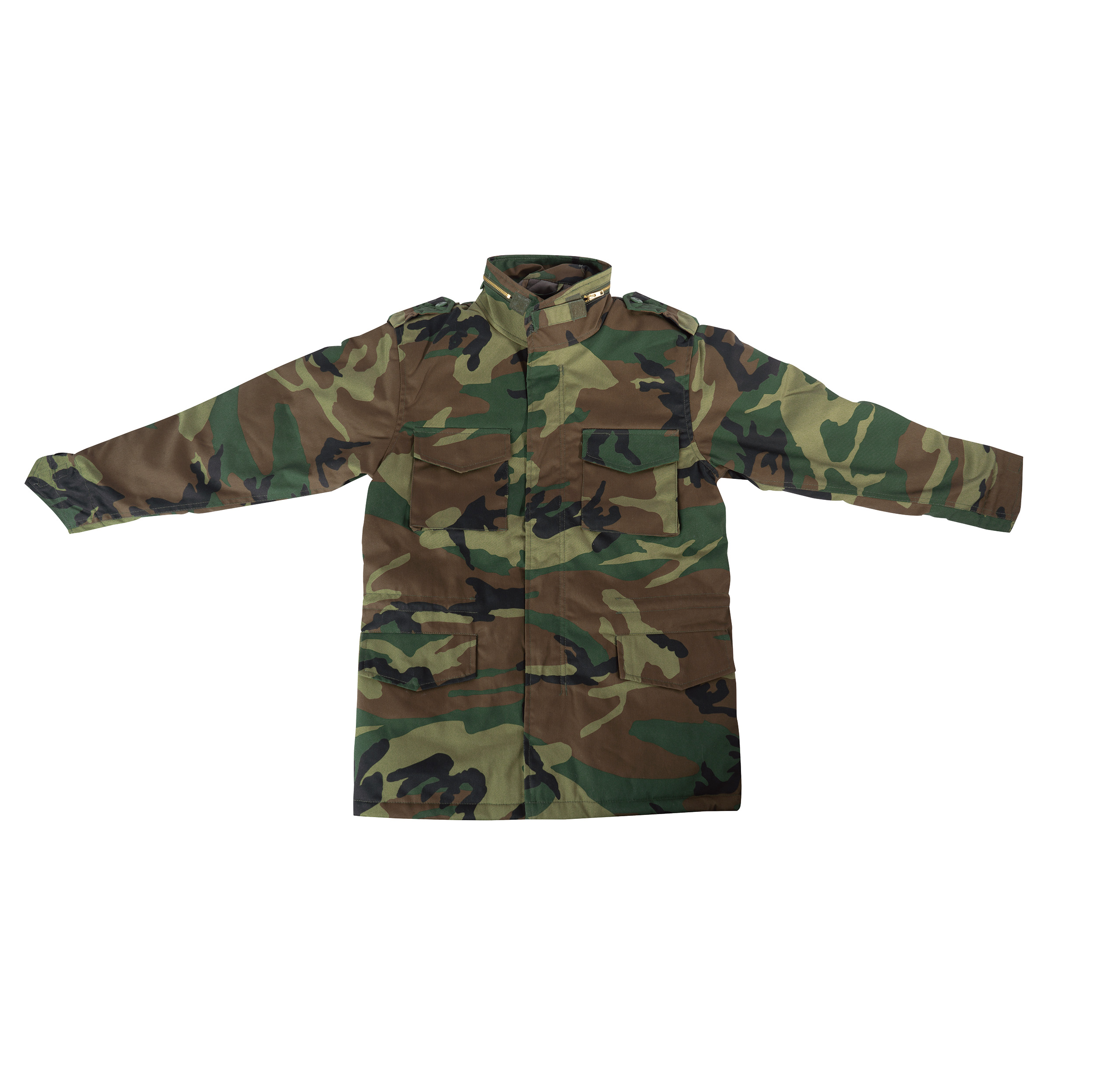 Rothco Kid's M-65 Field Jacket is the ideal outerwear for your child's outdoor adventures. Crafted from a durable 55% cotton / 45% polyester twill outer shell, this field jacket is designed to withstand the elements and provide long-lasting wear. The water-repellent finish ensures your child stays dry in wet conditions, while the built-in quilted liner made of 100% polyester adds an extra layer of warmth and comfort. The outdoor jacket features a hook & loop neck closure and a concealed hood with a brass zipper closure for added protection against wind and rain. The hood matches the color of the outer shell and is detachable for versatile wear. With button-down epaulettes, large chest pockets with snap closures, and large waist cargo pockets with snap seals, this all-weather jacket offers ample storage space for all your child's essentials. Hook & loop wrist cuffs allow for attachment to gloves, ensuring a secure fit. The right-hand zipper pull and bottom drawstring provide additional functionality and comfort, while snap-up storm flaps offer extra protection from the elements. Rothco Kid's M-65 Field Jacket is a classic and practical choice for any young adventurer.