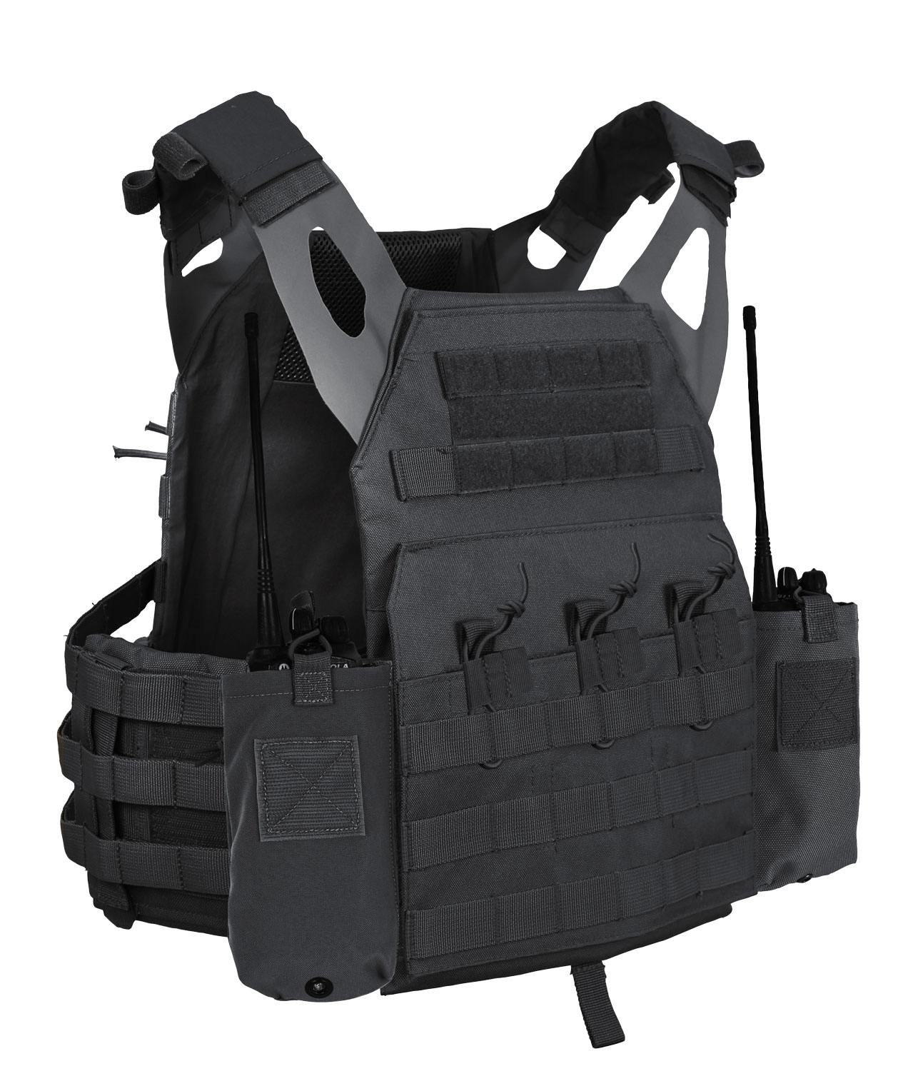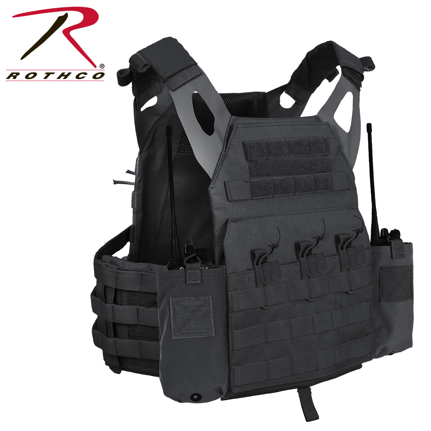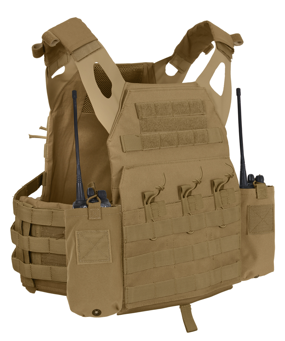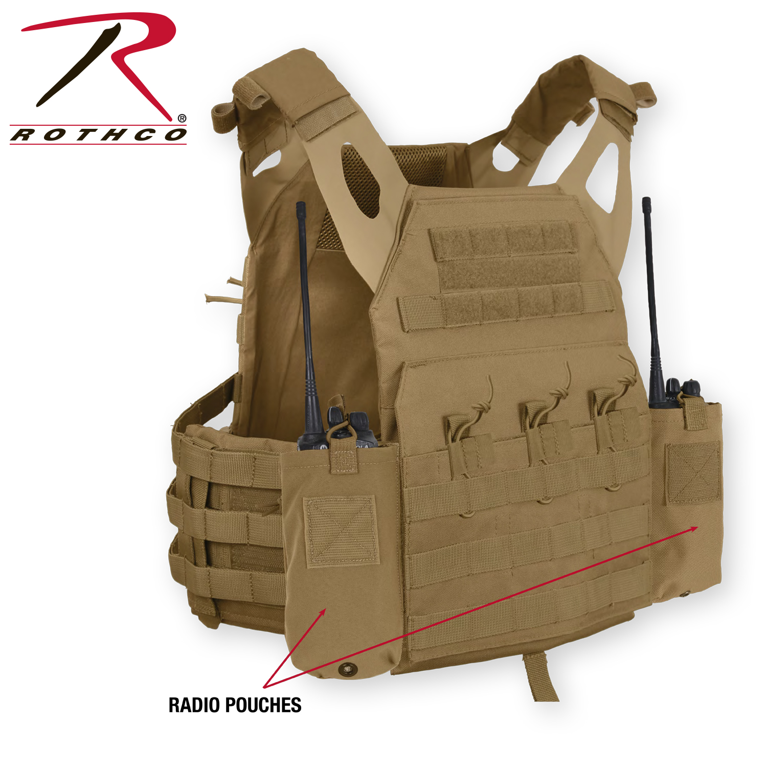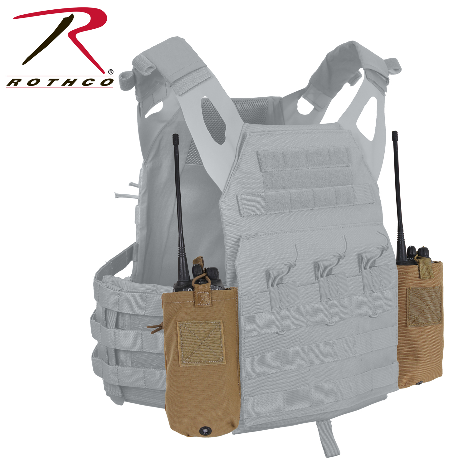 Rothco LACV (Lightweight Armor Carrier Vest) Side Radio Pouch Set features hook and loop field for attaching radio pouches to the side of the lightweight armor carrier vest. The pouches are designed with an elastic cord closure and pull tab for securing the radio as well as a drain hole. Sold in a set of two.