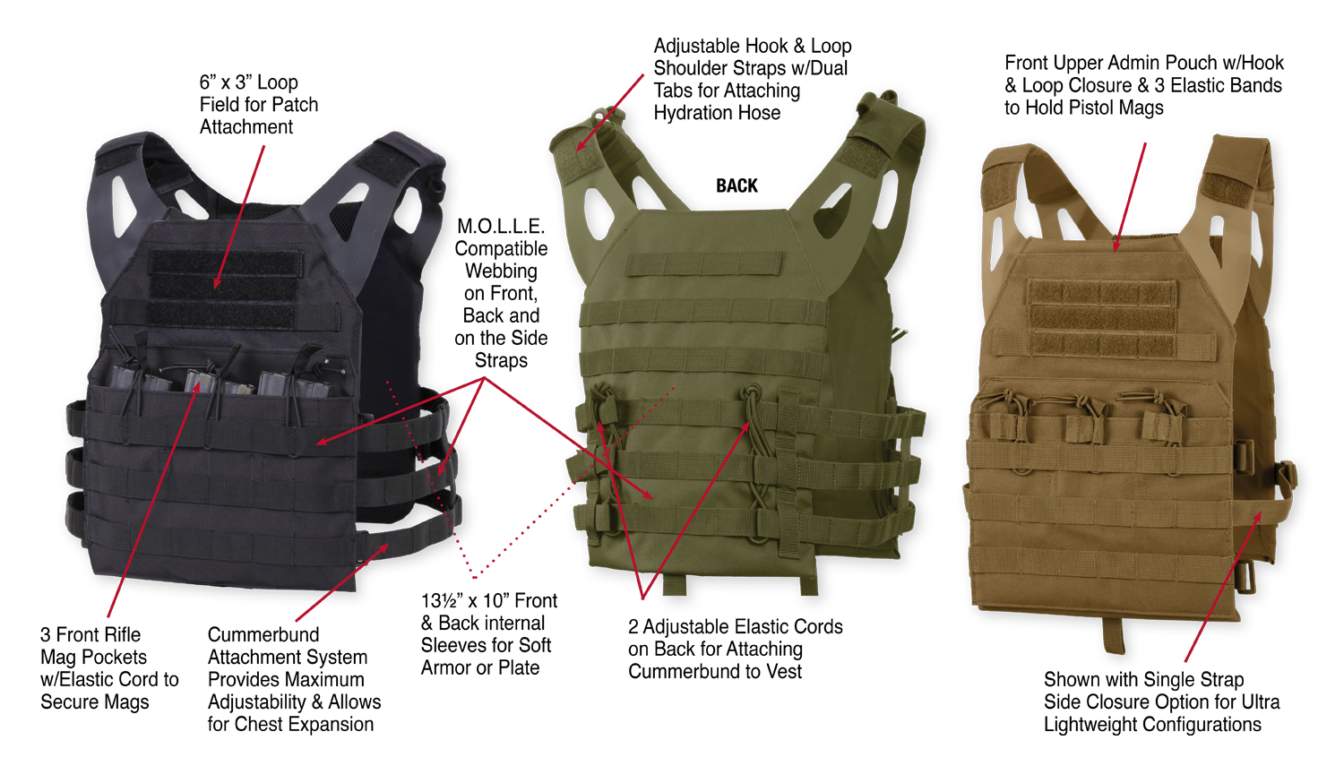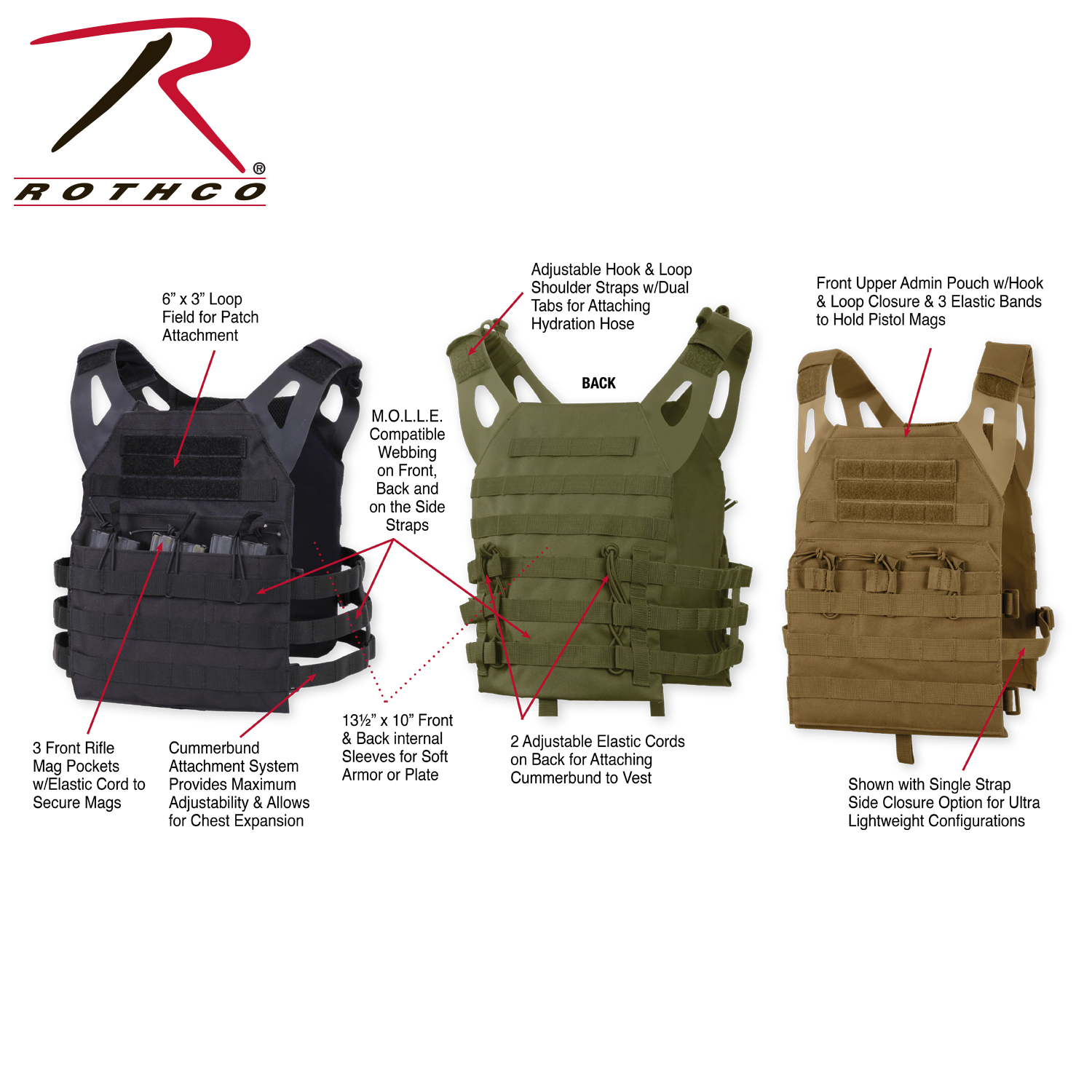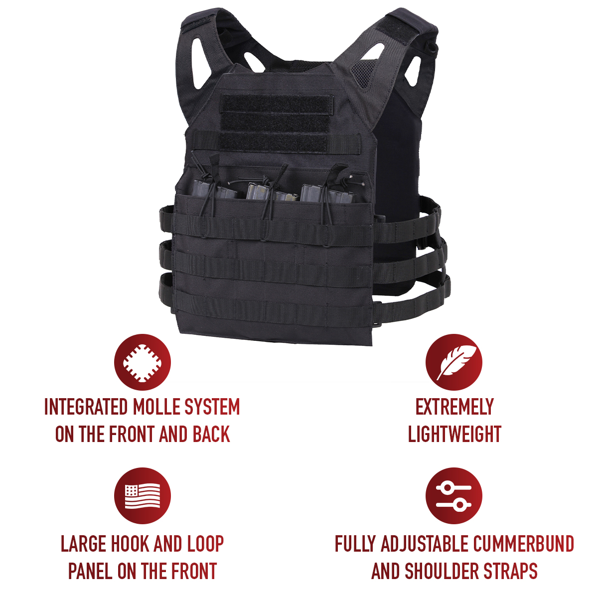 Experience excellence with Rothco's Lightweight Plate Carrier Vest. Weighing just over a pound, this vest redefines lightweight performance without compromising on functionality. The skeletonized MOLLE cummerbund system ensures minimal weight and optimal airflow, enhancing your mobility and comfort.