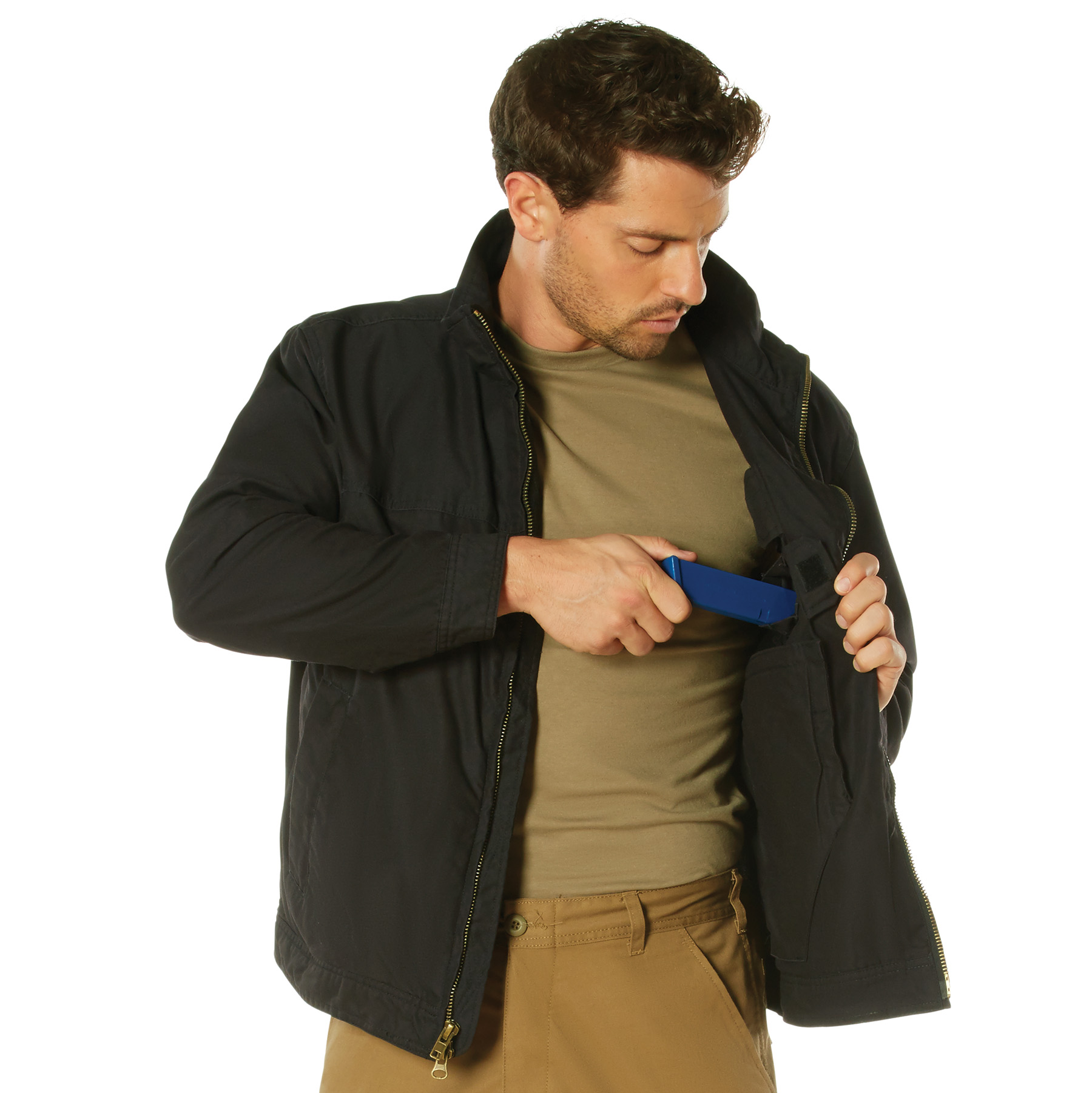 Discover Rothco’s Lightweight Concealed Carry Jacket, a versatile 3-season jacket with ambidextrous concealed pockets and inner gear pouches. Stylish and functional, it's perfect for those who prioritize both fashion and functionality. Tactical Pockets: Access Your Gear From Either Side For Quick And Discreet Retrieval. Inner Gear Pouches: Four Hook And Loop Pouches Keep Your EDC Essentials Organized And Easily Accessible. Tricot-Lined Zipper Pockets: Stay Warm With Two Tricot-Lined Front Zipper Pockets For Added Comfort And Storage. Quick Access With Two-Way Zipper: Sturdy Brass Zipper Allows Quick Access To Your Gear When Needed. Adjustable Fit: Lightweight And Durable, The Jacket Features Button Adjustment Waist Straps For A Perfect And Comfortable Fit.