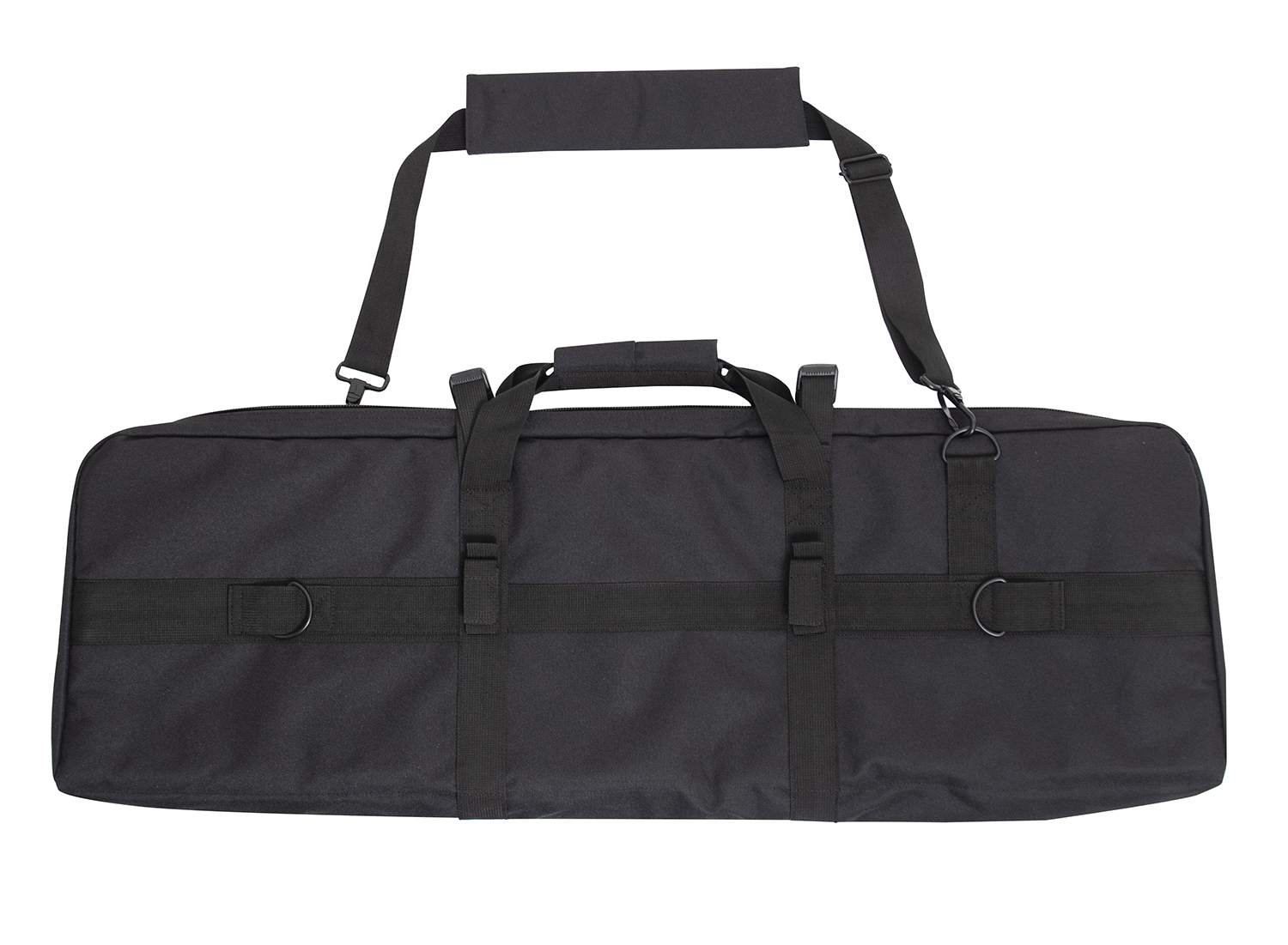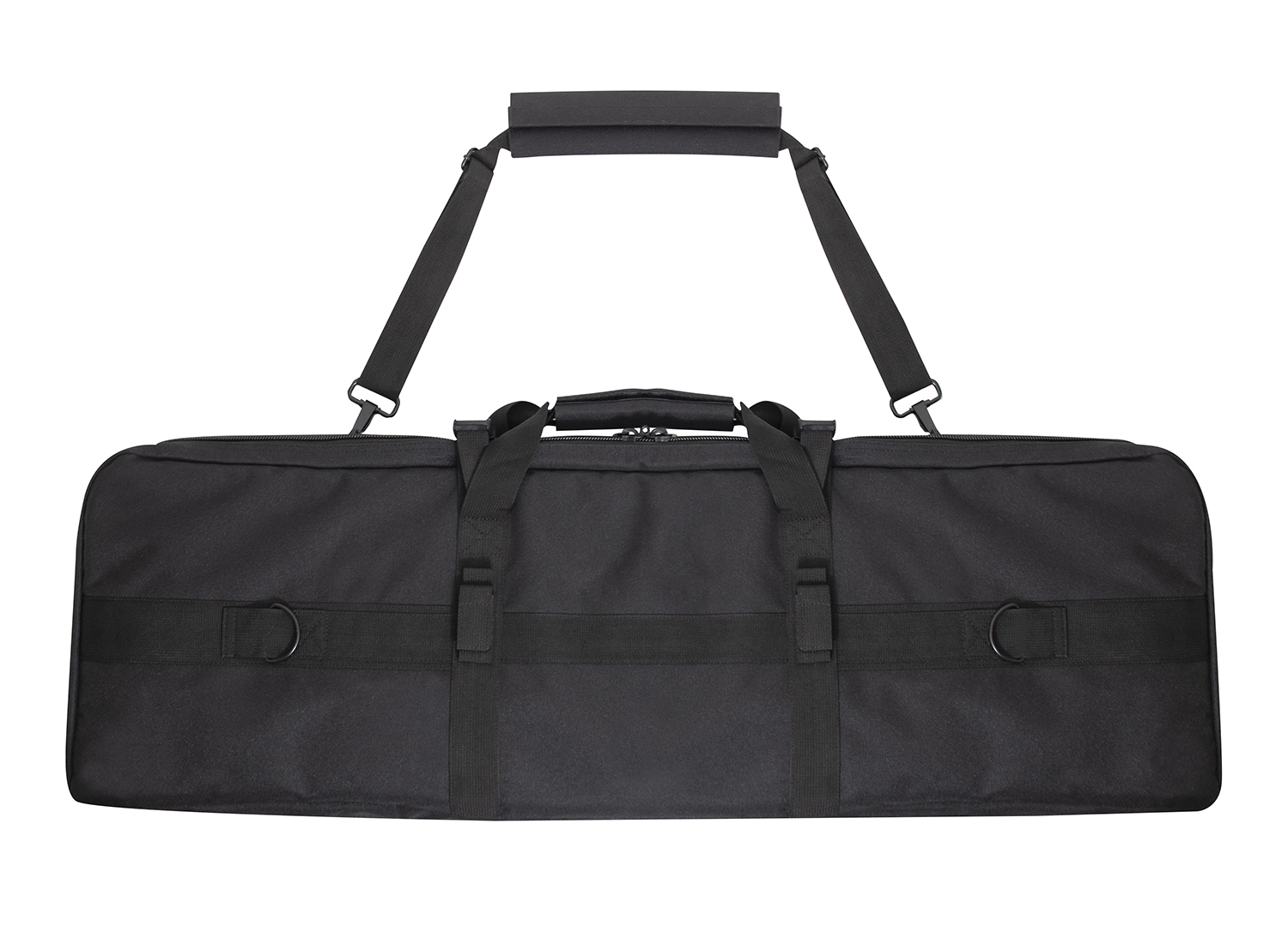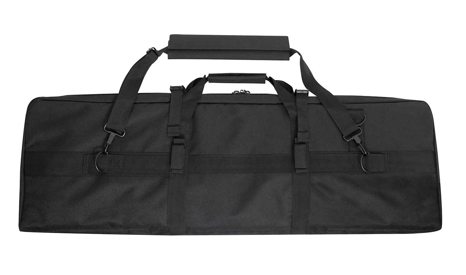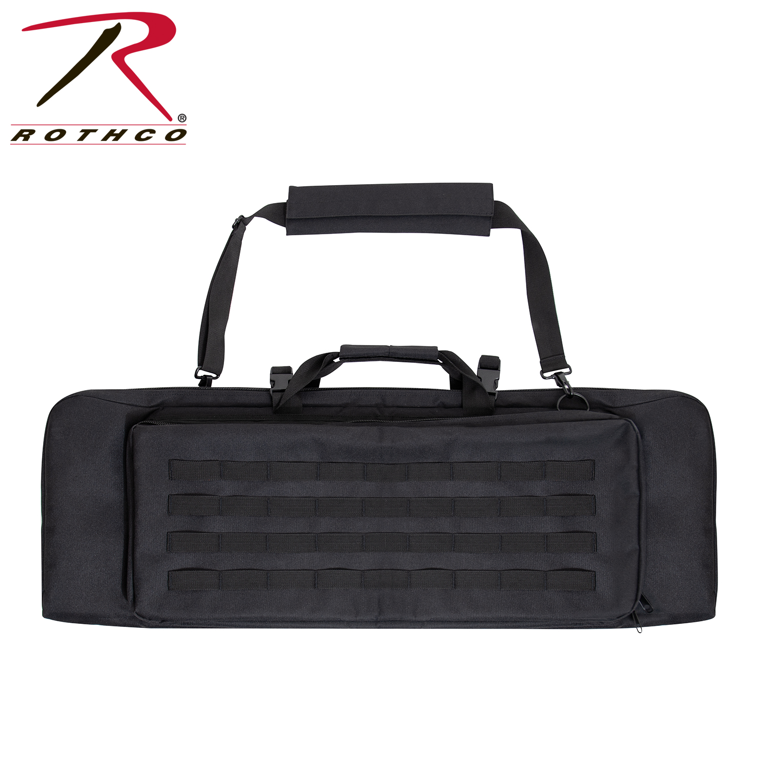 Store and carry your rifle with confidence with Rothco’s Low Profile 36 Inch Rifle Case. This reliable gun case is perfect for hunters, MilSim players, and more. The rifle case’s main compartment features two elastic straps and two covers to secure your rifle and magazines. The outside pocket on the soft rifle case with four rows of MOLLE webbing for mounting mag pouches and other MOLLE accessories. The AR gun case’s outside pocket features two inner slit pockets for storing sidearms, additional mags, range gear, and more. 3/4 inch thick padding in the tactical rifle case insulates your rifle and accessories for added protection, while two strong buckles support the lockable two-way zipper closures to keep the discreet rifle case closed. An adjustable and removable web strap can attach to D-rings on the back of the tactical gun case for multiple ways to carry.