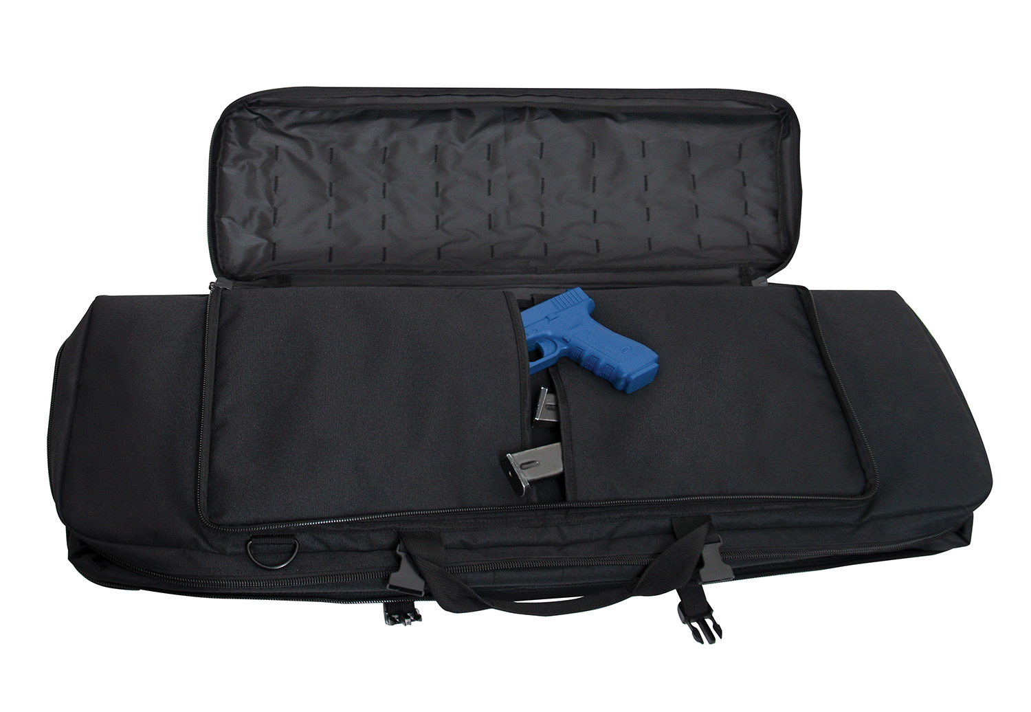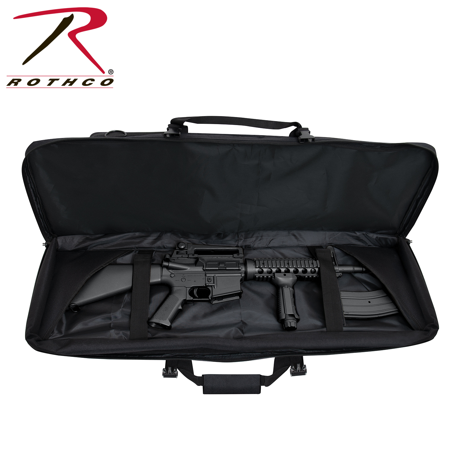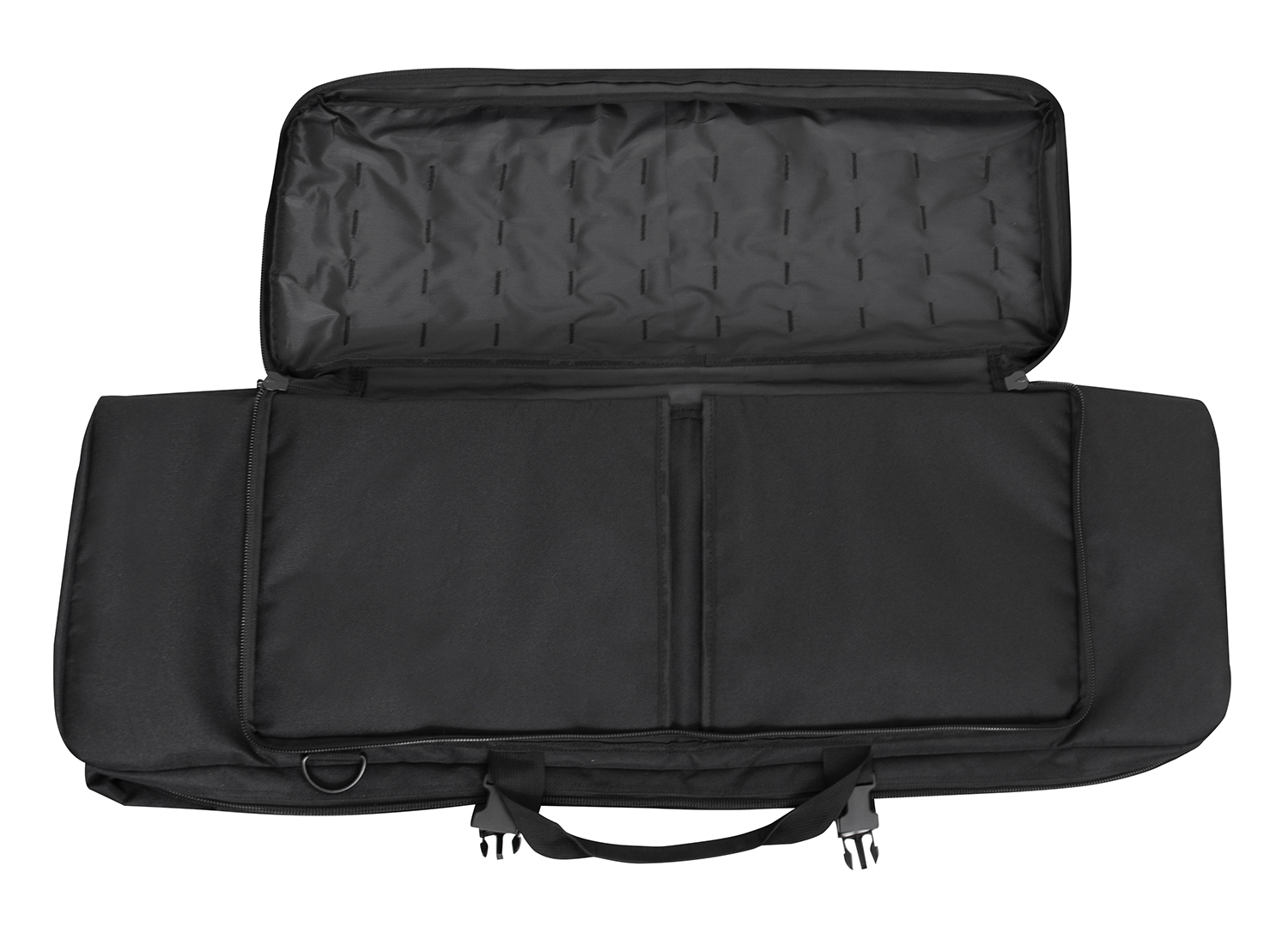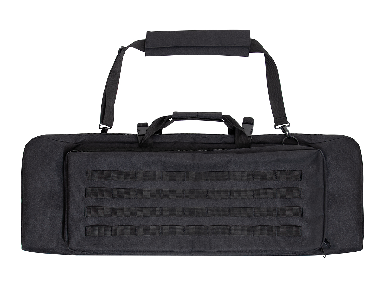 Store and carry your rifle with confidence with Rothco’s Low Profile 36 Inch Rifle Case. This reliable gun case is perfect for hunters, MilSim players, and more. The rifle case’s main compartment features two elastic straps and two covers to secure your rifle and magazines. The outside pocket on the soft rifle case with four rows of MOLLE webbing for mounting mag pouches and other MOLLE accessories. The AR gun case’s outside pocket features two inner slit pockets for storing sidearms, additional mags, range gear, and more. 3/4 inch thick padding in the tactical rifle case insulates your rifle and accessories for added protection, while two strong buckles support the lockable two-way zipper closures to keep the discreet rifle case closed. An adjustable and removable web strap can attach to D-rings on the back of the tactical gun case for multiple ways to carry.
