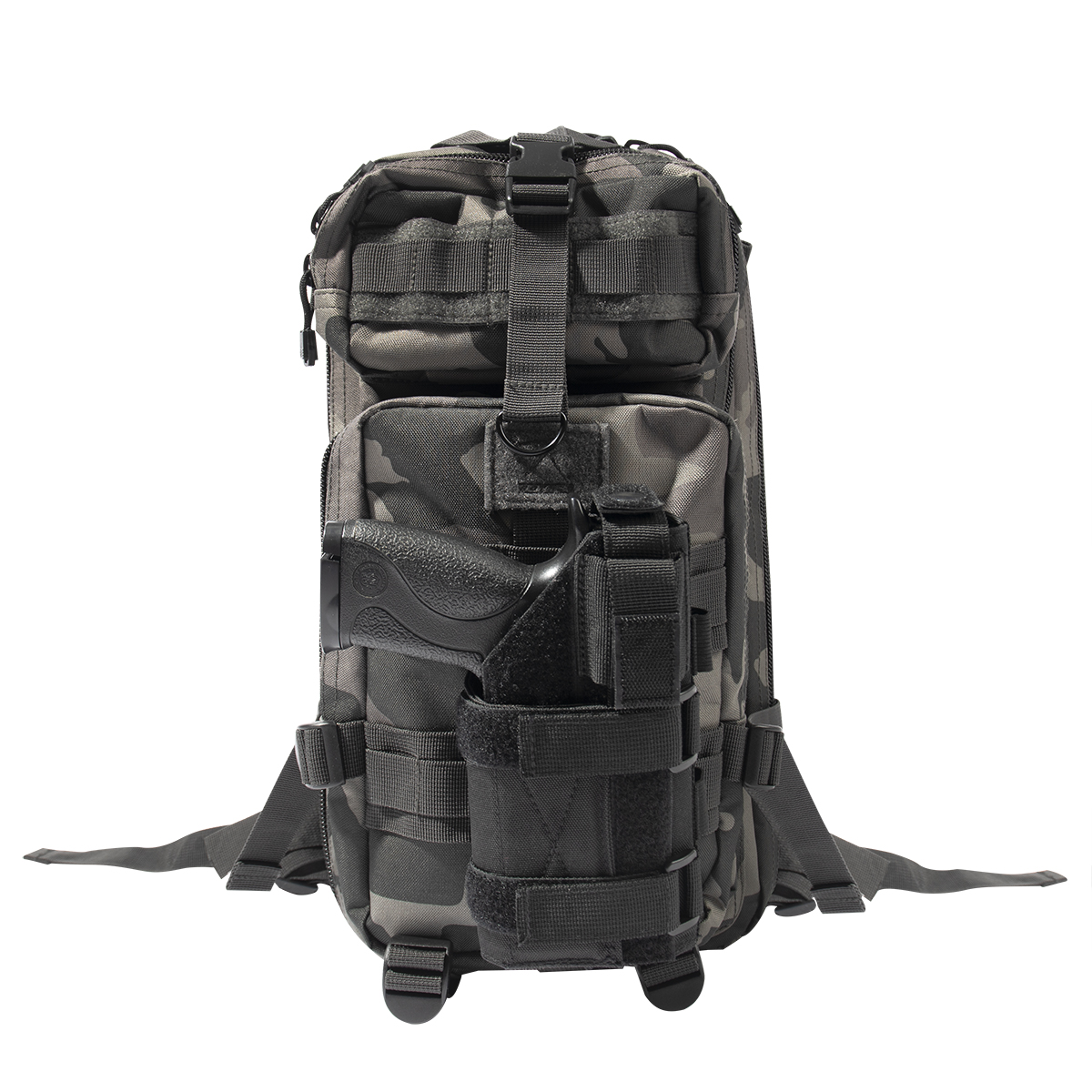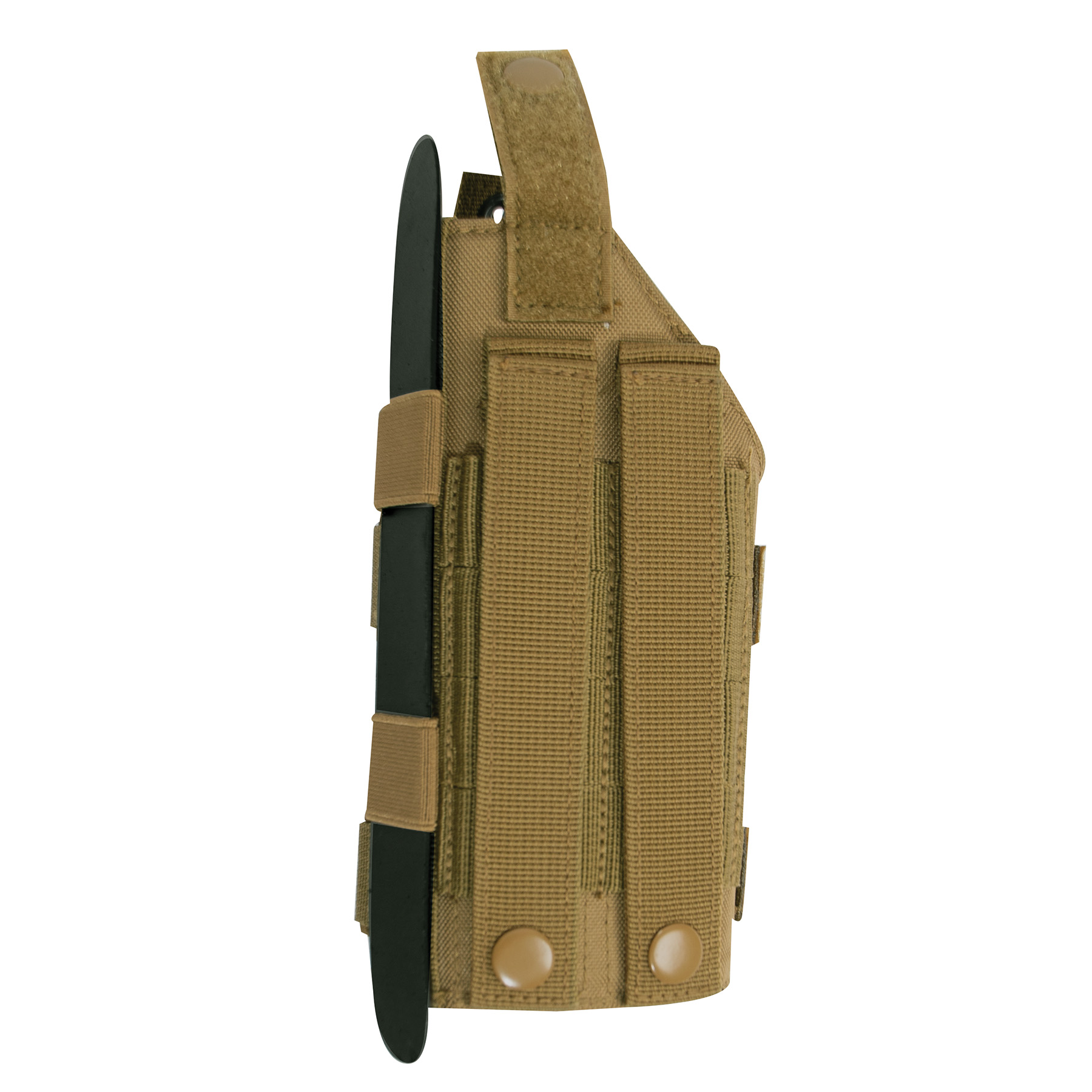 Rothco's Low Profile MOLLE Firearm Holster is fully adjustable and customizable to fit most compact and midsize firearms. The MOLLE compatible holster will attach to most tactical gear.Â