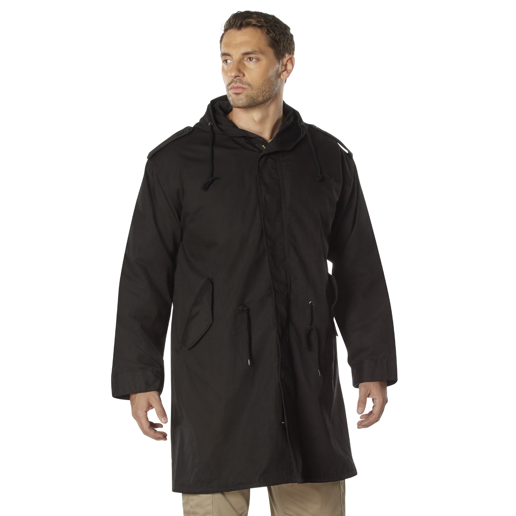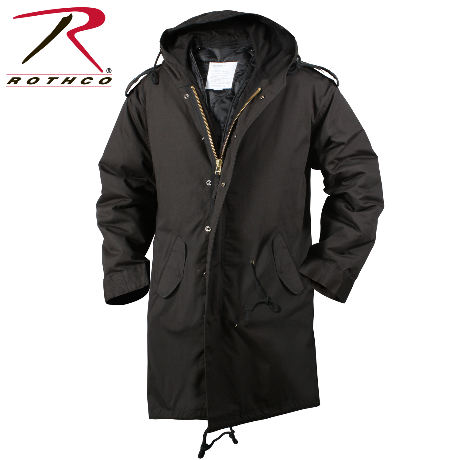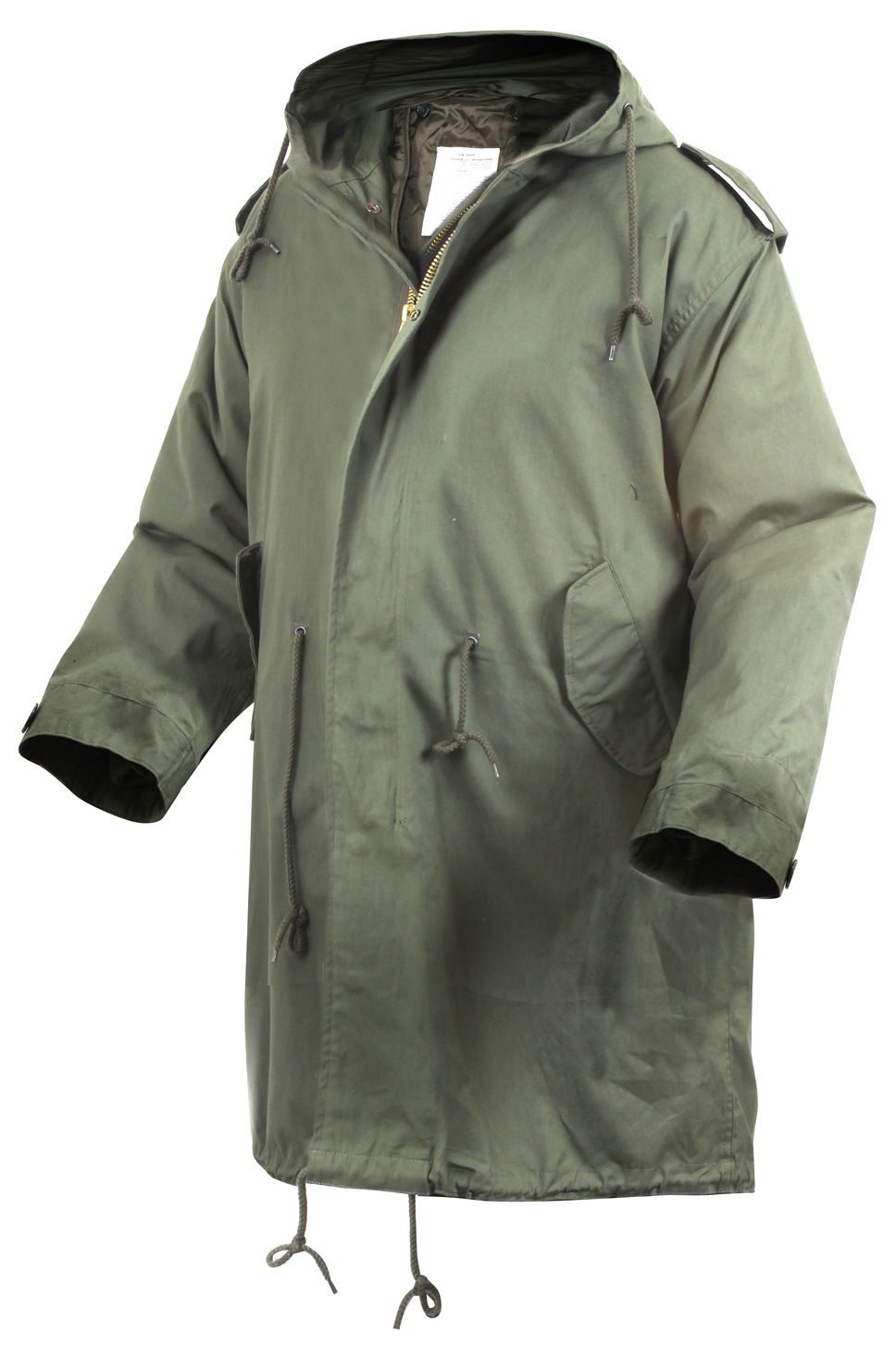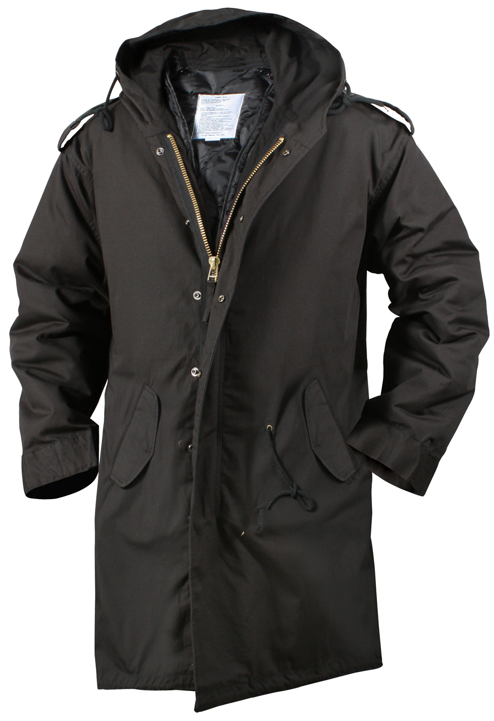 Conquer the cold with Rothco's Fishtail Parka, a perfect blend of style and functionality. Crafted from 100% cotton, this parka boasts a polyester button-in liner for added warmth, ensuring you stay comfortable in chilly weather. The snap-up back flap adds a unique touch while providing ventilation when needed. The brass zipper with a snap-up storm flap offers enhanced protection against the elements. Enjoy a customizable fit with the drawstring hood, waist, bottom, and adjustable wrist cuffs. Classic service-style button-down epaulets add a timeless touch, and the 2 front flap pockets provide secure storage for small essential gear.