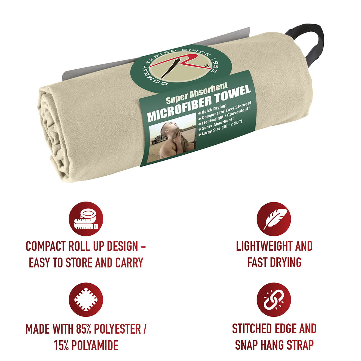 Rothco’s Microfiber Towel is the perfect companion for your outdoor adventures. Crafted from a lightweight and fast-drying blend of 85% polyester and 15% polyamide, this towel is designed to keep you dry and comfortable in any situation. Its compact size makes it easy to pack and carry, while the stitched edge and snap hang strap ensure durability and convenience. Whether you're camping, hiking, traveling, or hitting the gym, this versatile towel is a must-have accessory. Stay dry and ready for anything with Rothco's Microfiber Towel.