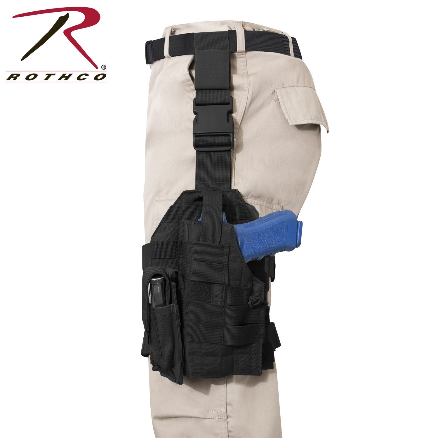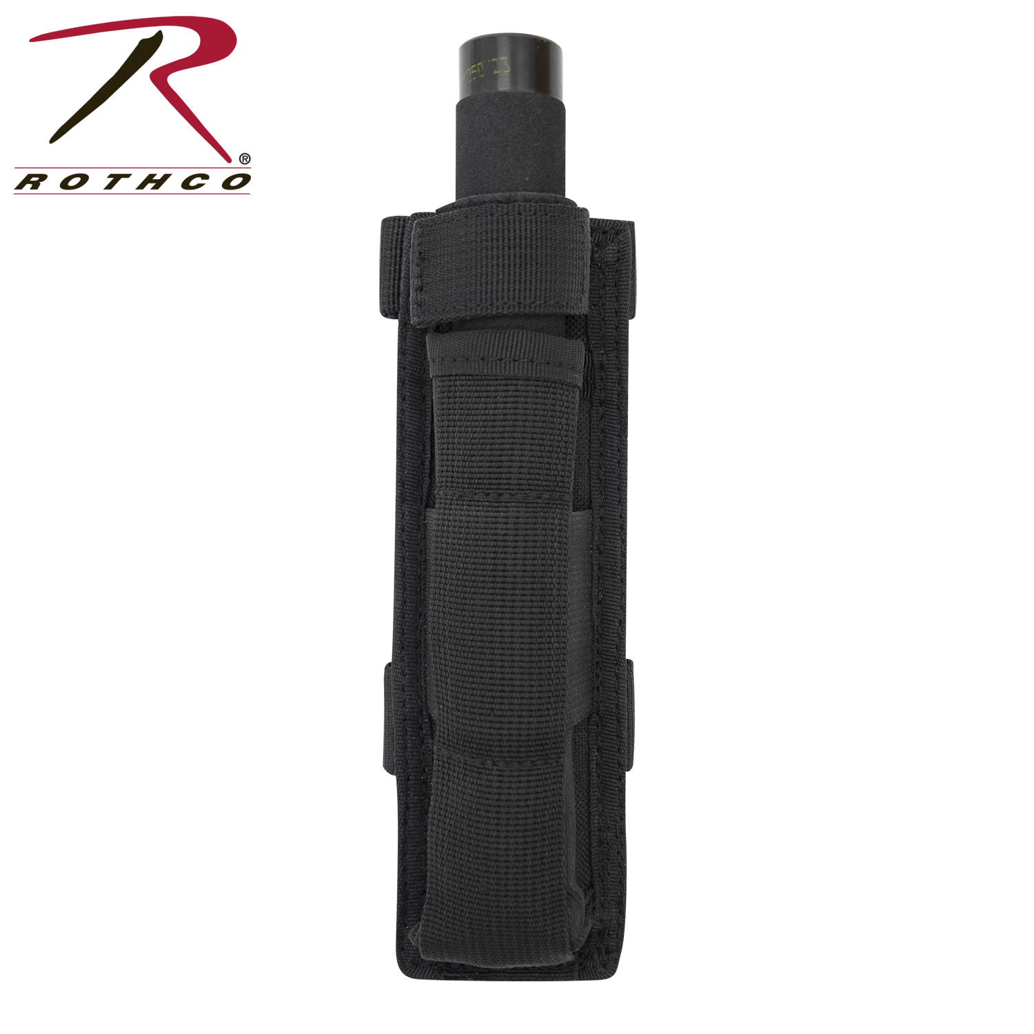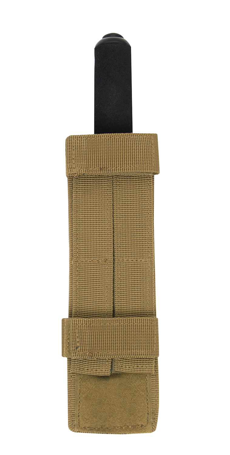 Rothco’s MOLLE Baton Holder is designed for law enforcement and public safety professionals on-the-job. This convenient accessory is optimized for 21 inch batons, but can also accommodate 26 and 31 inch batons. The baton pouch features an elastic band in the center and a hook and loop web strap at the top to secure your baton reliably. Two 5 inch vertical and two smaller horizontal hook and loop MOLLE straps on the back enable you to attach the baton holder to MOLLE belts, tactical vests, and assault packs. MOLLE attachment measures 7.5 inches X 2.25 inches.