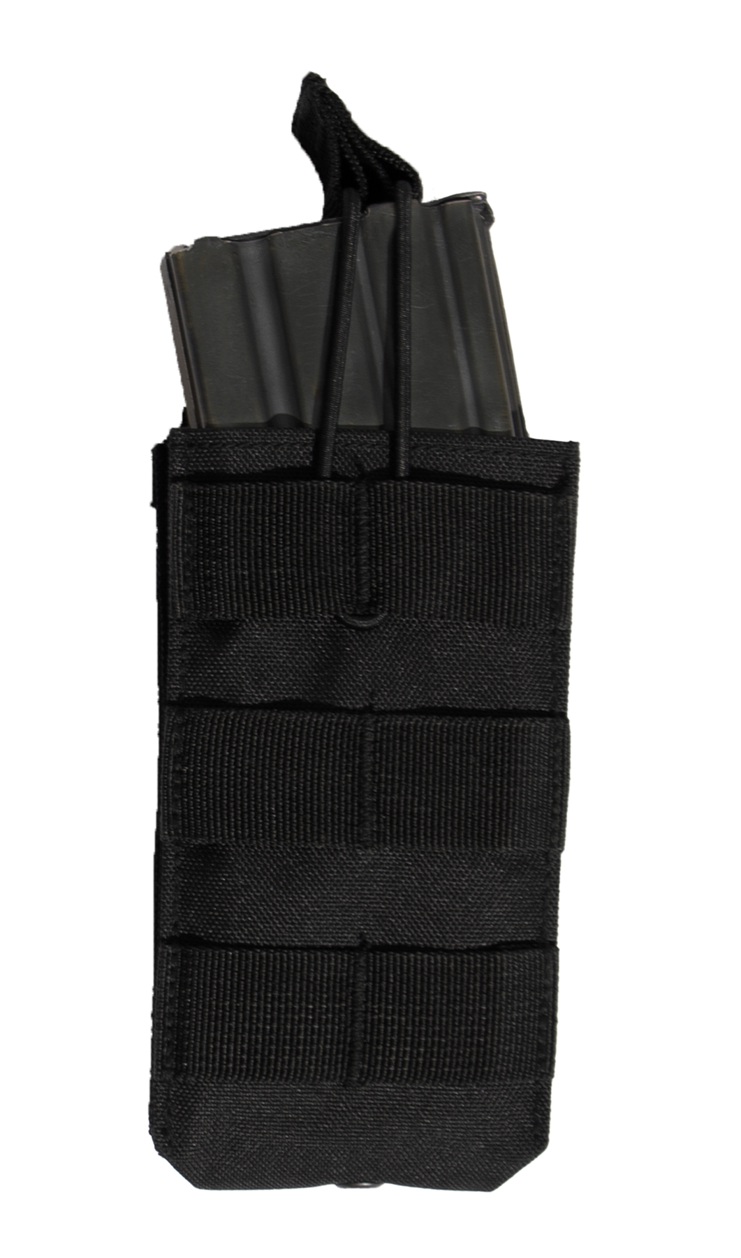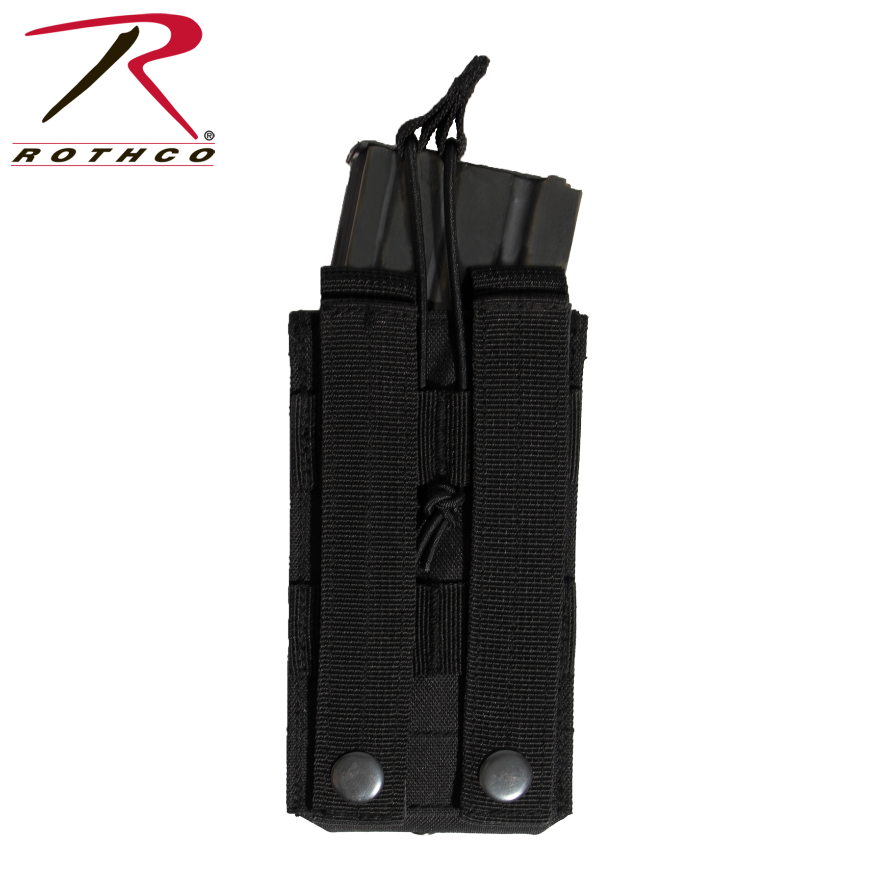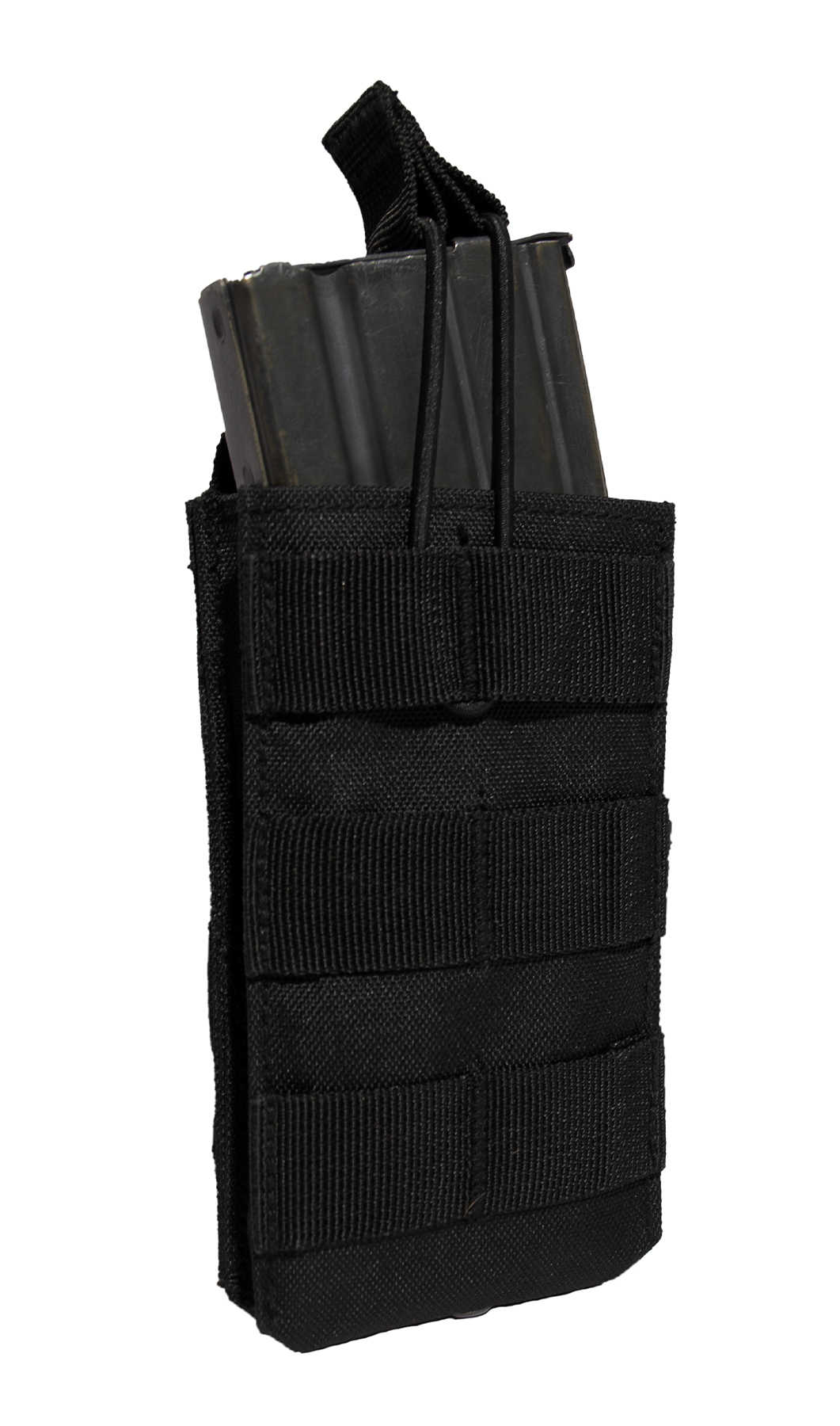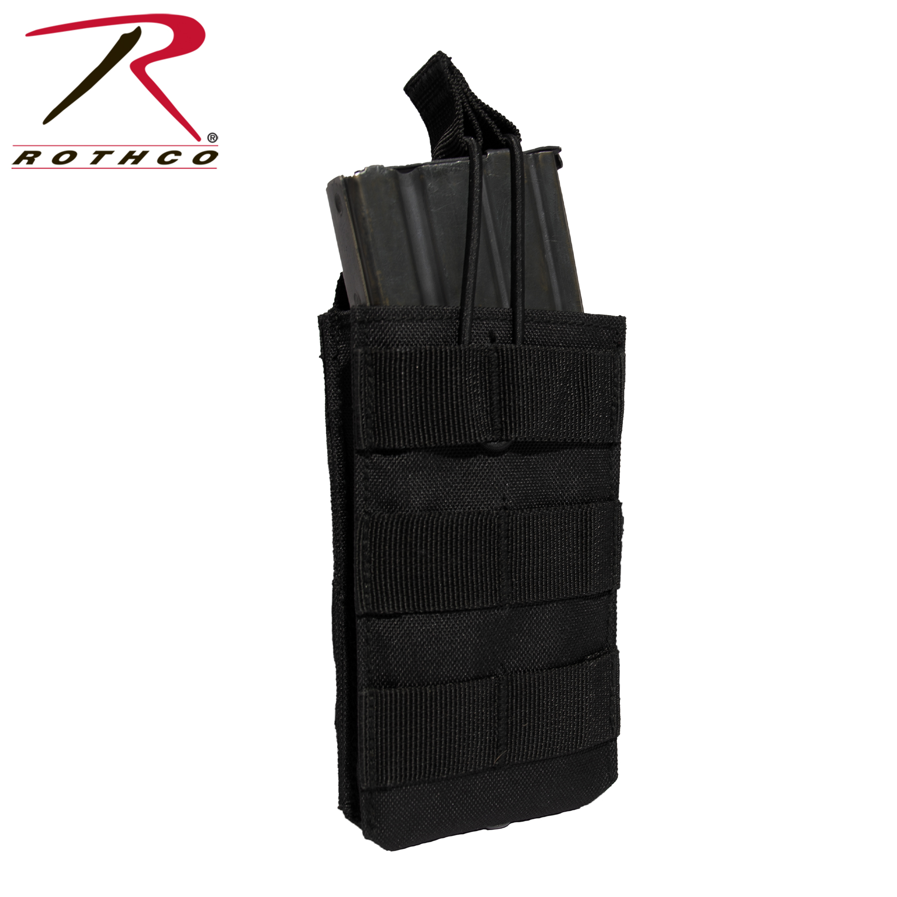 Rothco’s MOLLE Open Top Single Mag Pouch fits most standard sized rifle magazines and features two MOLLE clips on the back for mounting on tactical vests. The tactical magazine pouch measures 3.75 inches X 5.5 inches X 1.25 inches. Three MOLLE loops on the front of the plate carrier mag pouch enable additional attachments. The open top design and elastic pull tabs on the AK mag pouch enable rapid access to your magazine. The tactical pouch is made with durable materials for years of use in the field.