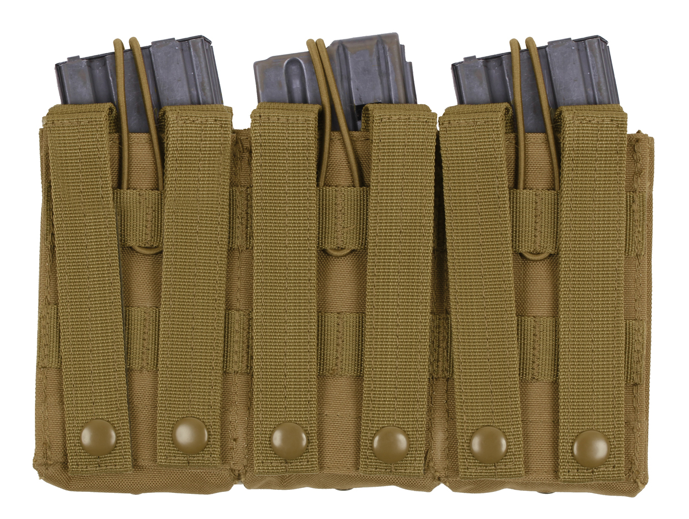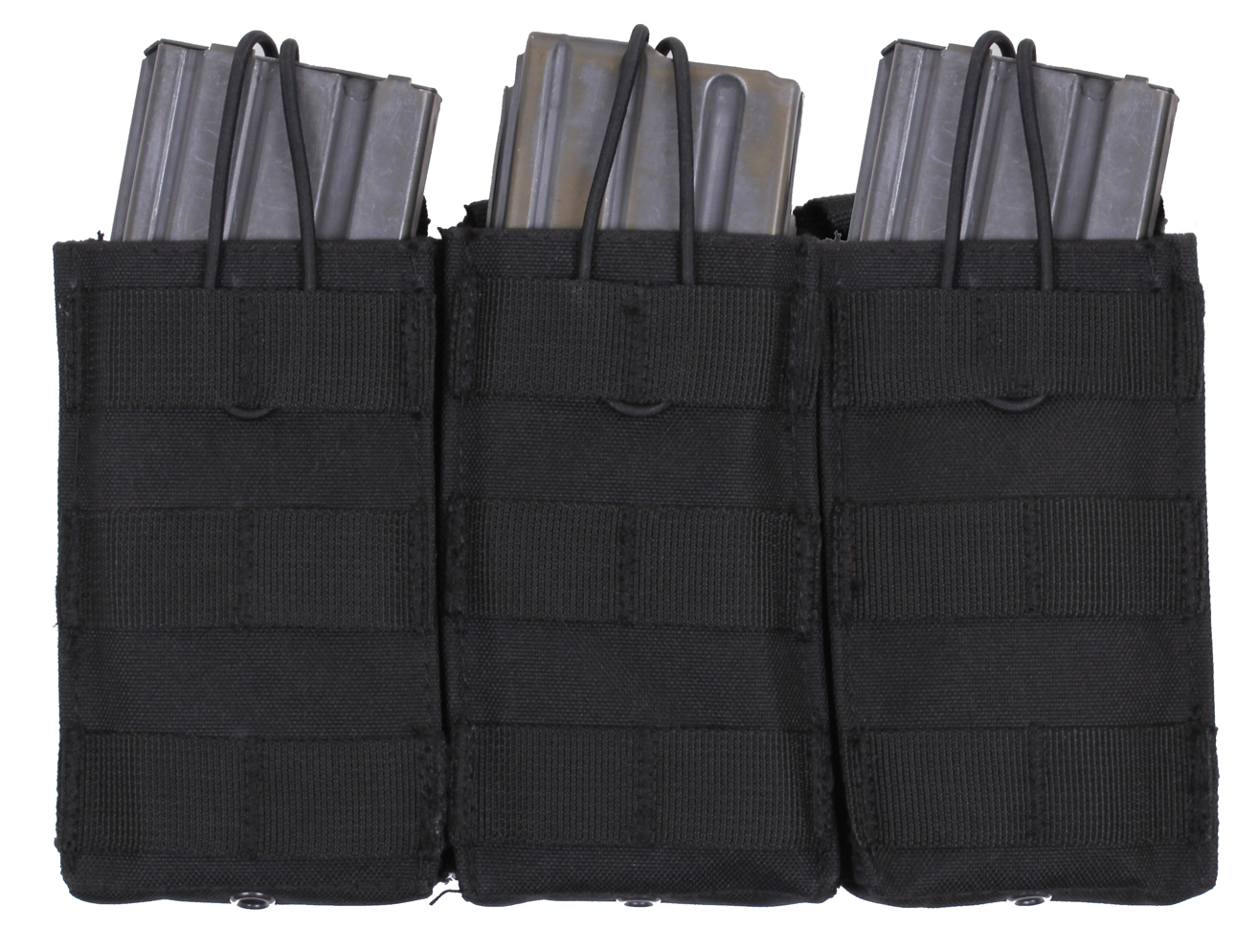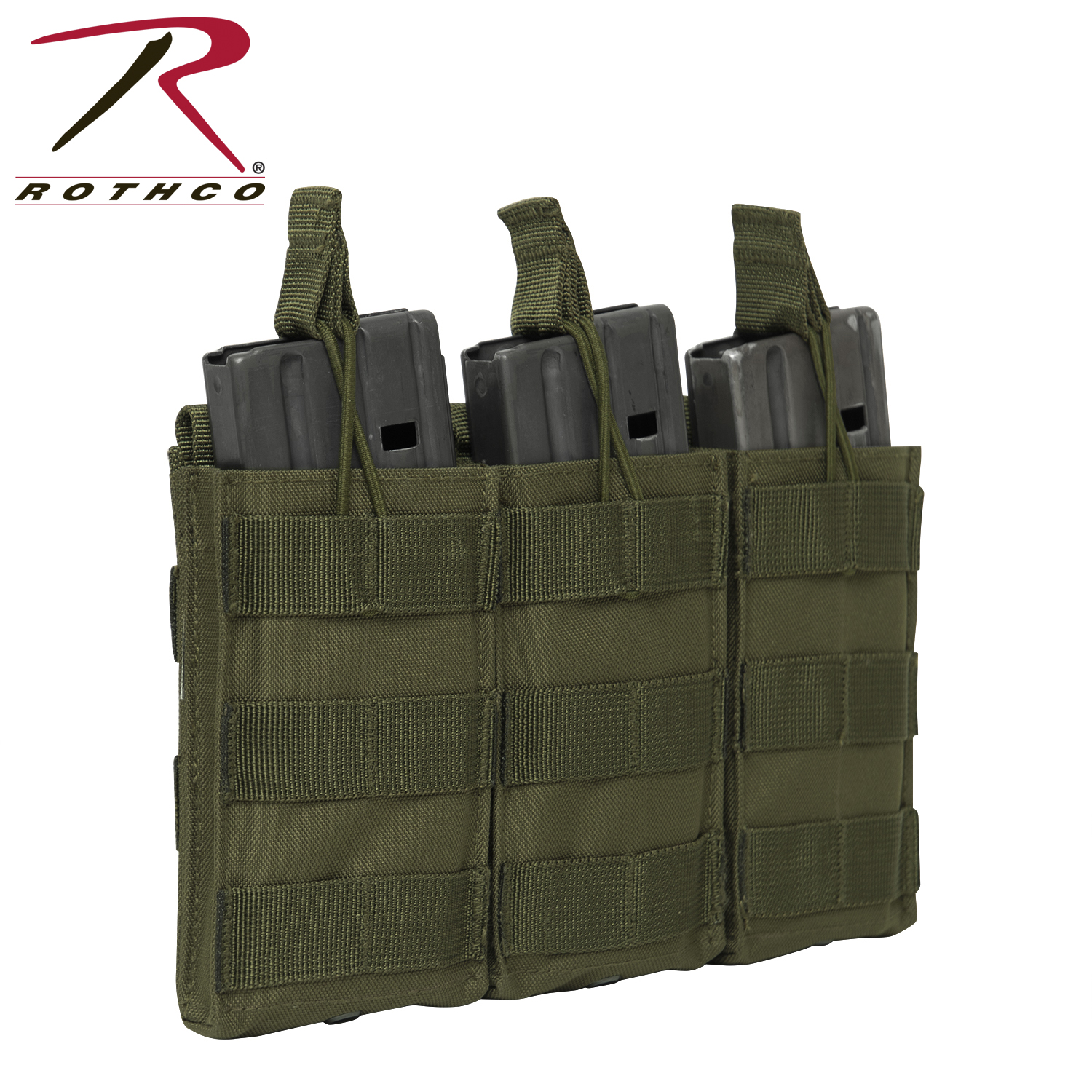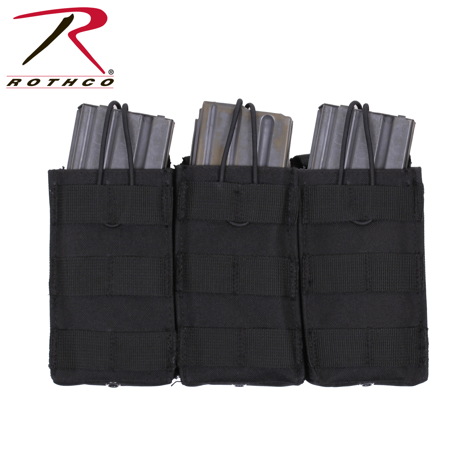 Elevate your tactical gear with Rothco’s MOLLE Open Top Triple Mag Pouch, the ultimate solution for carrying extra rifle mags. Crafted for versatility and durability, this pouch seamlessly integrates with your MOLLE-compatible plate carrier vest, tactical pack, or any gear featuring a MOLLE panel. Designed to accommodate 3 rifle mags, including AK-47 and M-16 magazines, it ensures you have quick and convenient access to ammunition when you need it most. The open-top design with elastic cord closures enables rapid reloading during critical moments. Constructed from rugged 600 Denier polyester, this pouch withstands the rigors of outdoor environments and tactical operations, ensuring long-lasting performance. Its compact dimensions, measuring 9 ¼ inches X 5 ½ inches, provide high-capacity storage without adding unnecessary bulk. Additionally, grommet drainage holes prevent moisture buildup, enhancing durability in adverse conditions. Whether you're on duty or engaged in recreational activities like airsoft or paintball, this triple mag pouch is an essential addition to your loadout. Versatile and dependable, it offers a secure and accessible solution for carrying your essential rifle magazines.