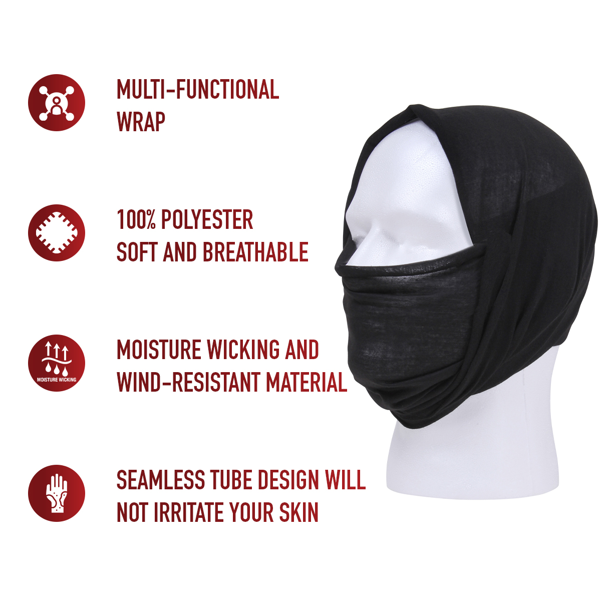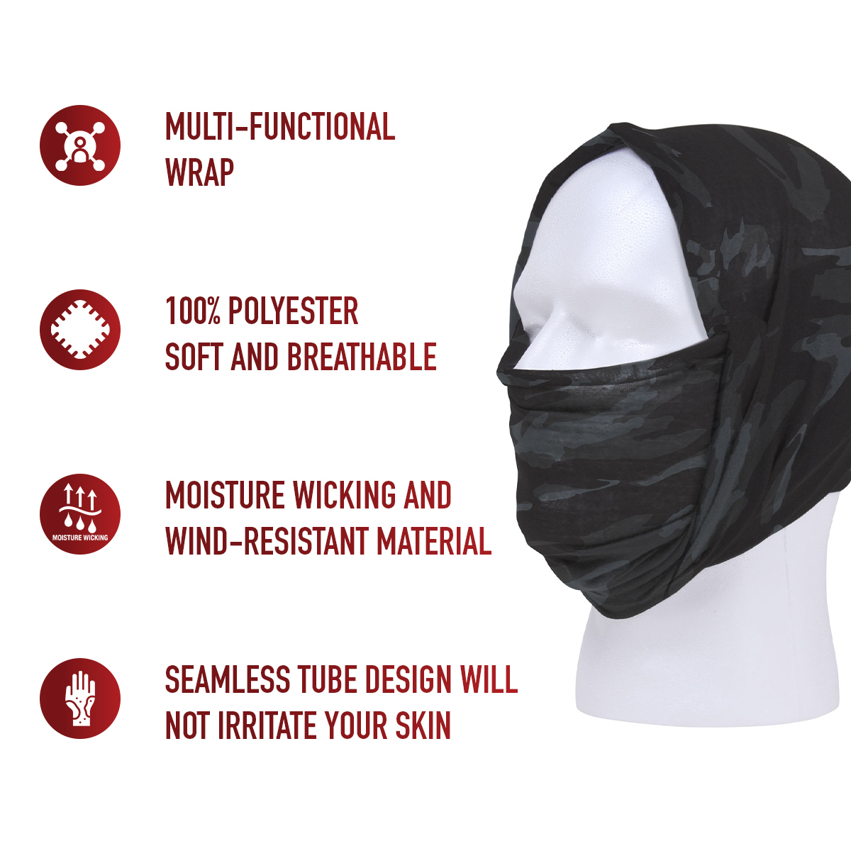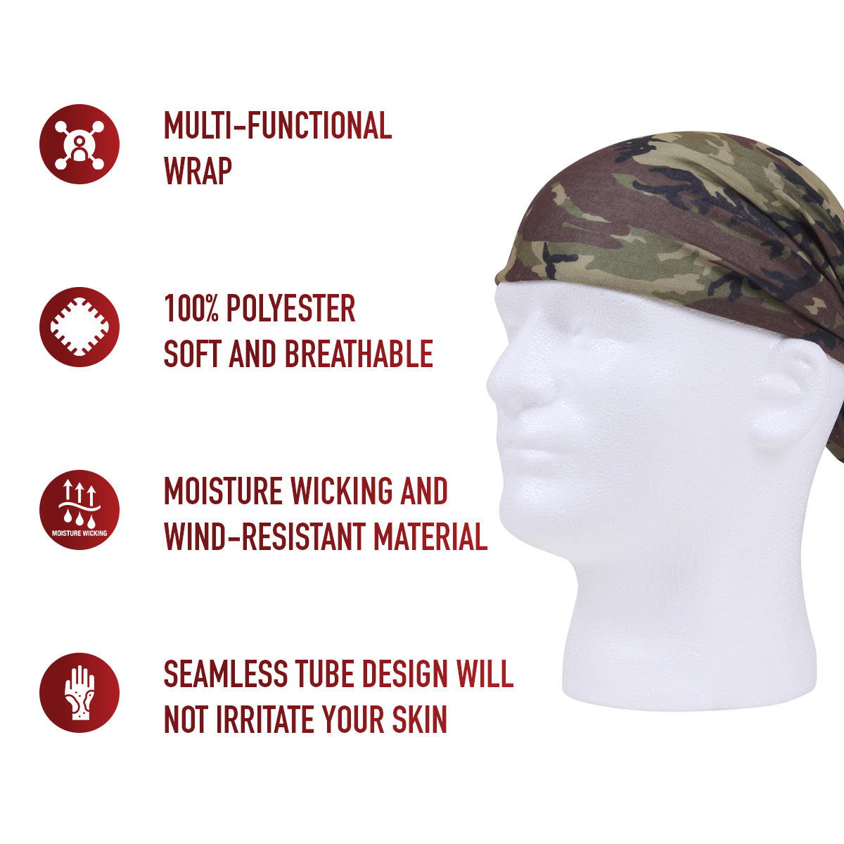 Discover the endless possibilities of Rothco’s Multi-Use Tactical Wrap! Wear it as a bandana, neck gaiter, balaclava, scarf, and more. The soft and breathable covering ensures all-day comfort with moisture-wicking and wind-resistant properties. The seamless tube design avoids skin irritation, and the fabric stretches to fit most head sizes. Compact and lightweight, this face covering is perfect for hiking, fishing, gear, and more. Stay cool, dry, and protected with Rothco’s essential neck gaiter.