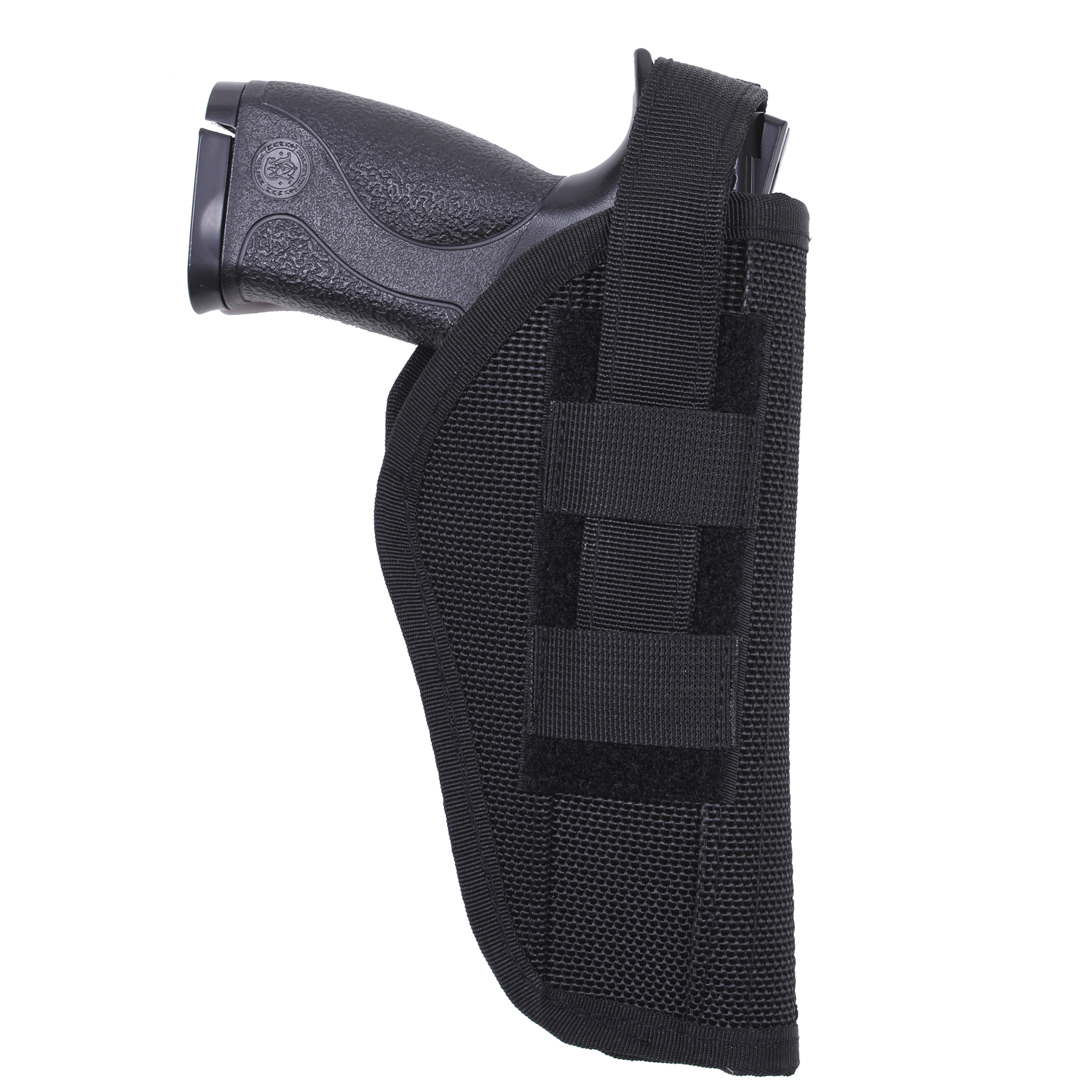 Rothco's Police Holster is designed for 4” and 5” autos, including Beretta 92, and features a hook & loop adjustable thumbsnap for secure, easy access. The leatherette lining protects your firearm, making this holster a durable and professional choice for law enforcement and tactical use.
