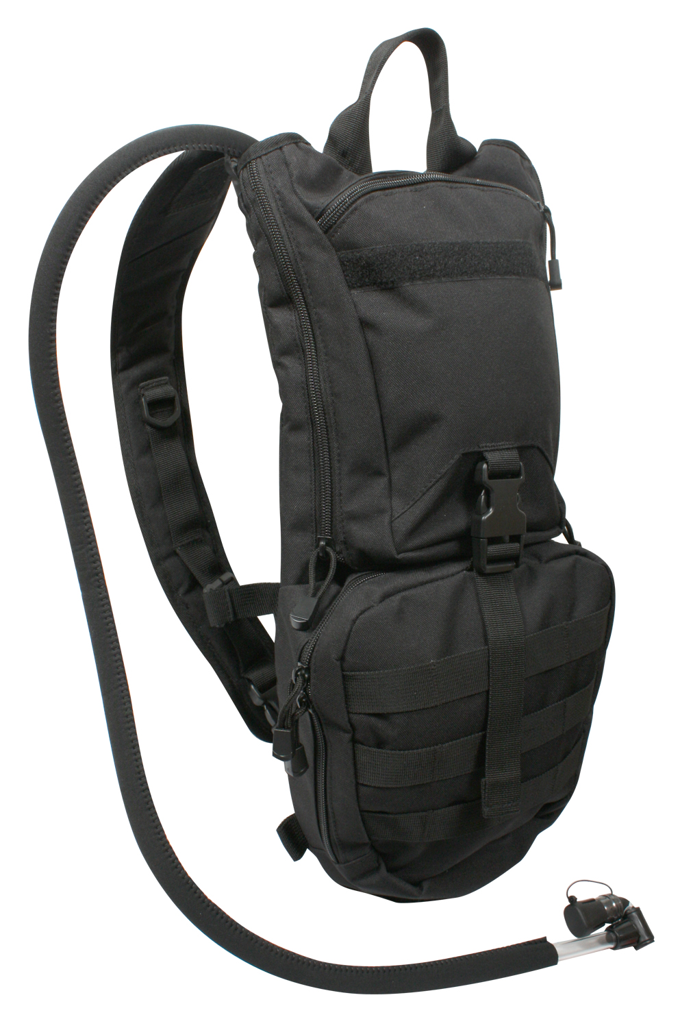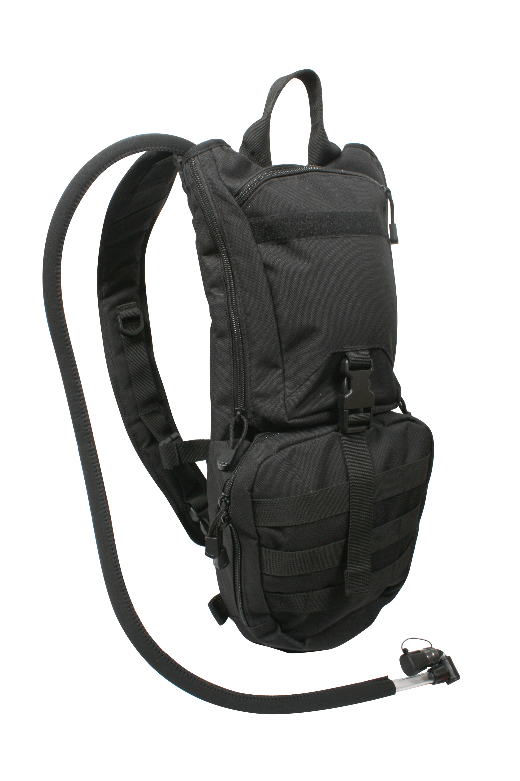Stay prepared and well equipped with Rothco’s Rapid Trek Hydration Pack. This hydration pack offers essential features for outdoor enthusiasts and active-duty personnel. With a 3-liter bladder and MOLLE compatibility, stay hydrated while on-the-go. The neoprene-covered hose includes a bite valve with an on-off switch for easy drinking, while the quick-release shoulder straps and sternum strap provide a secure fit. The outdoor pack features a top carry handle for convenience and a zipper-close bladder compartment for easy access. The front storage compartment with zipper closure offers additional space for essentials. Additionally, the 2 bottom d-rings offer extra gear attachment while the loop field allows you to attach name tape or badge for added versatility.
