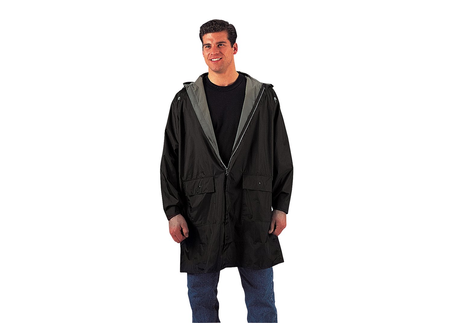 Get ready to tackle the elements with Rothco's Reversible 3/4 Length Rain Parka. The waterproof parka offers versatile protection in windy and stormy conditions. With the reversible design, you get 2 distinct colors in 1 jacket, allowing you to adapt to different weather conditions and outfits. The attached hood provides extra protection, while 2 large flap pockets offer secure storage for your EDC essentials. Air vents under the arms enhance ventilation, preventing overheating and moisture buildup for added comfort during outdoor activities. Crafted from 70% PVC / 30% Rubber, this weather-resistant parka is durable and built to withstand the elements, ensuring reliable protection wherever you go.