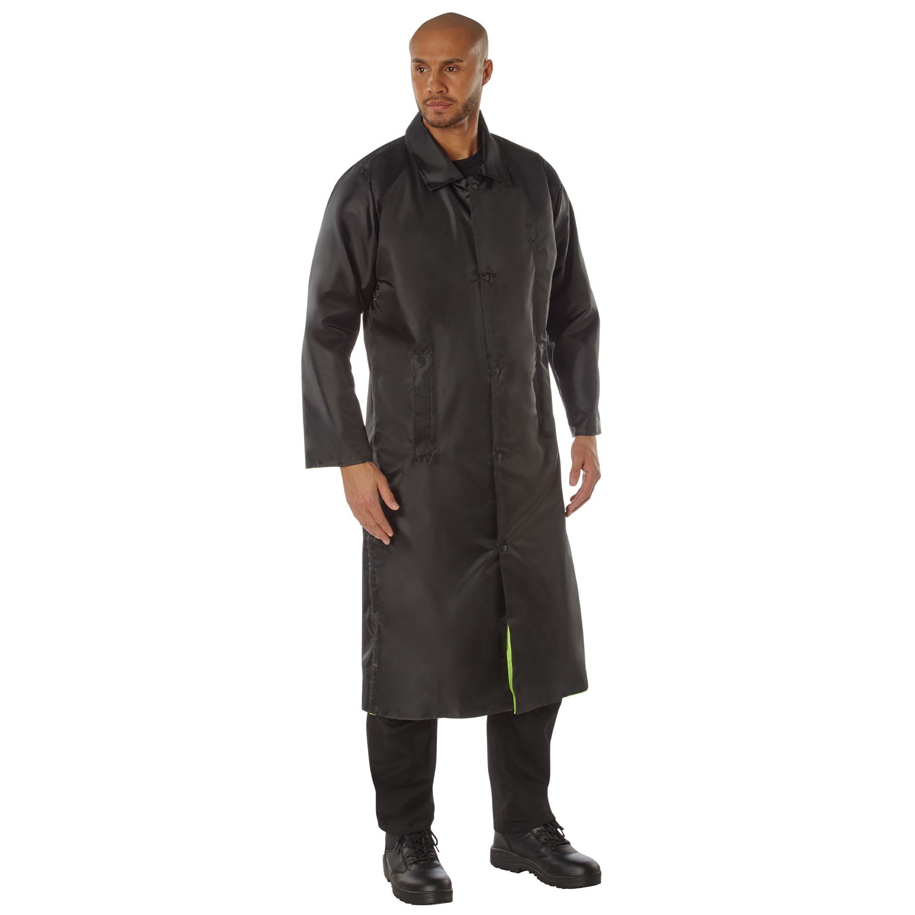Rothco's Reversible Reflective Rain Parka is designed to provide the ultimate rain protection and safety while out in the field. This rain jacket features 2 inch reflective striping around the chest, biceps, harness, lower waist, cuffs, and over the shoulders, ensuring high visibility in low-light conditions. The reversible style with storm/snap front offers full protection against the elements, while the pass-through pocket for audio devices, front zipper, and 5-button design adds convenience and durability. Additionally, the uniform raincoat includes a badge tab, making it an ideal choice for public safety and first responders. Whether you're working in wet weather or need high visibility for safety, this rain parka is built to meet your needs.