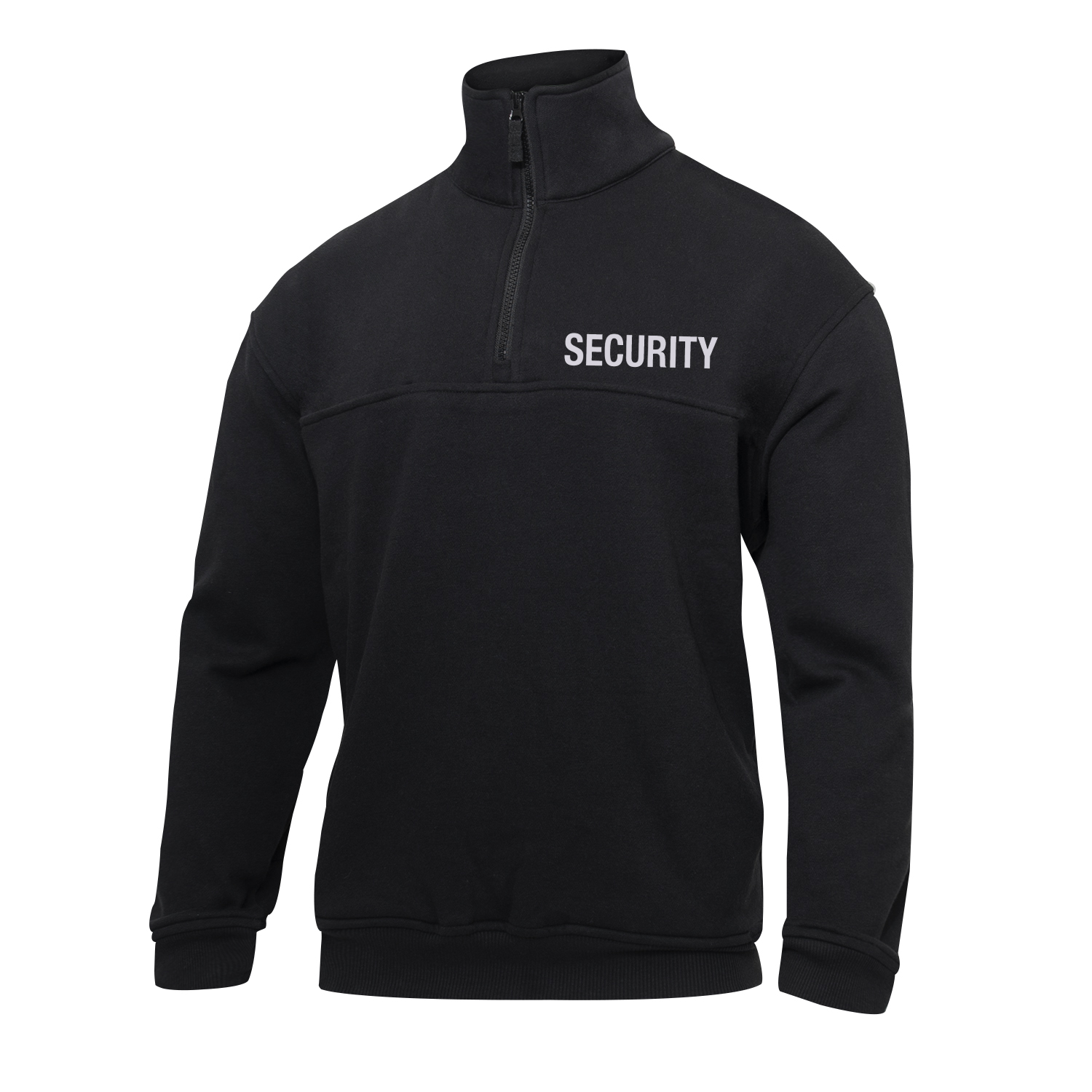 Rothco’s Security 1/4 Zip Job Shirt is the ultimate pullover for security and public safety professionals. Made with a warm fleece lining and a durable design, this uniform shirt combines practicality with comfort. The front and back prominently display the word “Security” for clear identification. Reinforced elbows and forearms ensure long-lasting wear, while 2 convenient pen slits, a hook-and-loop-secured chest pocket, and dual handwarmer pockets offer ample storage. The mic clips on each shoulder keep communication devices accessible, and the no-roll collar maintains a polished appearance. Perfect for staying organized, warm, and professional during long shifts.