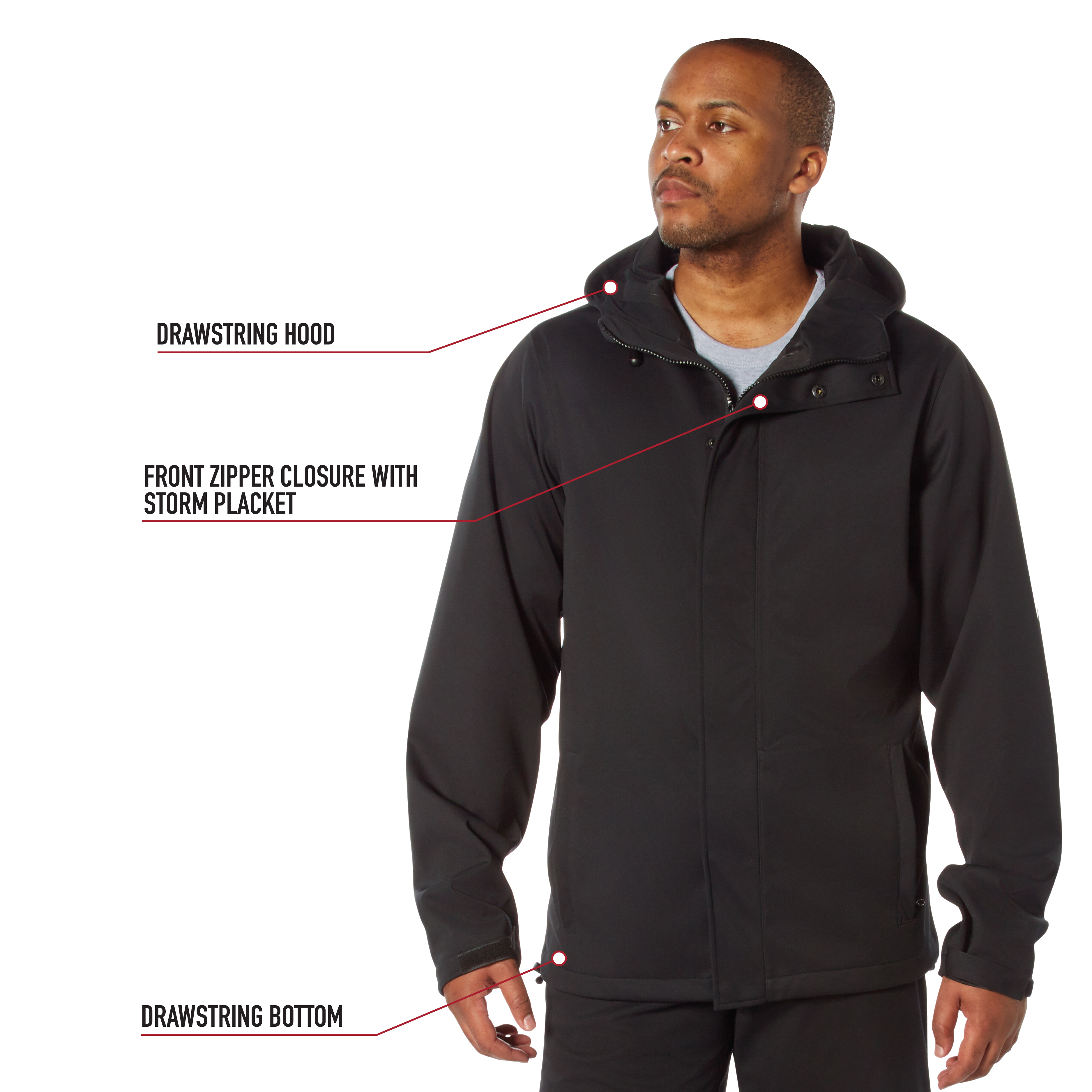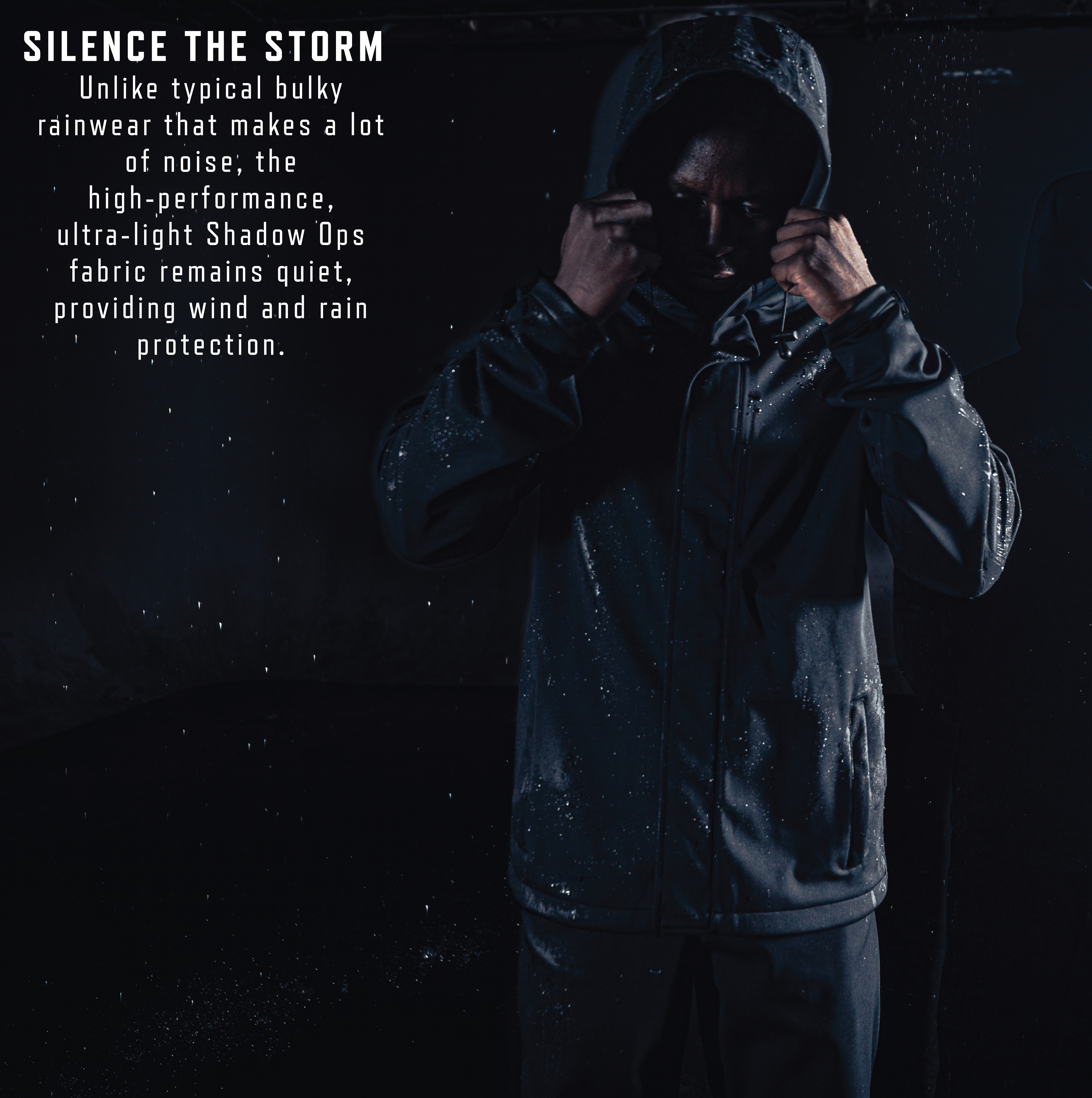 Silence the storm with our Shadow Ops Waterproof Rain Jacket. Unlike the typical bulky rain coat that makes a lot of noise as you move, these high-performance, ultra-light rain jackets remain quiet, provide unparalleled wind and rain protection, and offer extreme comfort. The outdoor jacket has a waterproof rating of 5,000mm that easily endures harsh outdoor weather conditions. Move with Silent Precision: Built to keep you comfortable and on-the move, our Active Flex stretch technology is ready to tackle any challenge, offering flexibility and ease of movement. These raincoats feature a sleek and silent design that utilizes our Shadow Ops fabric that is engineered with waterproof properties and a fabric that is quiet while you move. Storage Pockets: The outdoor rain jacket comes equipped with 2 zippered hand pockets and 2 interior drop pockets. Utility at the Forefront: These raincoats feature a drawstring hood, full-length zipper with a snap-button storm placket, zipper storm guard, adjustable hook & loop cuffs, and a drawstring bottom for keeping wind and rain out. Ready for Action: The lightweight rain jacket is great for field operations, camping, hiking, outdoor work, everyday wear, and more. From the trails to the streets, the rugged rain shell ensures you remain dry and comfortable.