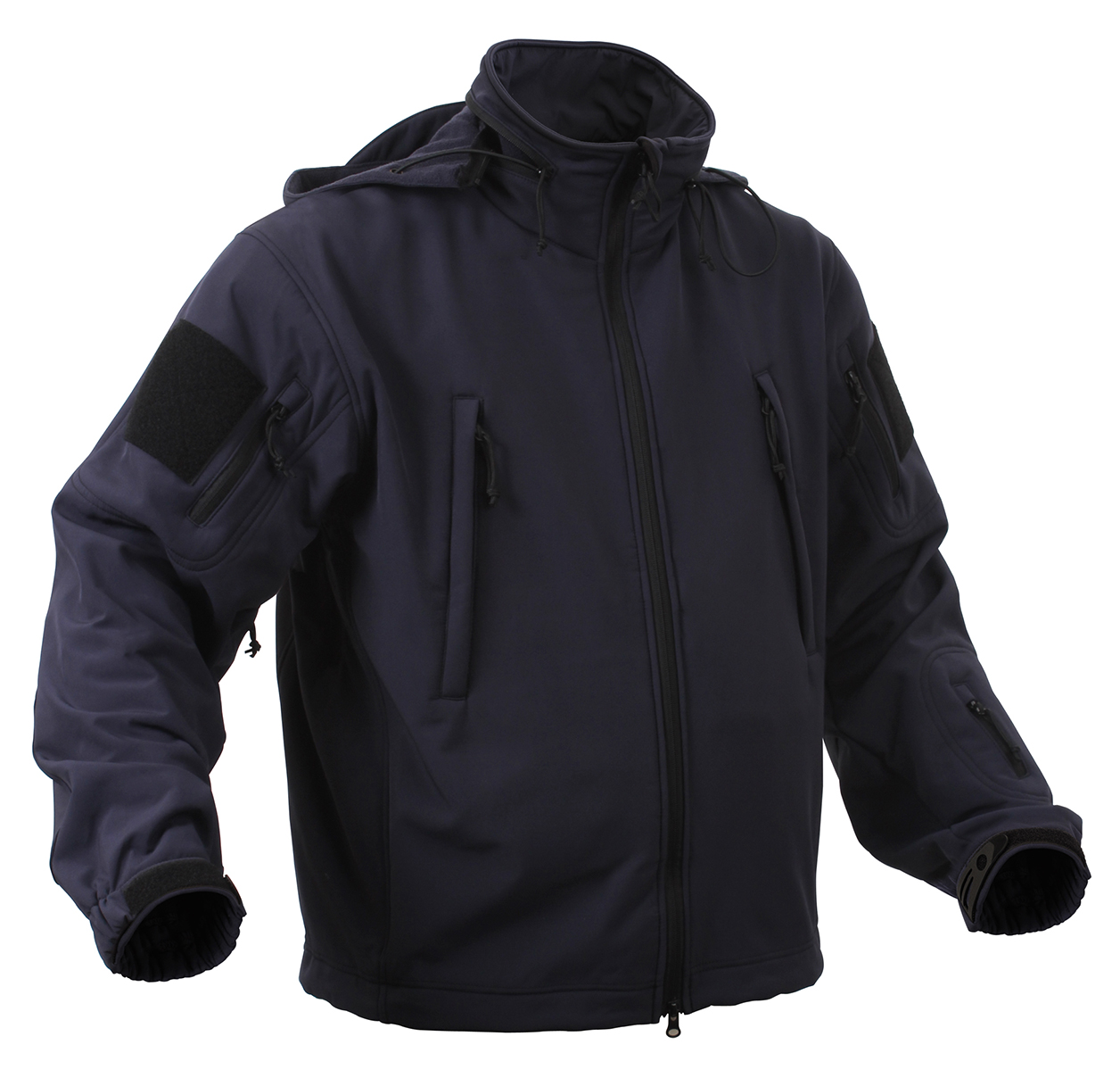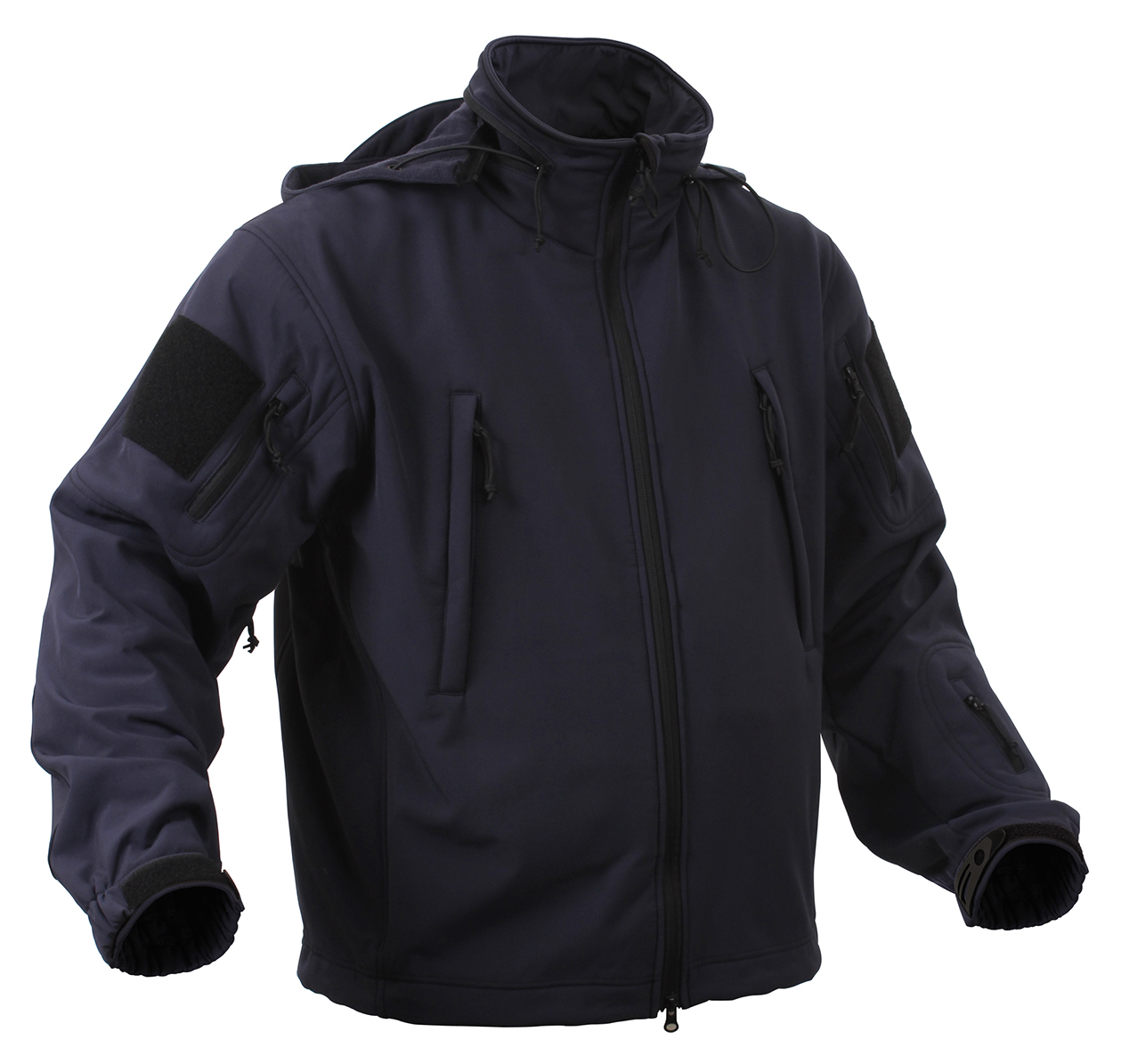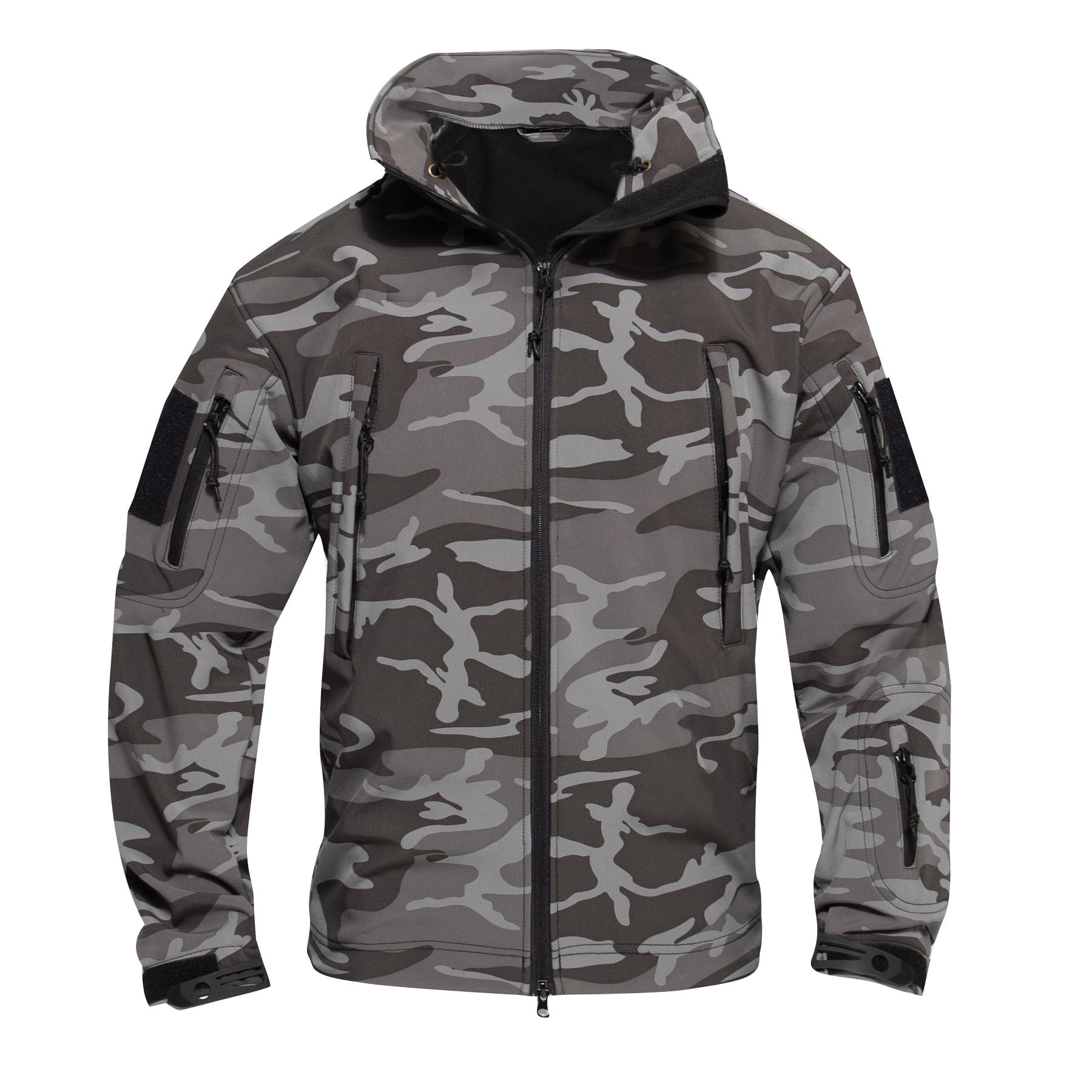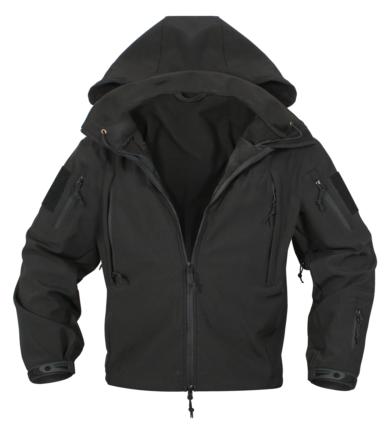 Defend yourself against the toughest weather with the Special Ops Soft Shell Jacket. As part of Rothco’s rugged Soft Shell outerwear series, the tactical military jacket features our Soft Shell waterproof 3-layer fabric system that deflects wind, retains heat, and releases moisture. The high-performance fabric helps protect and keep you comfortable while braving the elements. This versatile coat is great for military personnel, tactical professionals, and outdoor enthusiasts. Comfortable Fleece Lining: The insulated jacket features a soft fleece lining that keeps you warm, ideal for cold weather tactical operations and outdoor adventures. The fleece-lined collar features a removable stowaway hood and provides additional protection. High-Capacity Storage: The military soft shell jacket comes equipped with 8 tactical zipper pockets: 2 shoulder pockets, 2 chest pockets, 2 internal pockets, 1 back pocket, and 1 arm pocket for storing tactical gear and outdoor essentials. Utility at the Forefront: The tactical soft shell jacket features underarm ventilation zippers that ensure optimal comfort by allowing air circulation. The drawstring waist and adjustable elastic wrist cuffs provide a perfect fit, while the two-way zipper offers quick and easy access. In addition, the 2 shoulder loop fields allow you to easily wear patches. Action Ready: From the field to the forest, the military-styled soft shell coat offers exceptional utility and warmth that is great for tactical missions, camping, hiking, hunting, fishing, and casual everyday wear.