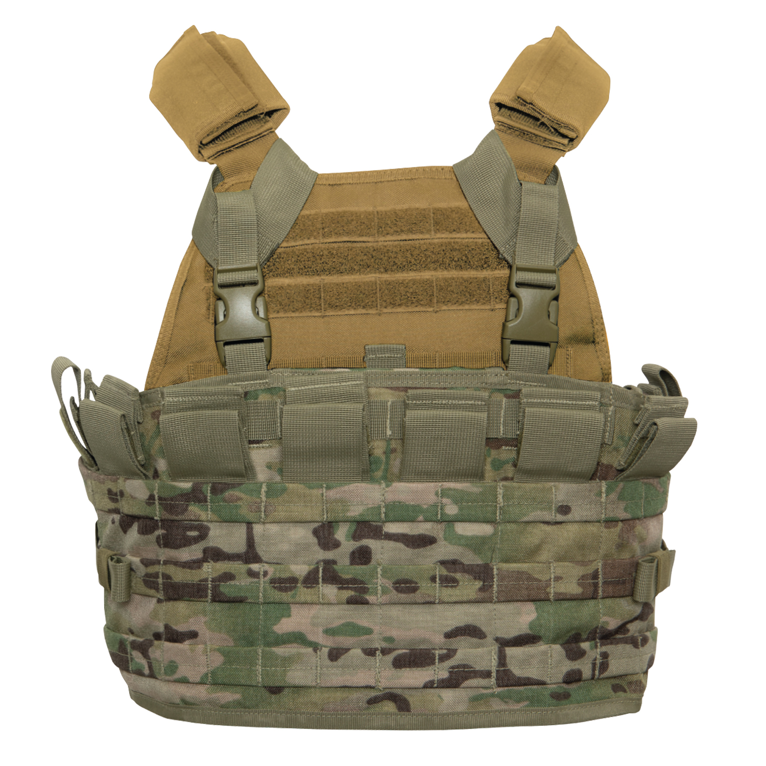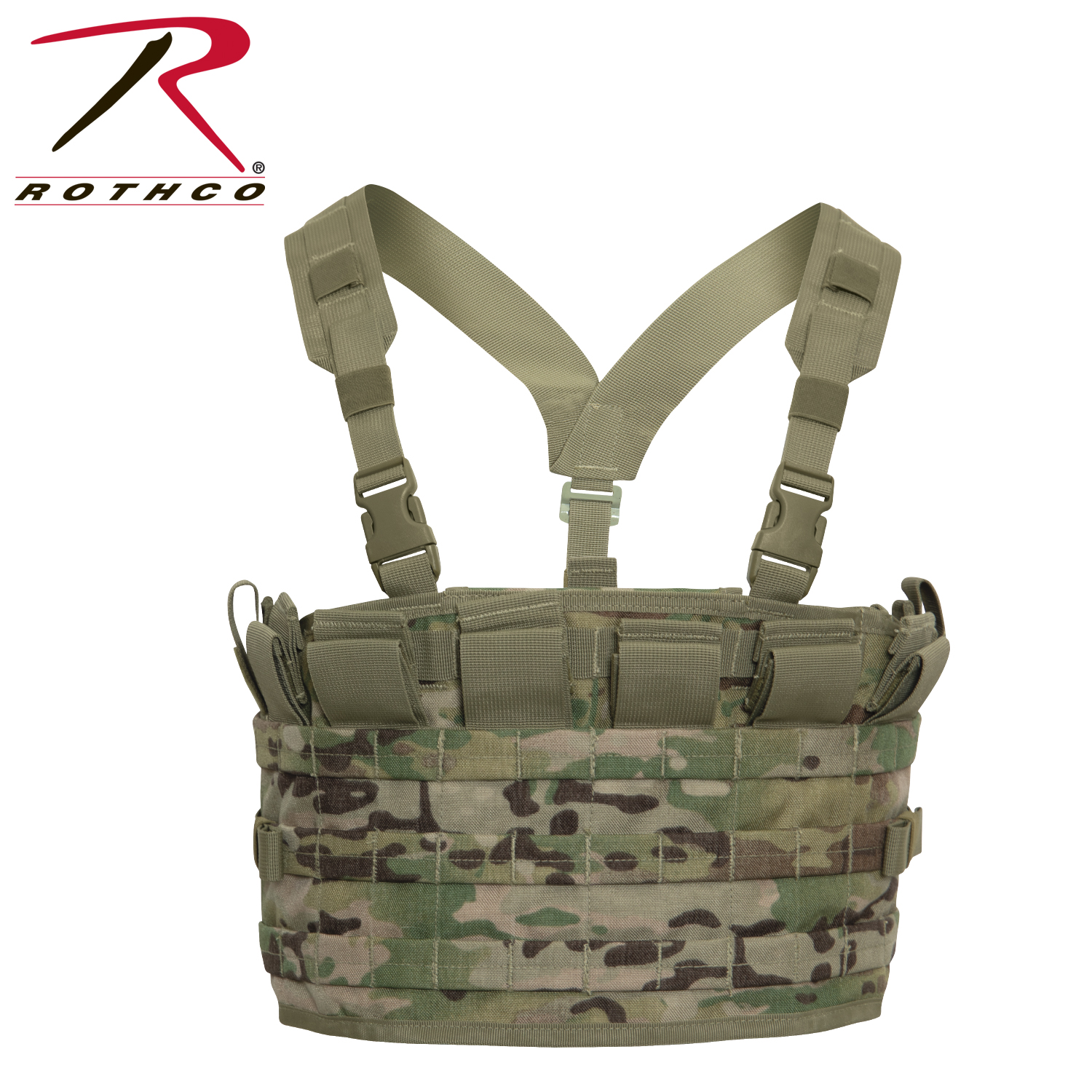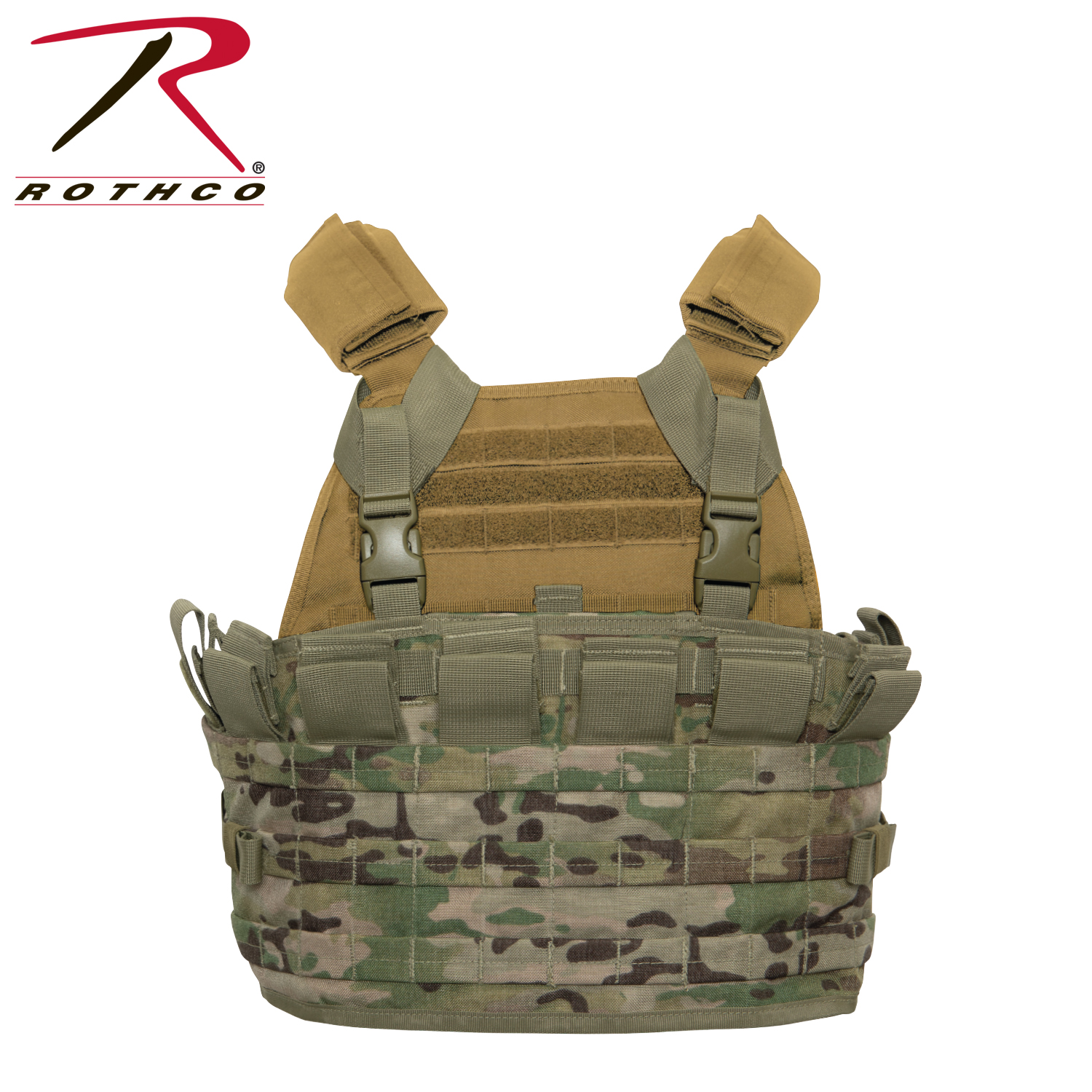 Gear uo with Rothco's Tactical Assault Panel (TAP), a versatile addition to your tactical setup. This panel offers unparalleled flexibility with multiple MOLLE straps and pockets designed to accommodate various tactical accessories such as gun magazines, knives, and more. Whether you're on duty or engaged in outdoor activities, the TAP ensures you have quick access to your essential gear. The TAP features an adjustable and removable harness, allowing you to wear it as a standalone system tailored to your specific needs. Its six magazine pockets provide secure storage for ammunition, each equipped with strong hook and loop closures for added security. Additionally, two outer hook and loop strap pockets on either end of the magazine pockets offer convenient storage options for GPS devices, radios, or additional magazines. For enhanced organization, the back panel of the TAP is equipped with three large mesh pockets. The left and center pockets feature hook and loop closures, while the right pocket is zippered, providing ample space for storing maps, compasses, and other accessories. Designed for compatibility with plate carrier systems and tactical vests, the TAP comes with shoulder plate carrier adapters and split bar side release buckles. This allows for easy attachment to your existing gear setup, ensuring seamless integration into your tactical ensemble. Constructed from rugged combat-ready material, the TAP is built to withstand the rigors of demanding environments. Its middle panel pocket measures 11.5 inches x 8.75 inches, providing ample space for storing essential items. The front panel features three rows of MOLLE straps for mounting additional attachments, while the included shoulder adapters offer added versatility. Whether you're a active-duty professional, law enforcement officer, or outdoor enthusiast, the Rothco Tactical Assault Panel offers unmatched versatility and functionality for all your tactical needs.
