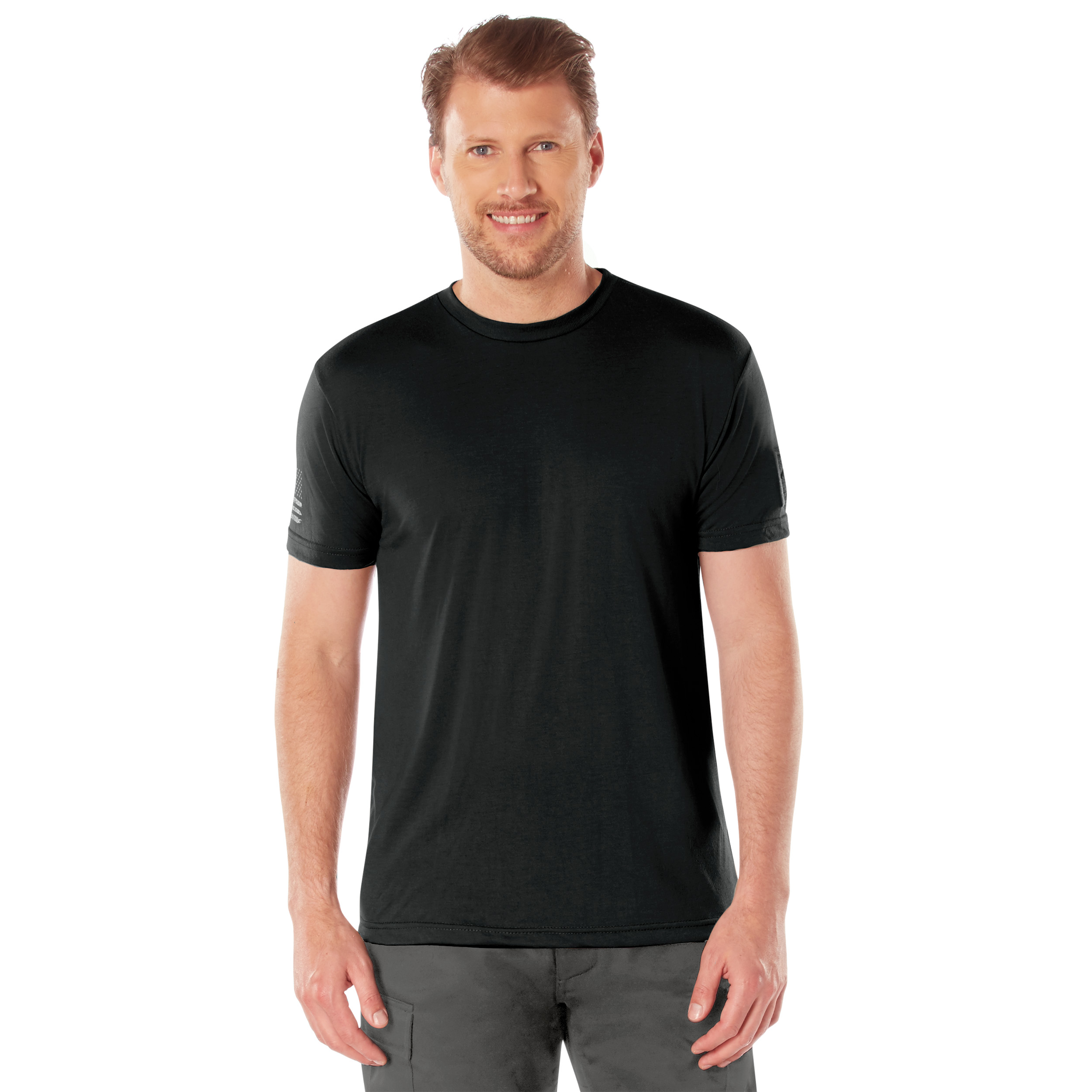 Rothco's Tactical Athletic Fit T-Shirt is expertly designed to offer both durability and comfort during rigorous activities. Engineered with an athletic fit, it boasts slightly smaller chest, armholes, and sleeve openings for a sleek appearance that complements your physique. The shirt's moisture-wicking ring-spun polyester fabric efficiently absorbs perspiration, ensuring you stay cool and dry even during intense workouts or outdoor adventures. Featuring a loop field on the left sleeve, measuring 3.5 inch x 2.36 inch, this tee offers a convenient space for attaching morale patches or branch tape, allowing you to showcase your personal style or affiliations. On the right sleeve, a distinctive reverse distressed US flag print adds a patriotic touch to the shirt's design. Additionally, the tagless label and inset collar enhance comfort, preventing irritation and ensuring a comfortable wear experience throughout the day. Ideal for athletes, outdoor enthusiasts, and anyone seeking a high-performance t-shirt with a stylish edge.