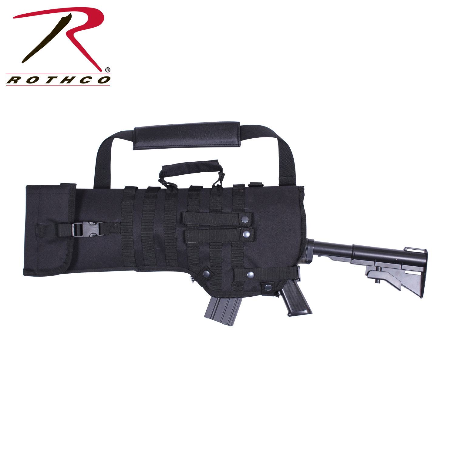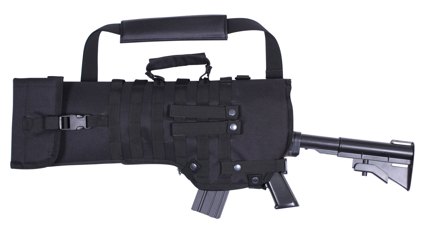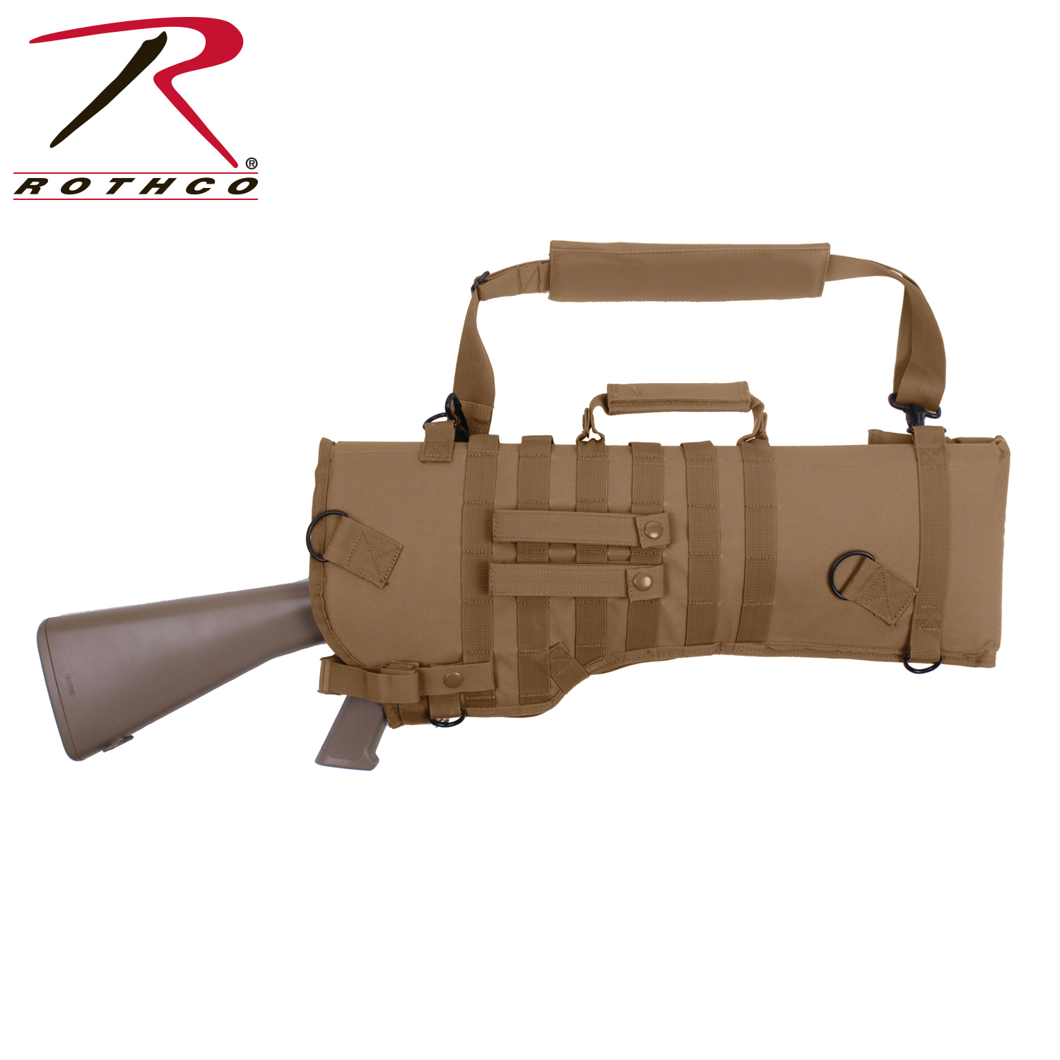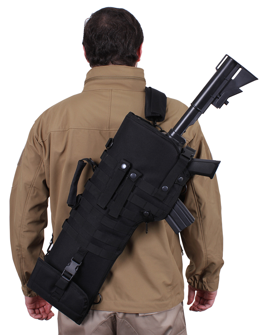 Rothco’s Tactical MOLLE Rifle Scabbard ensures effortless transportation of long rifles. This padded rifle case provides additional protection for your firearm, including the scope. Featuring a removable snap carry handle and detachable adjustable shoulder strap, it offers convenient carrying options. With 6 rows of MOLLE webbing and 2 D-rings, it enables mounting of tactical accessories. The quick-release web strap provides easy access to your rifle. Adjustable to fit various barrel lengths, the scabbard features an extended zipper and 2 snap closures. Ideal for storage and transportation, it has an opening measuring 10.5 inches and an overall length of 29.5 inches, along with a grommet drain hole for added convenience.