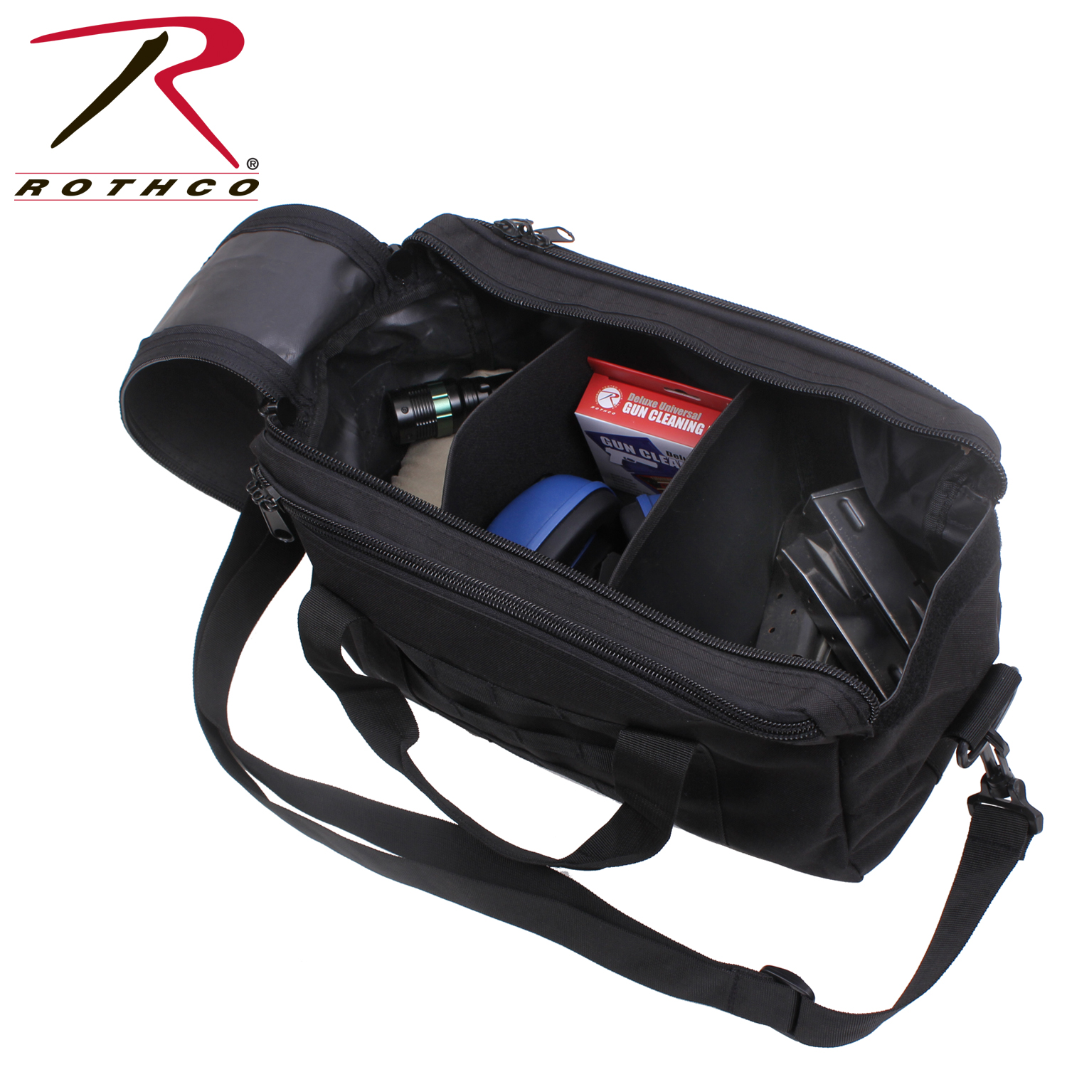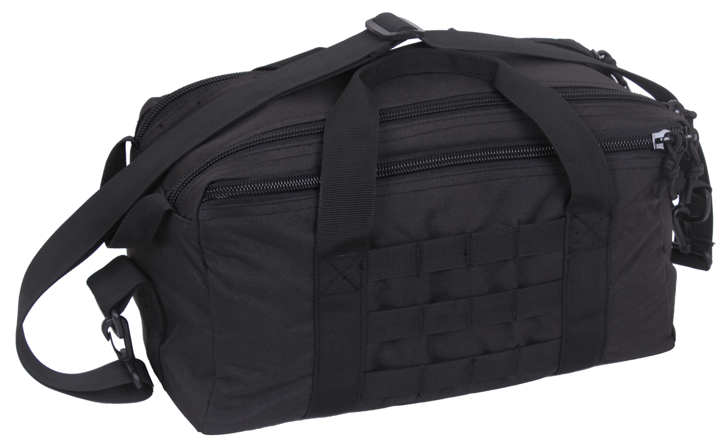Rothco’s Technician Pistol Range Bag is designed to provide practical storage and ease of transport for your firearm and essential gear. Measuring 14.5 inch x 7 inch x 7.75 inch, this versatile range bag features a top carry handle and adjustable shoulder strap, making it convenient to carry whether you're heading to the range or using it for everyday needs. The CCW bag comes with soft removable dividers, allowing you to customize the internal storage to fit your equipment. With a double zipper handle closure and MOLLE webbing on the side, the carry bag ensures secure storage and quick access to your gear. 2 outer top zipper compartments measuring 14.5 inch x 7 inch offer additional storage space for smaller accessories, while the removable "gun rugs" provide added protection for delicate items. Durable and functional, this range bag offers a blend of comfort, organization, and utility for both enthusiasts and professionals.