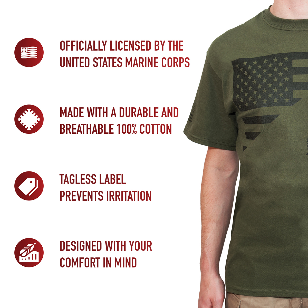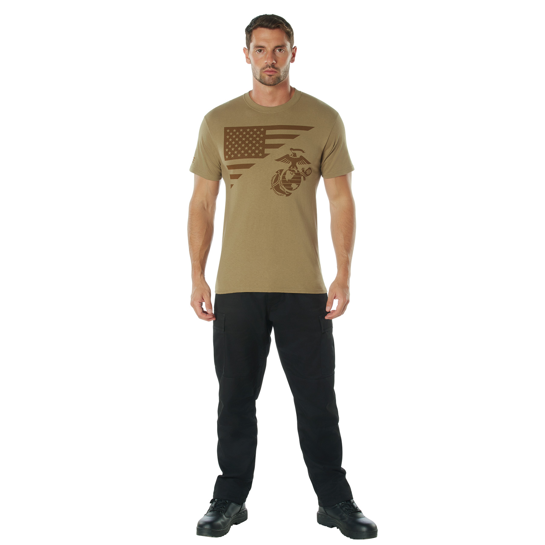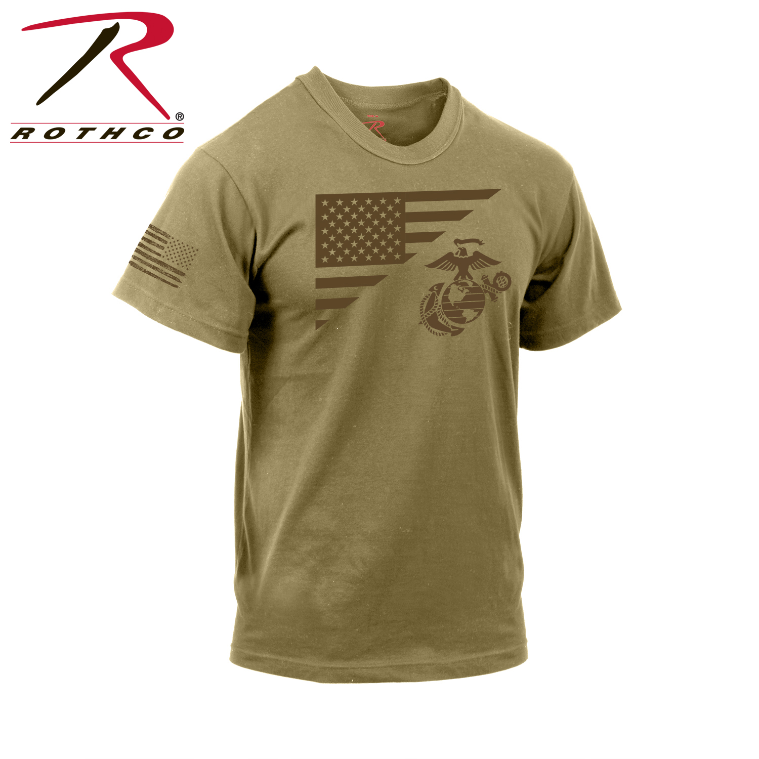 Embrace patriotic pride with Rothco’s US Flag / USMC Eagle, Globe, and Anchor T-Shirt. Crafted from durable and breathable 100% cotton, this tee showcases the historic USMC insignia alongside the American flag on the chest. Whether you're hitting the gym, running errands, or simply relaxing at home, this lightweight and comfortable shirt is perfect for exercise and casual wear. The iconic US flag is also featured on the right sleeve of the Marine Corps shirt, adding to its patriotic appeal. With a tagless label, you can enjoy irritation-free comfort all day long. Plus, this t-shirt is officially licensed by the United States Marine Corps, ensuring its authenticity. Show your support for the Marines while displaying your love for country with Rothco’s US Flag / USMC Eagle, Globe, and Anchor T-Shirt.