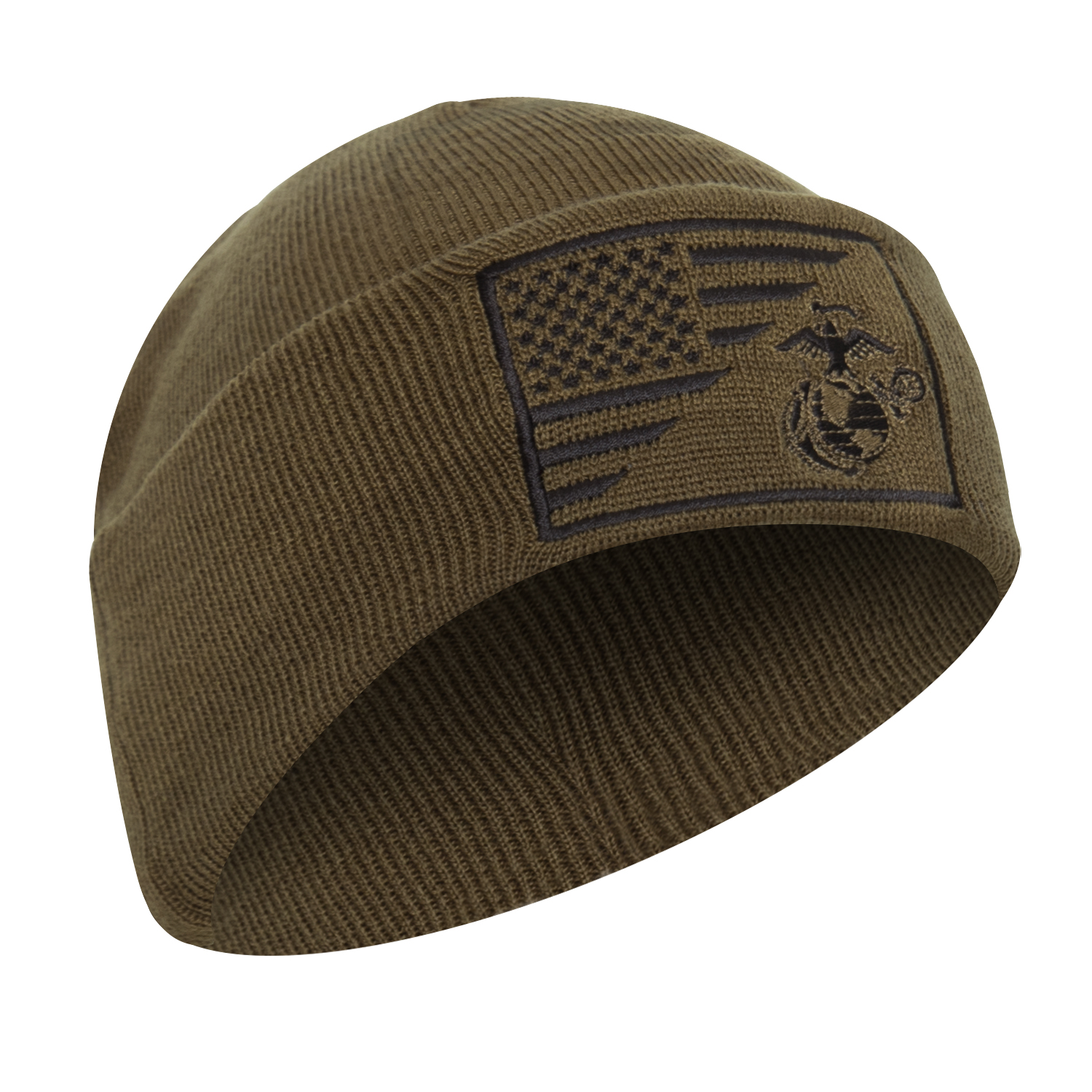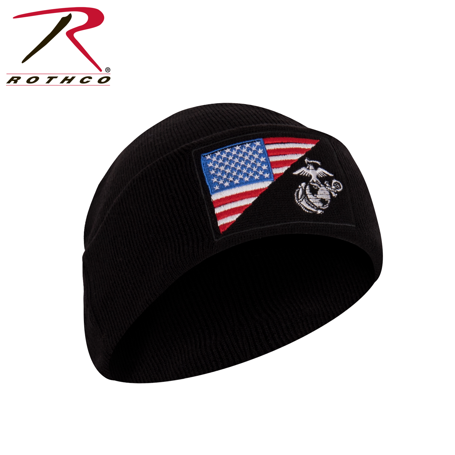 Stay warm and show your support for the US service members with Rothco’s Deluxe Knit USMC Eagle, Globe and Anchor Watch Cap with US Flag. This patriotic winter hat features a unique military design with a diagonally-split USMC Eagle, Globe and Anchor insignia paired with the American Flag, making it a perfect choice for those proud of their country. Crafted from lightweight yet durable finely knit fabric, this beanie hat retains its shape and color while providing powerful warmth in cold weather conditions. The double-layer construction offers reinforced protection from the elements, ensuring you stay cozy and comfortable during outdoor activities like shoveling snow or raking leaves. Versatile and practical, this beanie cap is suitable for various cold weather endeavors, making it an ideal accessory for your winter wardrobe. With its one-size-fits-most design, it offers a comfortable and snug fit for wearers of all sizes. Whether you're a US Marine Corps enthusiast, a patriot, or simply someone who appreciates quality winter gear, Rothco’s USMC Eagle, Globe and Anchor Watch Cap is a must-have addition to your collection. Show your allegiance to the US while staying warm and stylish during the chilly months. Keep your head in the game with Rothco’s collection of headwear and accessories. Designed with precision and purpose, our headgear is built to withstand the harshest conditions. Whether you’re tackling the cold in one of our Watch Caps or Balaclavas, or out on a mission in a Boonie Hat or Fatigue Cap, our diverse range of headwear provides unmatched comfort and protection for everyone from active-duty personnel to outdoor enthusiasts.