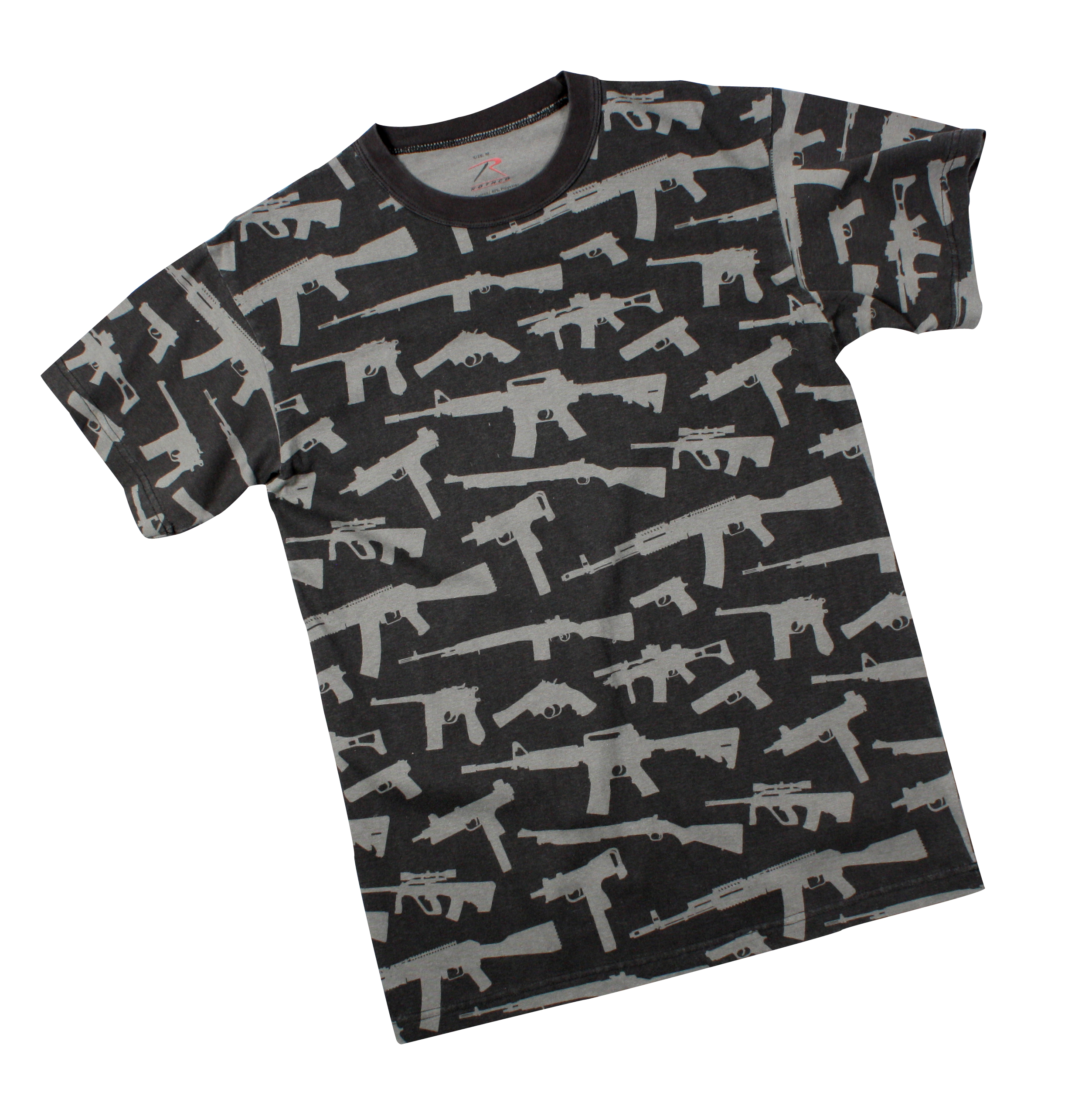 Rothco’s Vintage ‘Guns’ T-Shirt is a standout piece for those who appreciate unique, vintage-inspired apparel. Featuring an all-over graphic print of various guns on both the front and back, this t-shirt is designed to make a statement. The soft washed cotton blend fabric not only provides an authentic vintage look and feel but also ensures superior comfort. A tagless label further enhances the wearing experience by preventing irritation. Ideal for everyday wear, this graphic tee effortlessly combines style, comfort, and a touch of nostalgia.