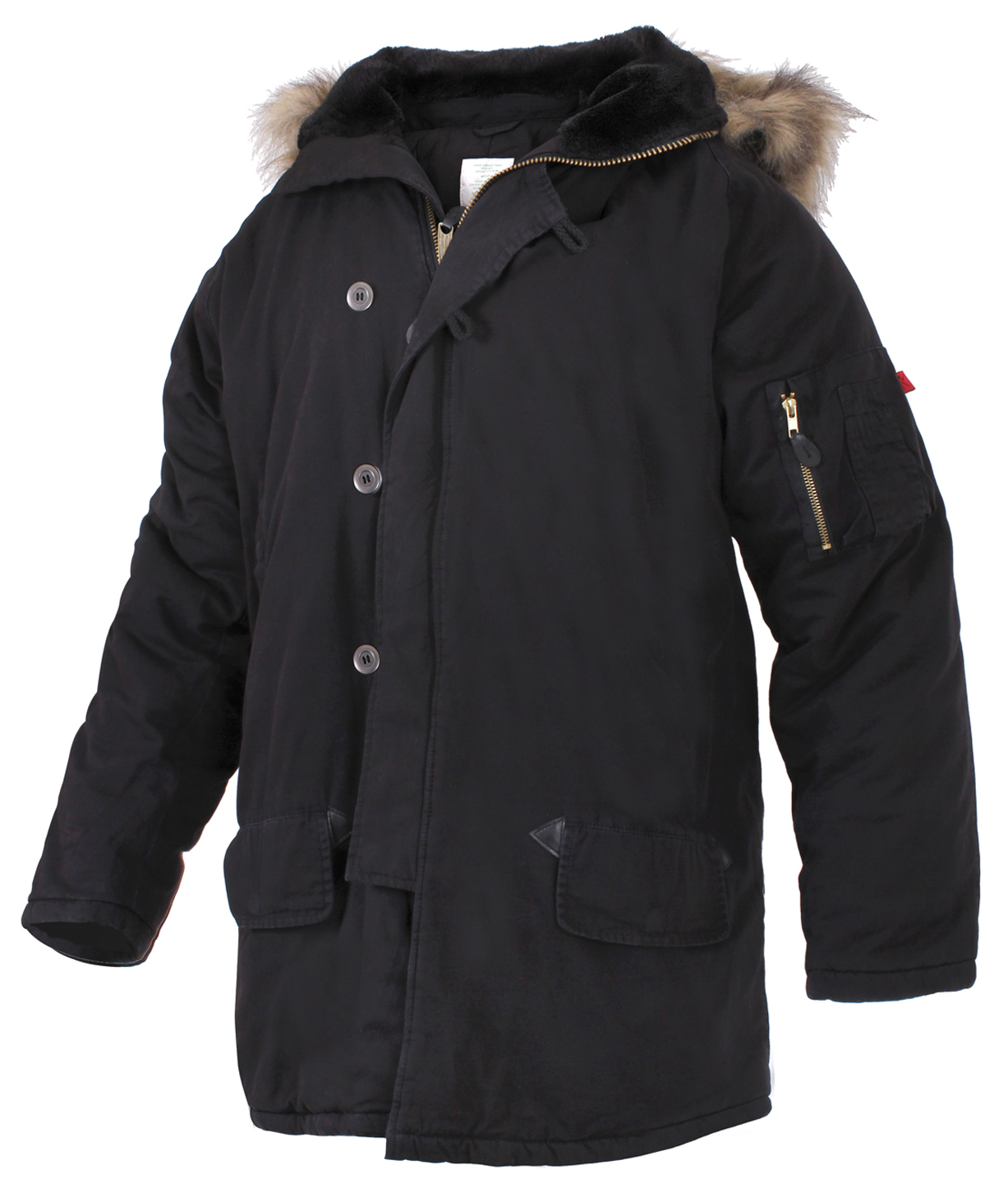 - Our cold weather parka jackets offer convenient storage options through two front snap-button slash pockets and two button-flap pockets for carrying everyday essentials. The outdoor coat also features a zippered utility sleeve pocket on the left arm with exterior pen holders and an interior snap-button pocket that are ideal for accessories and small items.