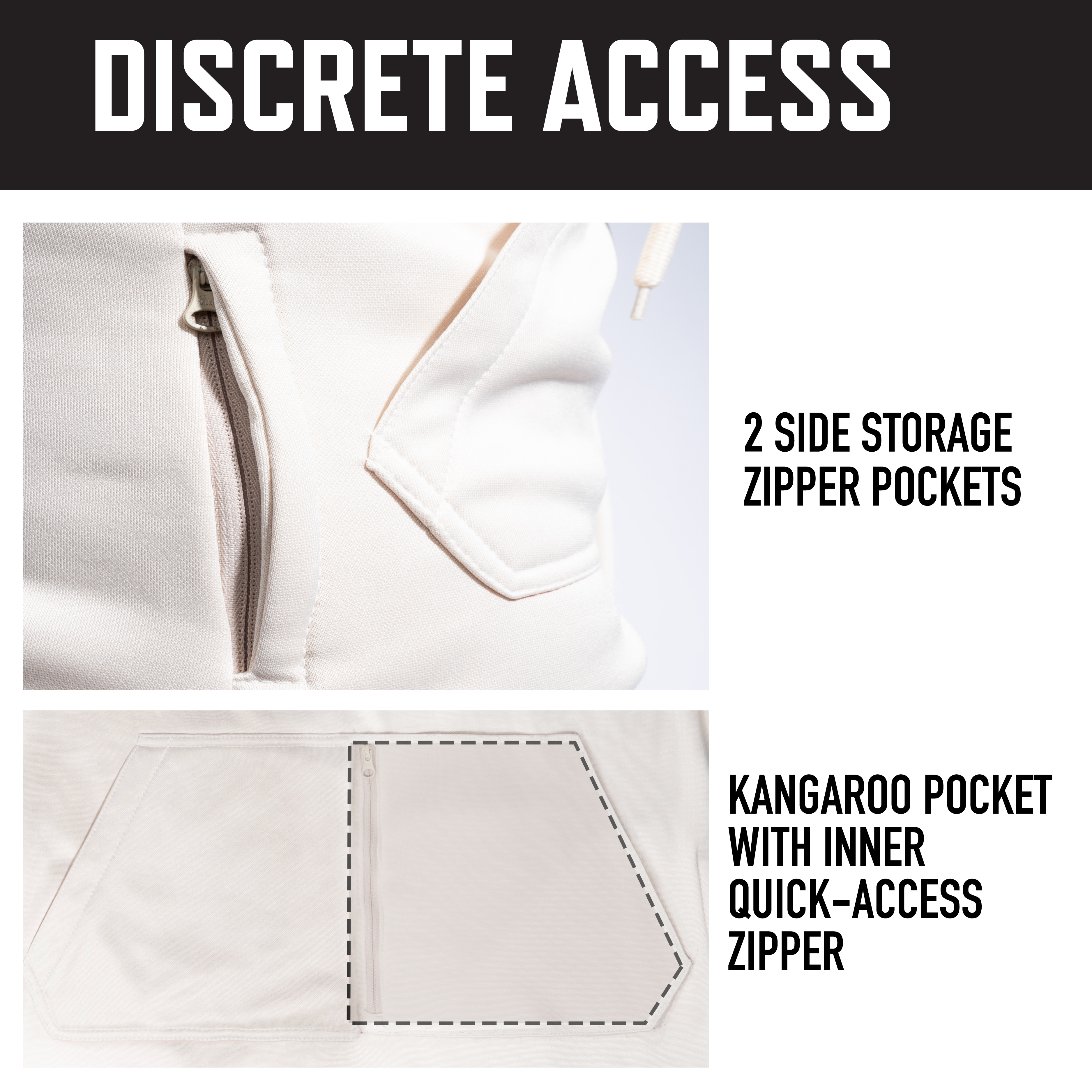Our Womens Concealed Carry Hoodie is the ultimate sweatshirt that incorporates the best of both worlds by offering best-in-class discrete carry with quick and easy access to your firearm while providing unbeatable, long-lasting warmth and comfort. The pullover fleece hoodie features a specially designed kangaroo pocket with an inner CCW zipper for waistband carry draw. Whether you’re out on the range, hiking, or running errands around town, this warm and soft CCW hoodie has everything you need to stay comfortable and prepared. Comfy Material: With a moisture wicking performance fabric and super soft fleece lining, these concealed carry pullover hooded sweatshirts offer all-day comfort, especially in the spring, fall, and winter seasons. Additional Warmth: These casual CCW sweatshirts feature a double-layer drawstring hood that keeps your head and neck warm while protecting you against the wind and rain. The 2 side zipper pockets help keep your hands warm. These performance hoodies feature cuffs with thumbholes that preserve heat and maintain range of motion, and prevent sleeve ride-up. Complete the Look: These comfy CCW hoodies are a perfect fit for anyone and work great with our Womens Vintage Paratrooper Fatigue Pants and Womens Leggings. Don’t Leave Home Without It: The Concealed Carry Hoodie is great for camping, hiking, running, jogging, traveling, lounging around, sports, gym, everyday wear, and more.